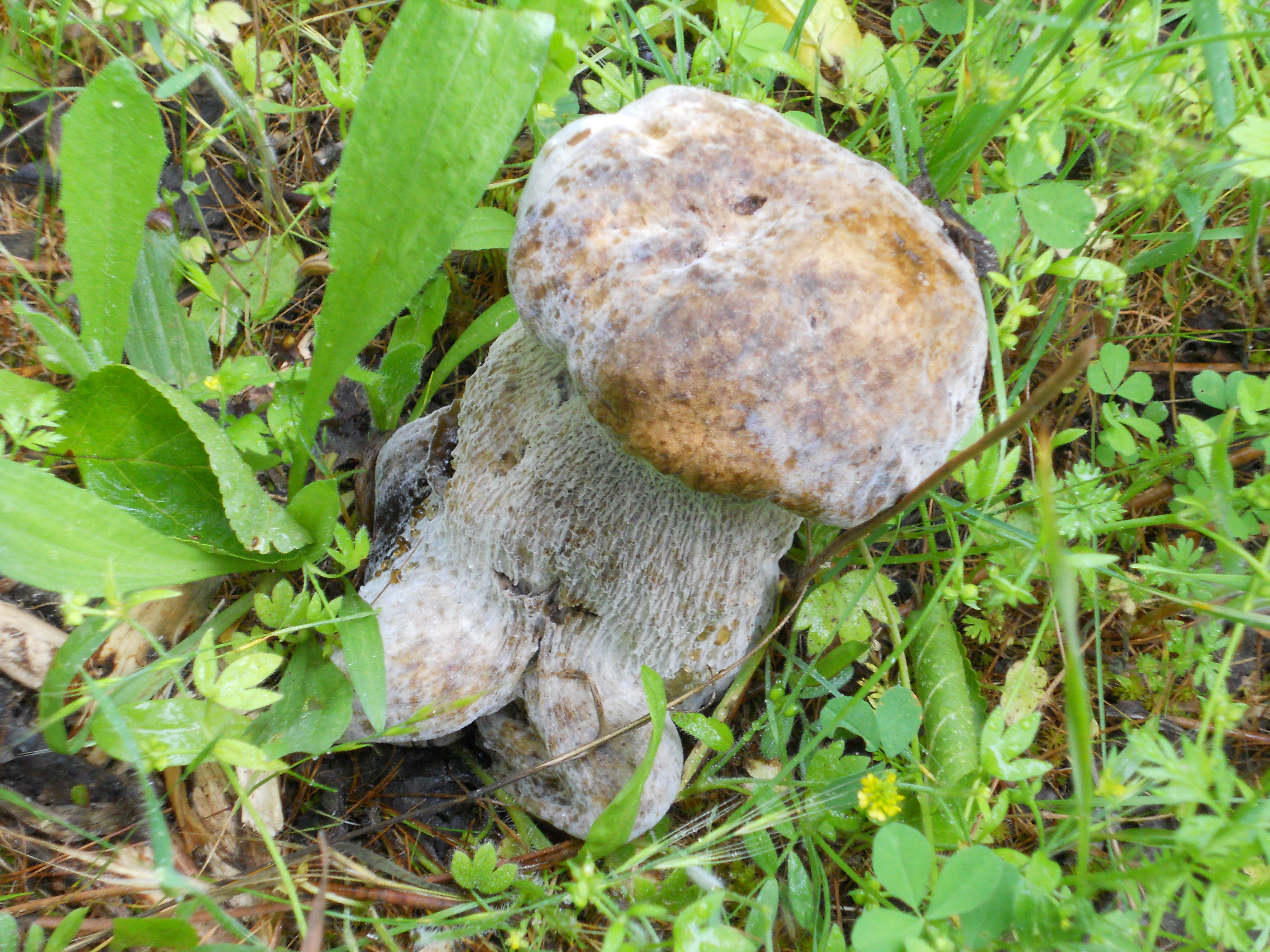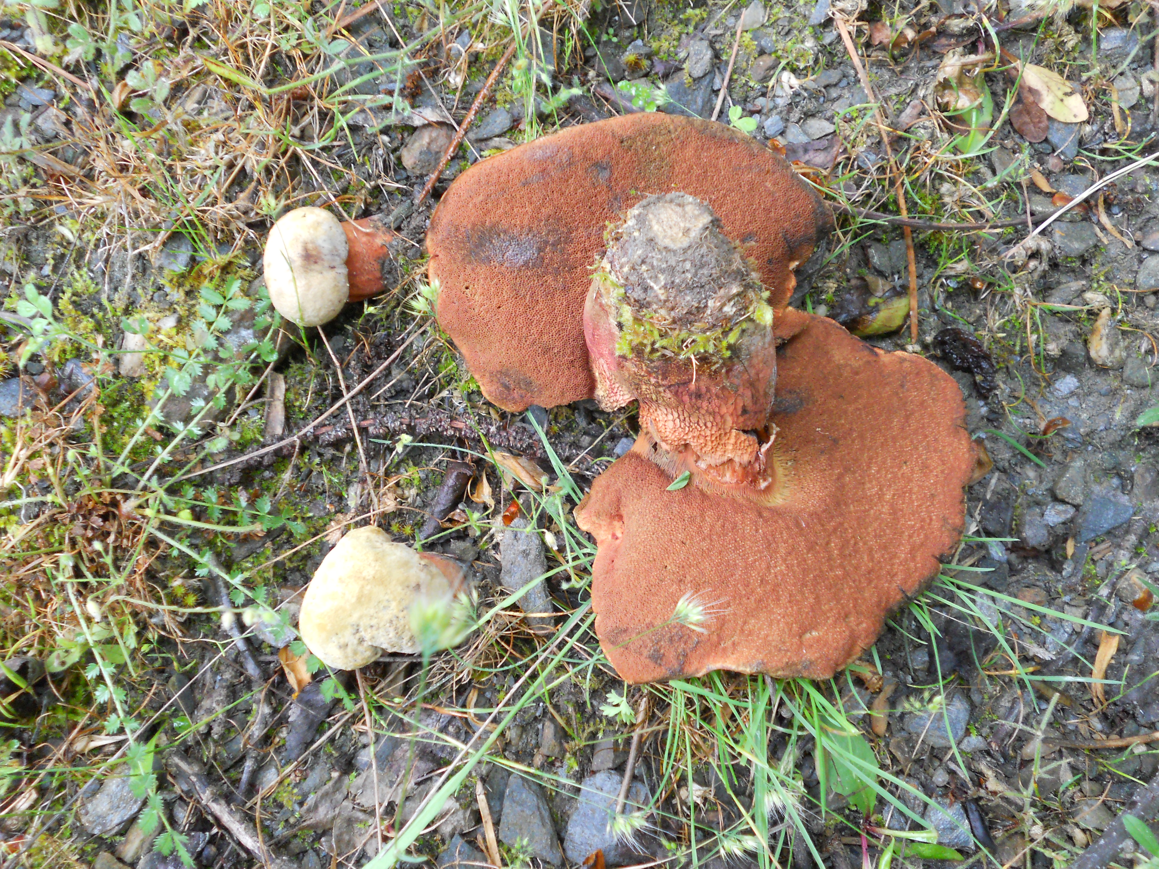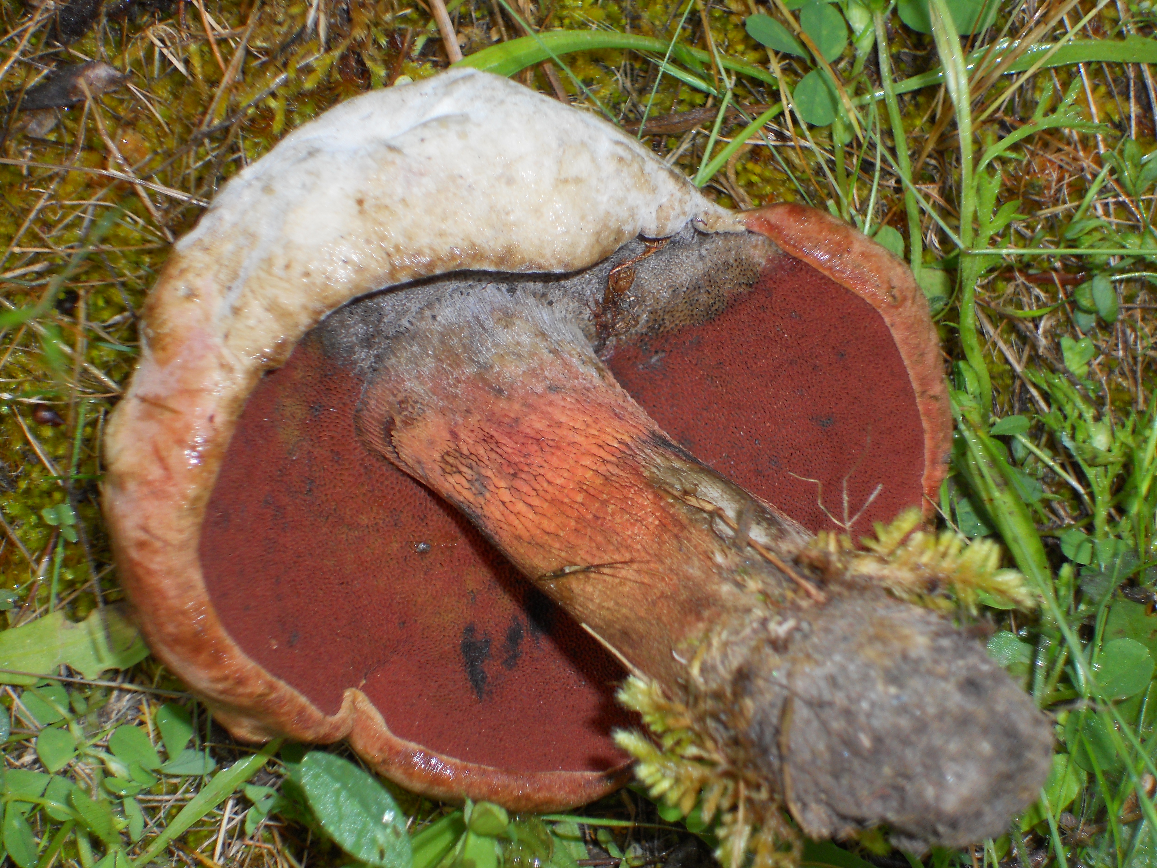 Se terminaron los Agaricus y en su lugar aparecen Boletus. Este me coincide con el B. satanas, habia 10 ejemplares en un radio de 2 metros, en distinto estado de evolucion, pero unos muy jovenes, que no toque por supuesto, para que no me regañe Ricardo y los otros casi pasados, incluso uno fosil. estaban alrededor de un nogal y un almendro, entre la hierba corta.
