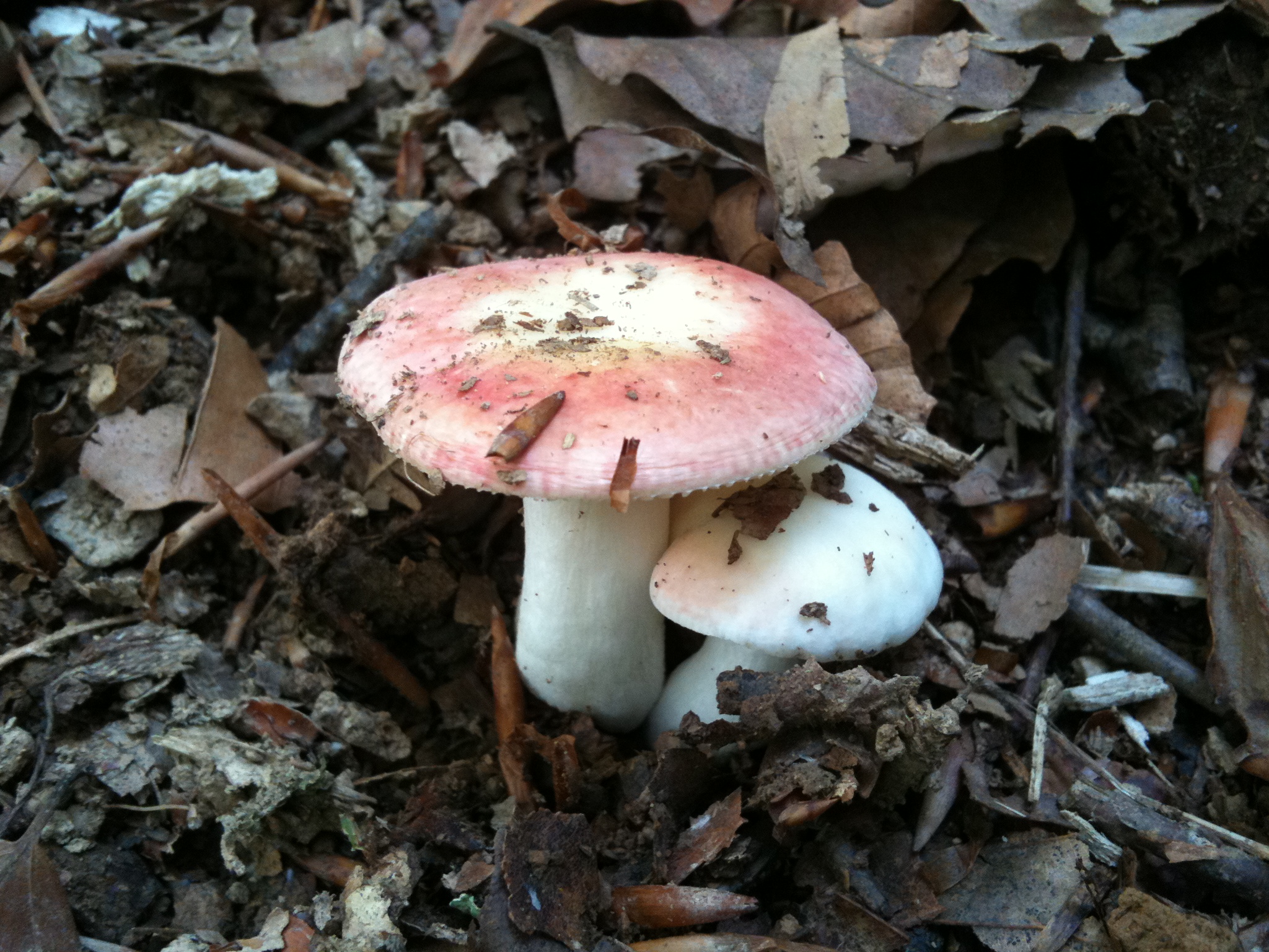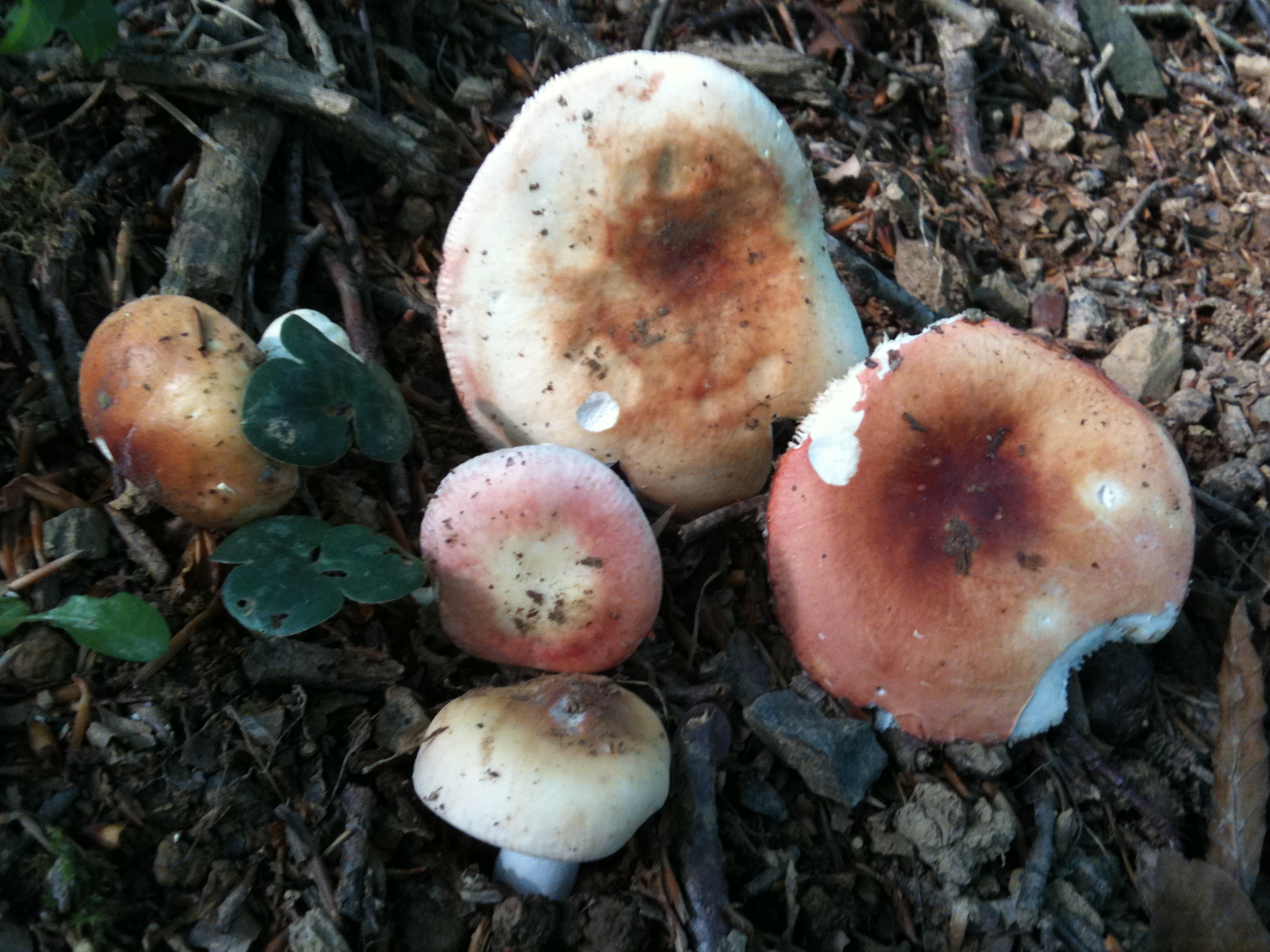 Por orden de aparición y a juicio del presente, Russula vesca, Russula nobilis, Russula faginea o Russula integra, y la Amanita probablemente sea