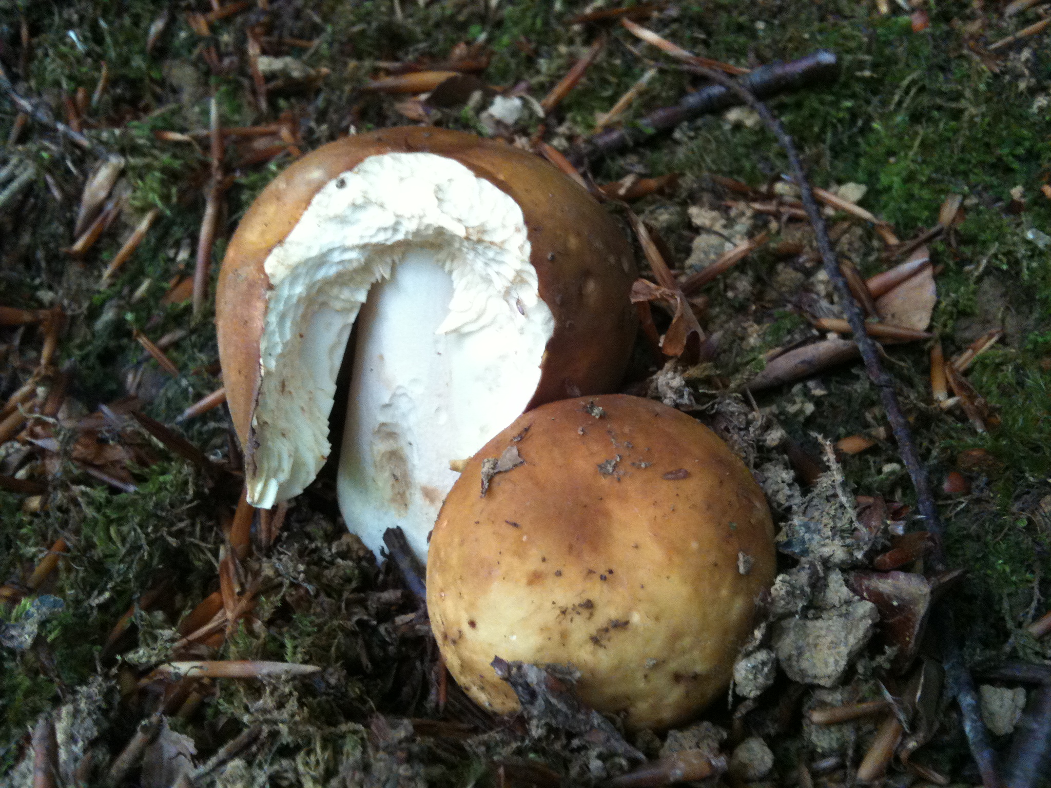 estas dos rusulas eran dulces, no tenian tonos rosas, eran ocre-amarillenta, con las laminas muy apretadas. tenian mucho cuerpo, si hubieran tenido tono amoratados serian estupendas urretxa