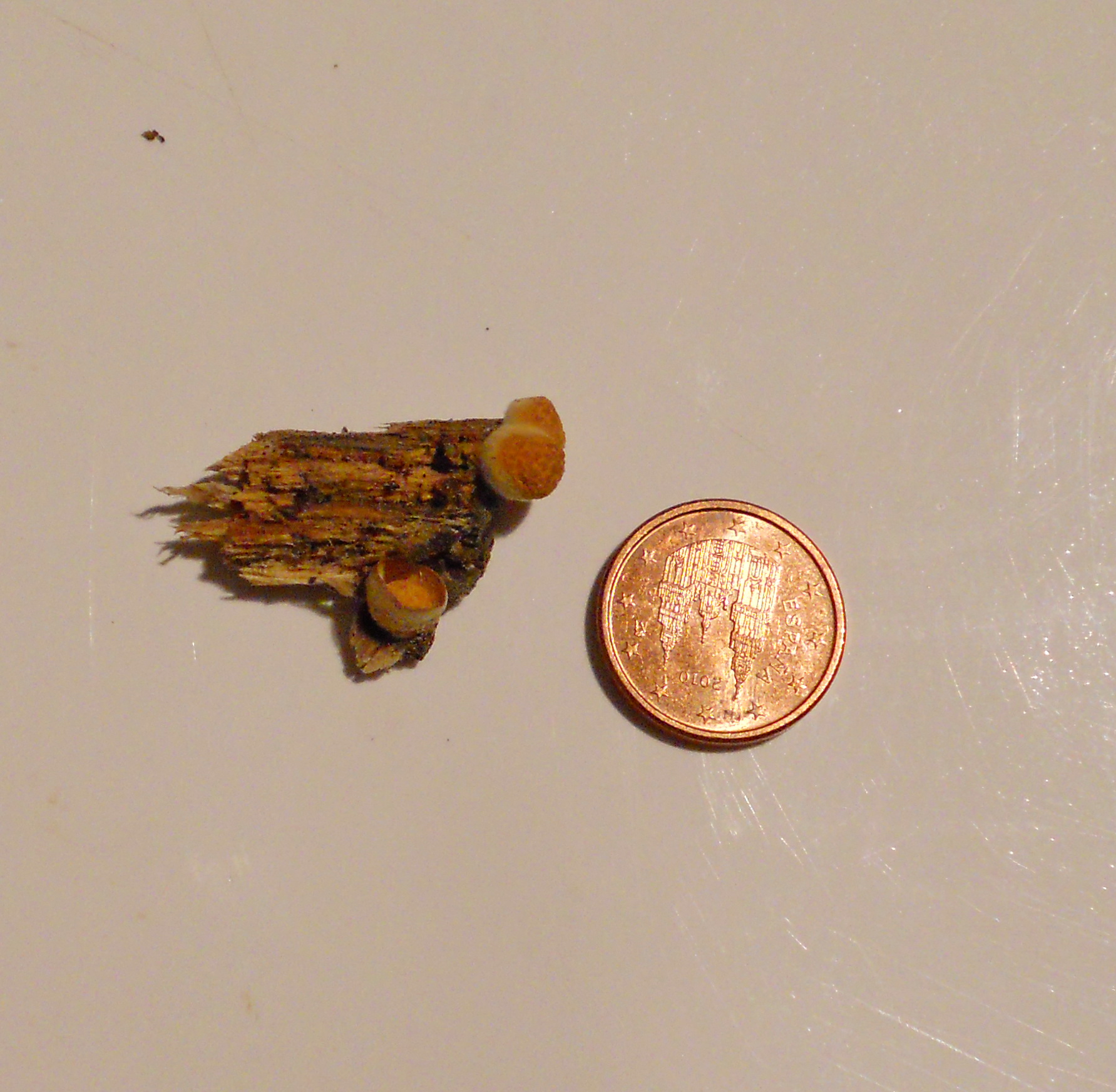 Pues yo tambien estoy de cuerdo, es un Crucibulum laeve, pero la moneda querido amigo Juande es de 1 Cnt.