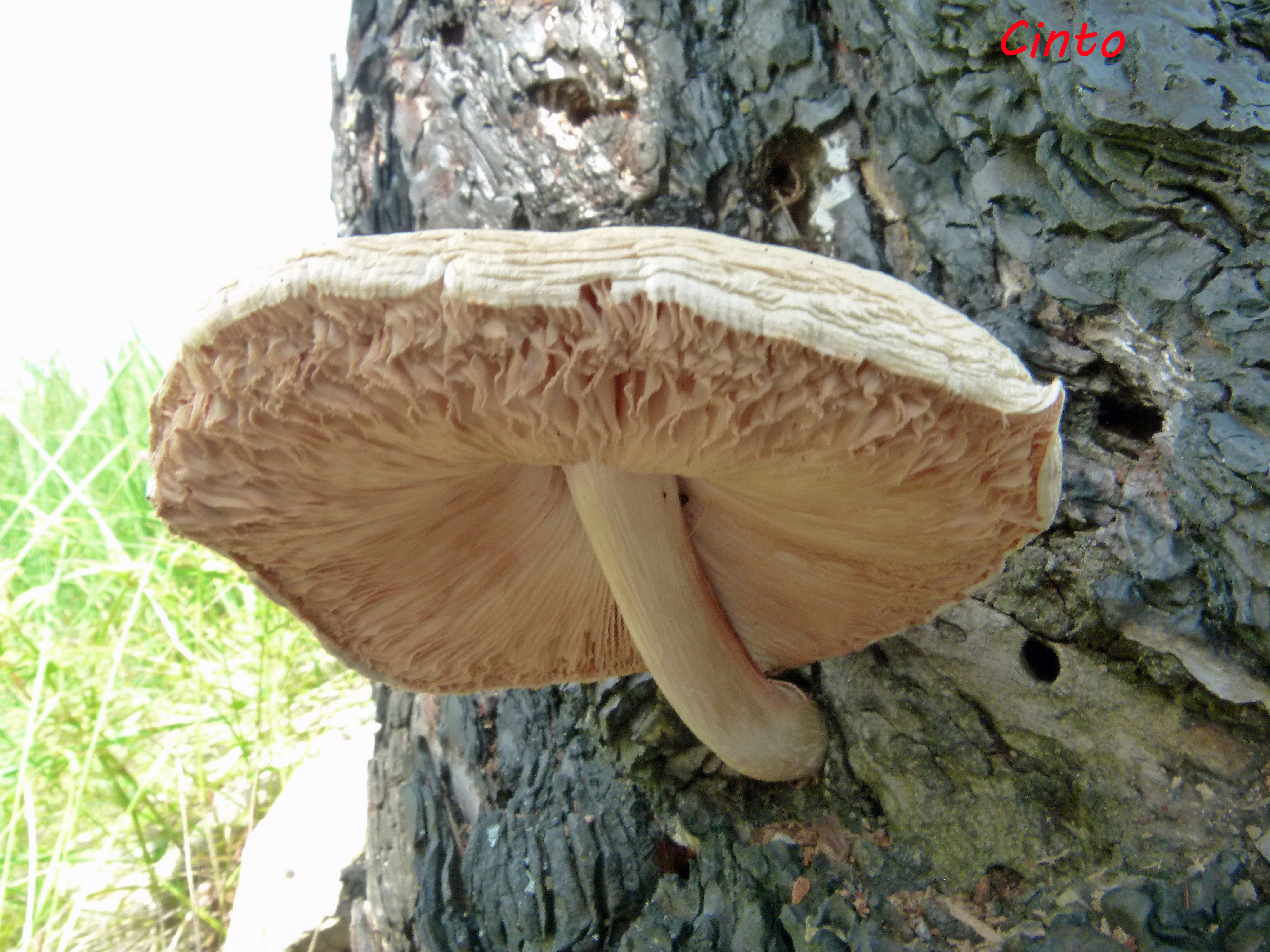 Encontrado en un bosque de pinos, donde hace unos años hubo un incendio y todavía estan los pinos quemados desde la copa hasta el suelo, en la base del tronco de un pino quemado salia este Pluteus, como podéis observar empezaba a estar un poco chungo, pero creo que todavía conserva rasgos para su identificación. Haber cual os parece. Saludos.