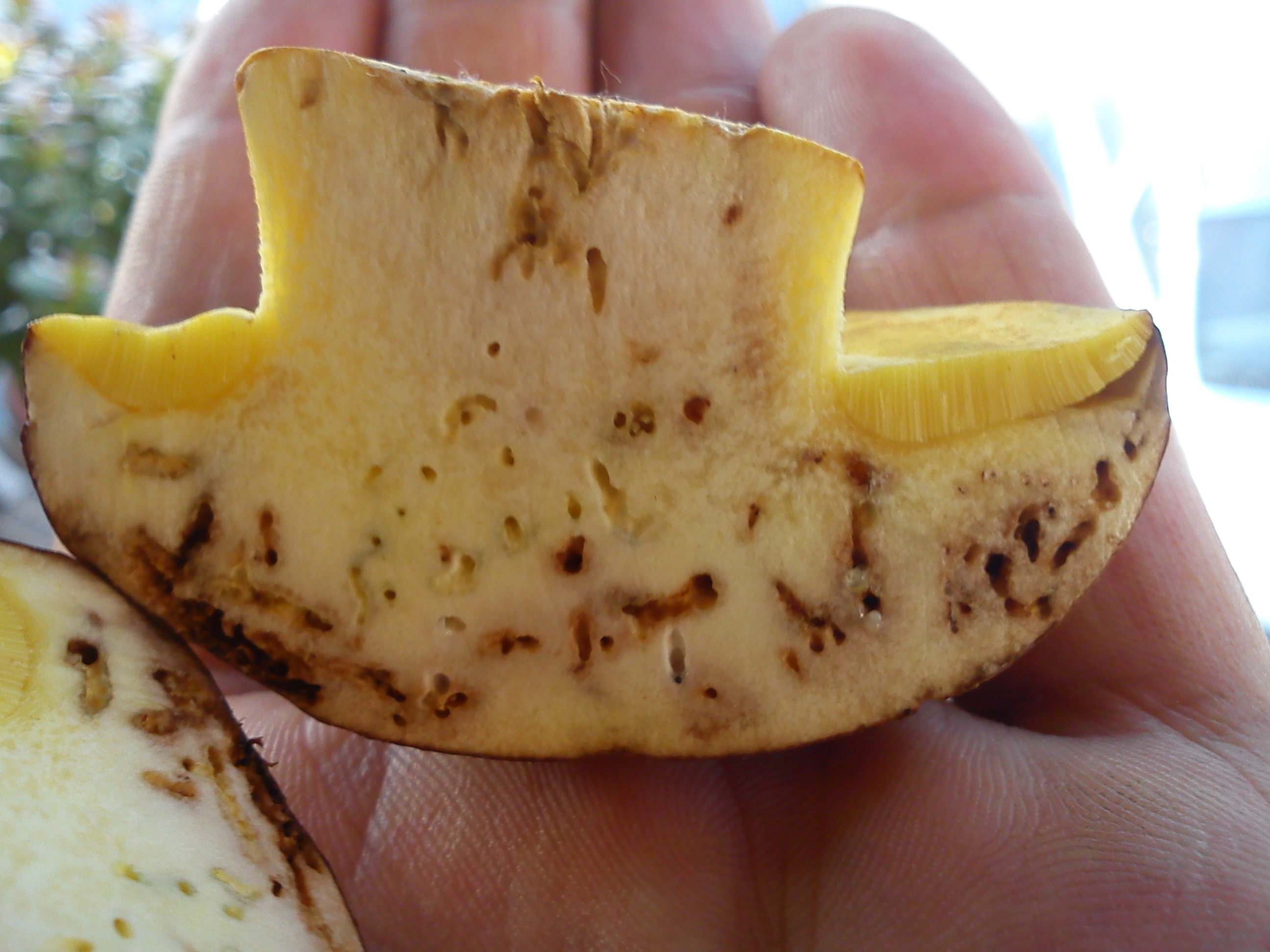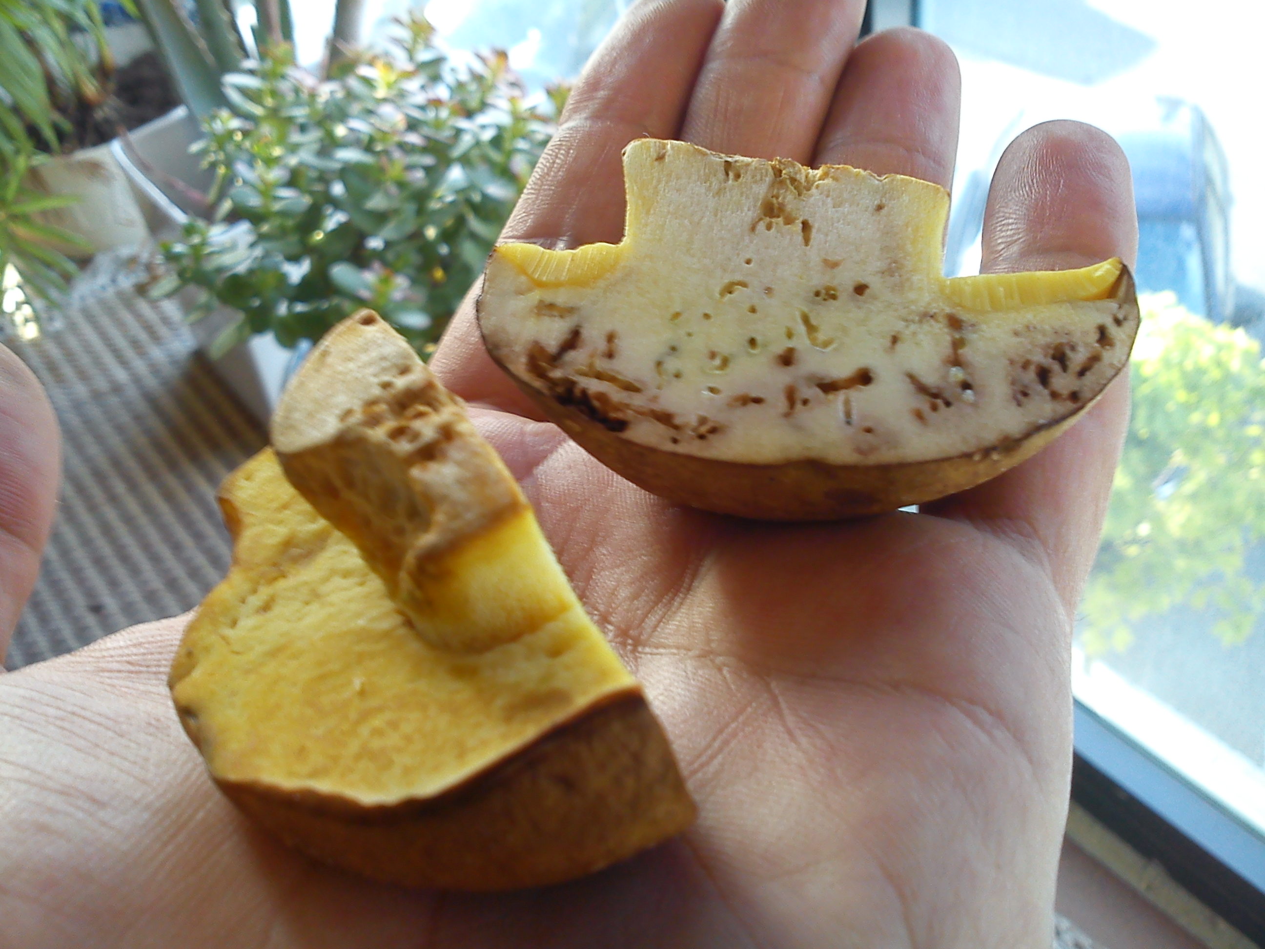 . Con respecto al Boletus en cuestión, hubiese sido preferible verlo entero, para observar todas sus características, y el corte que sea longitudinal. Por experiencia se que hay appendiculatus que apenas azulean, debido a las condiciones ambientales, pero para saber si lo es solo tienes que observar una cosa, la dureza del pie, no hay ningún Boletus parecido con ese pie tan duro con textura acorchada,si el pie era blando habría que oler su base rascando con la uña, podría ser un impolitus, tu dirás, un saludo y bienvenido de nuevo.