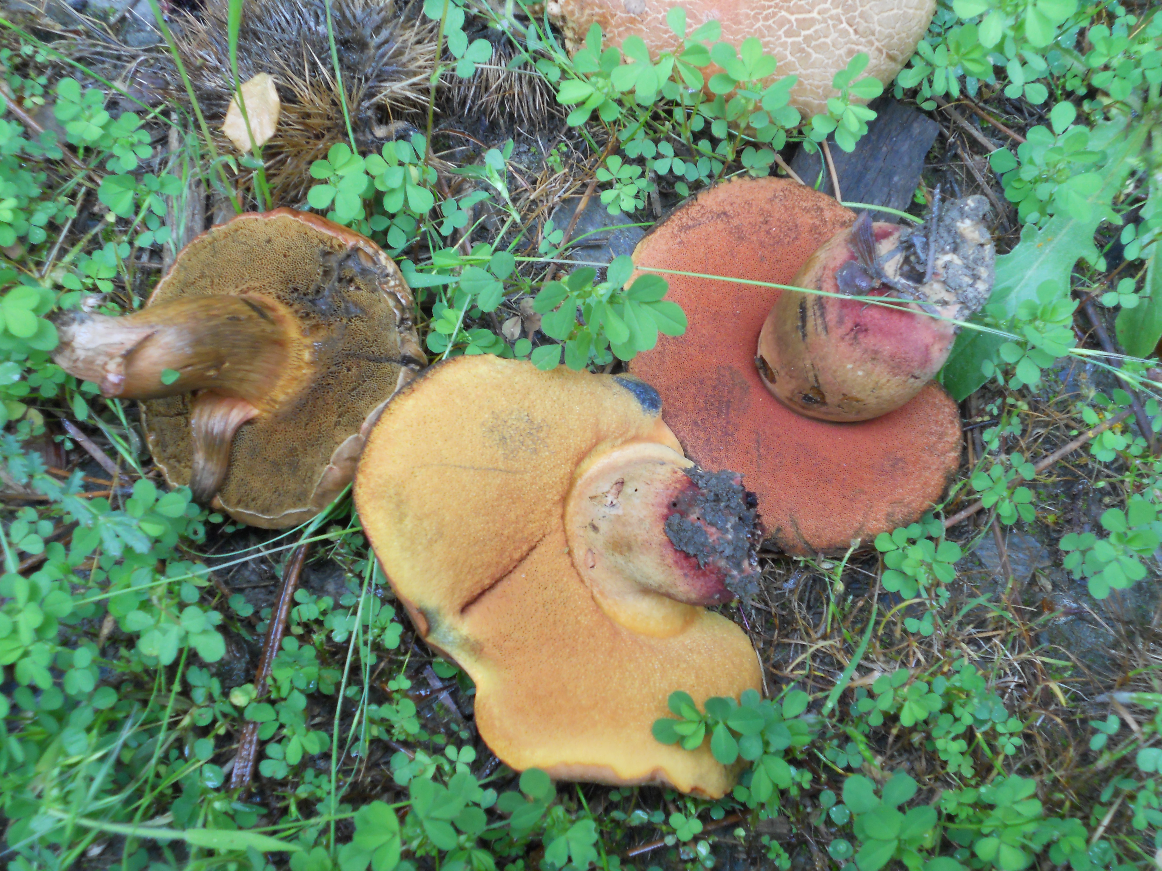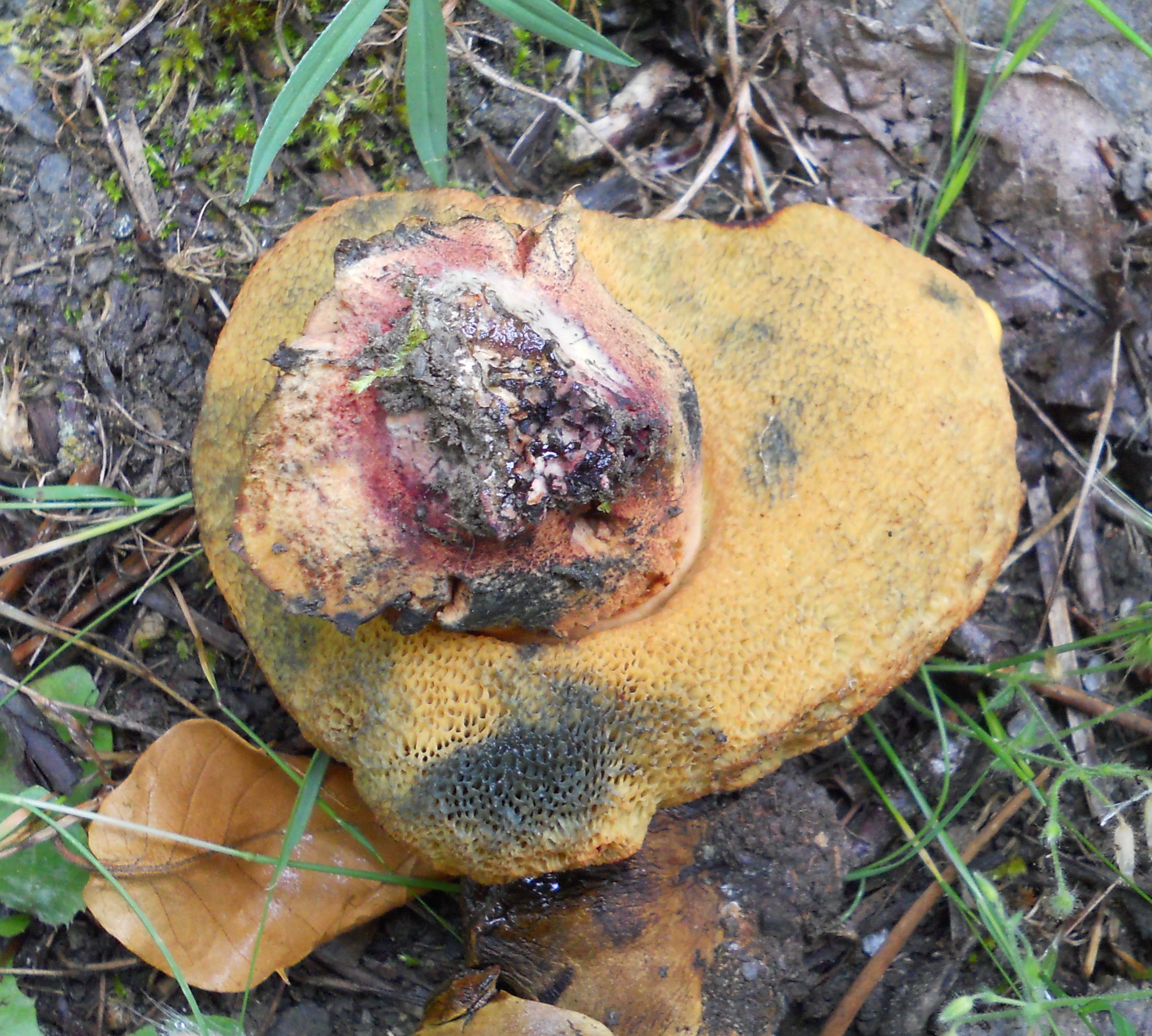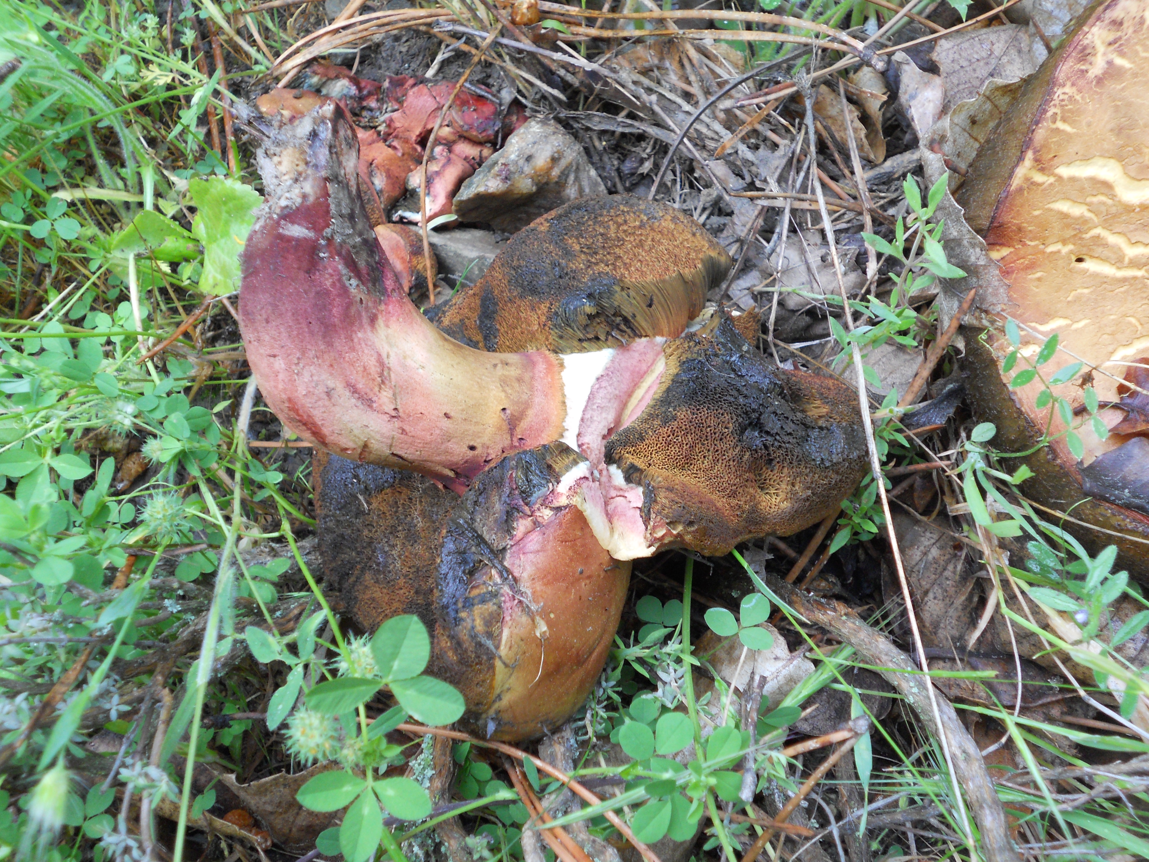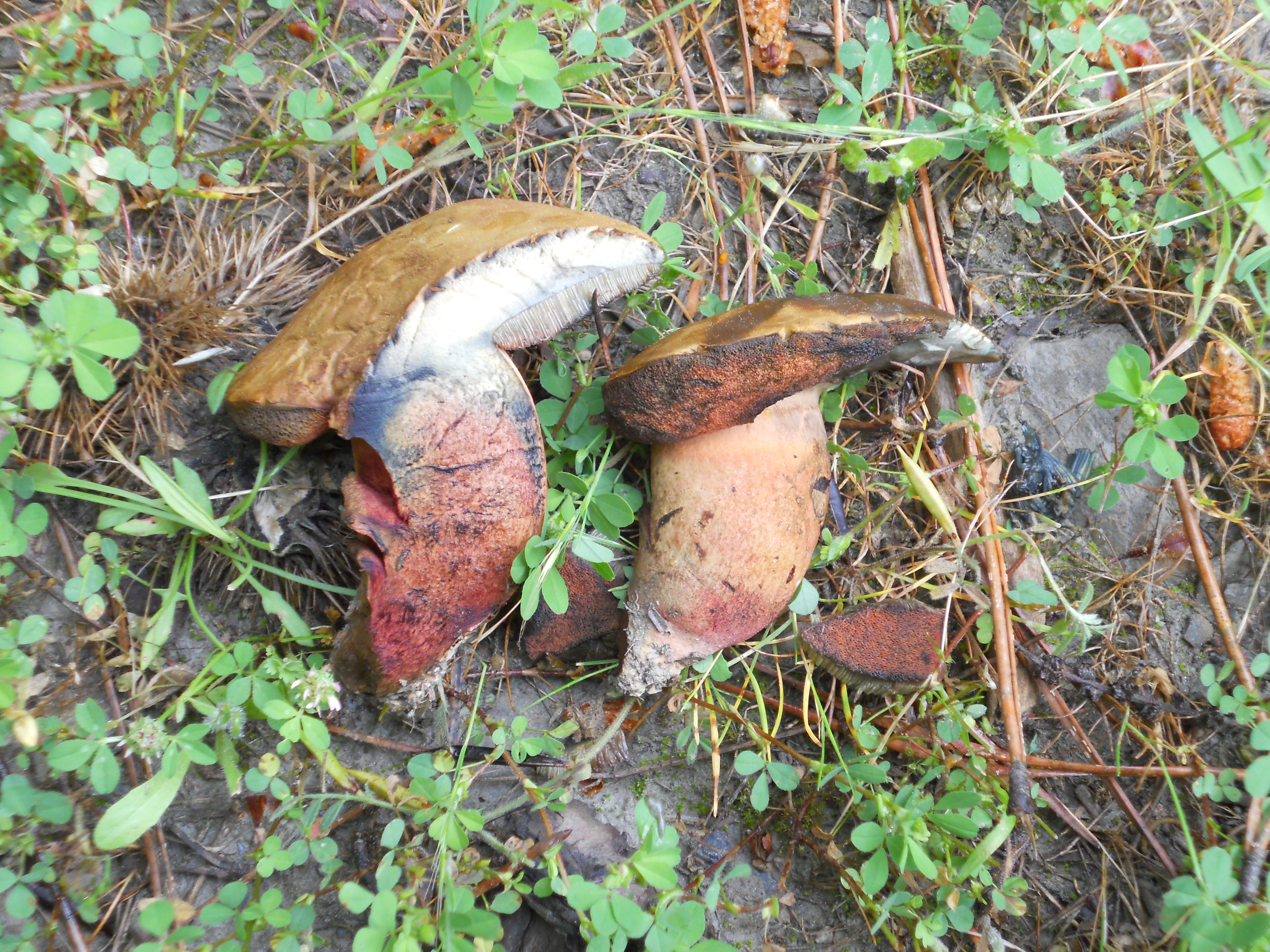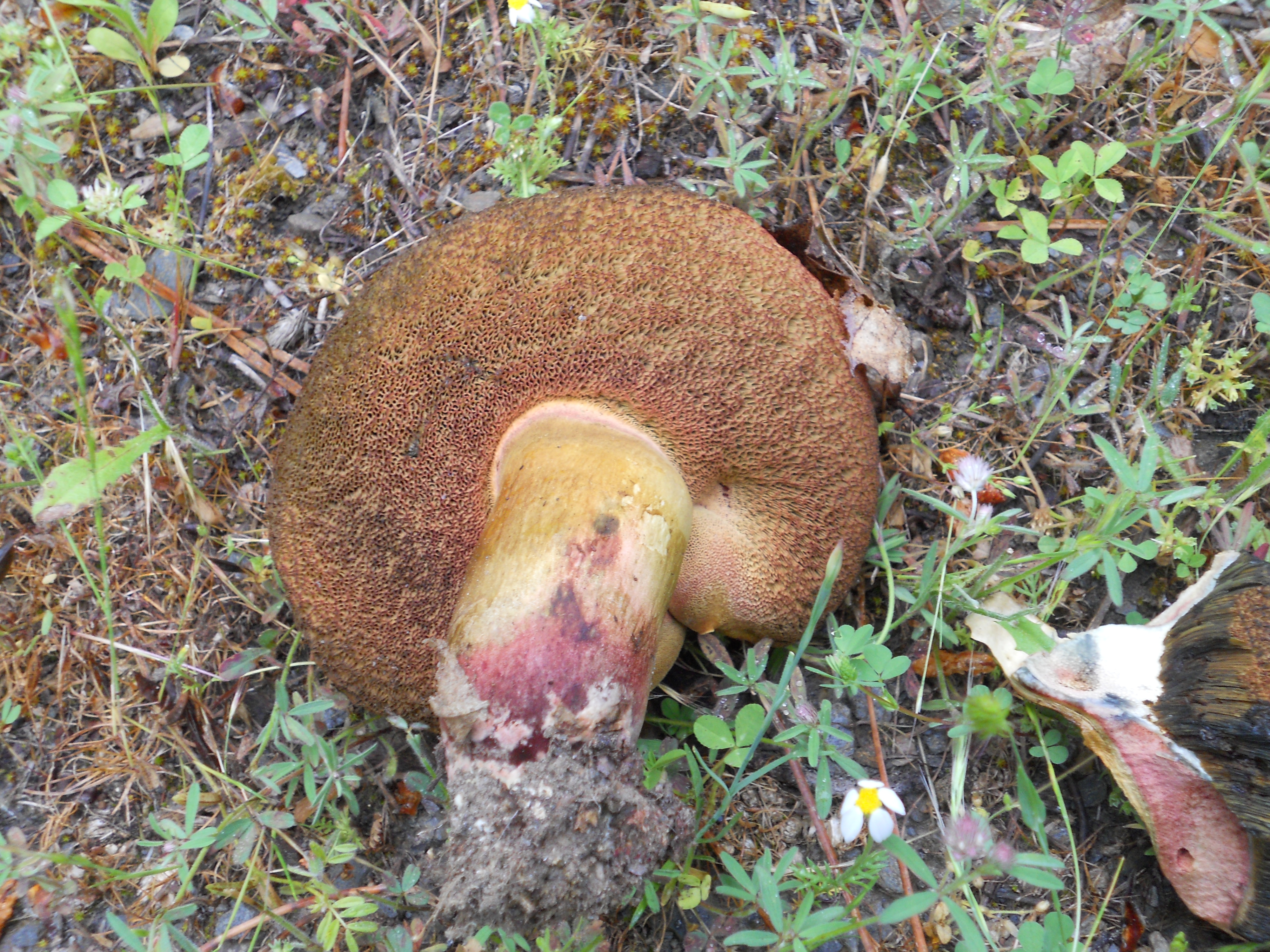 Sea lo que sea es seguro que es un ejemplar atípico, mira a ver que te parece Boletus pulchrotinctus