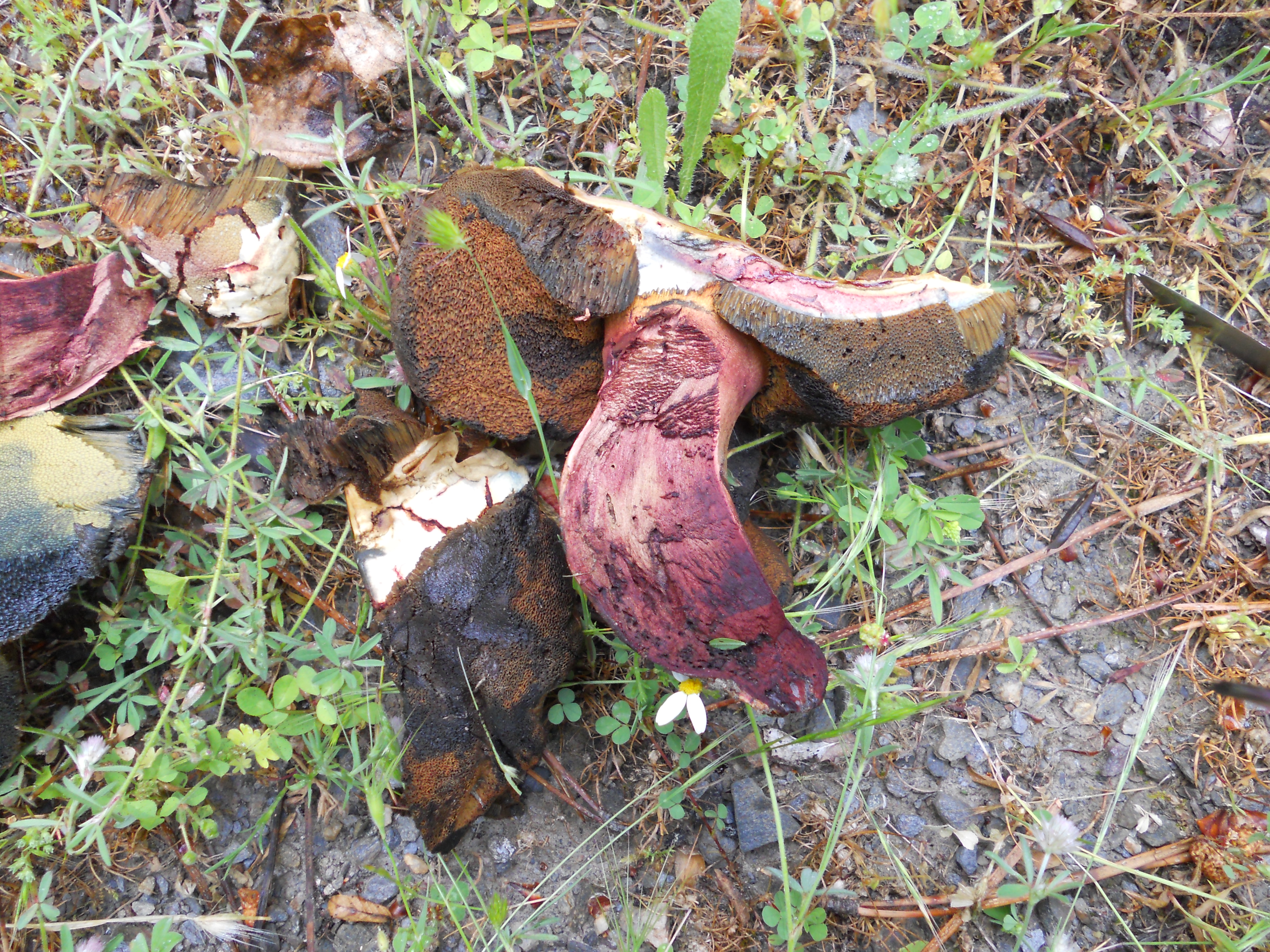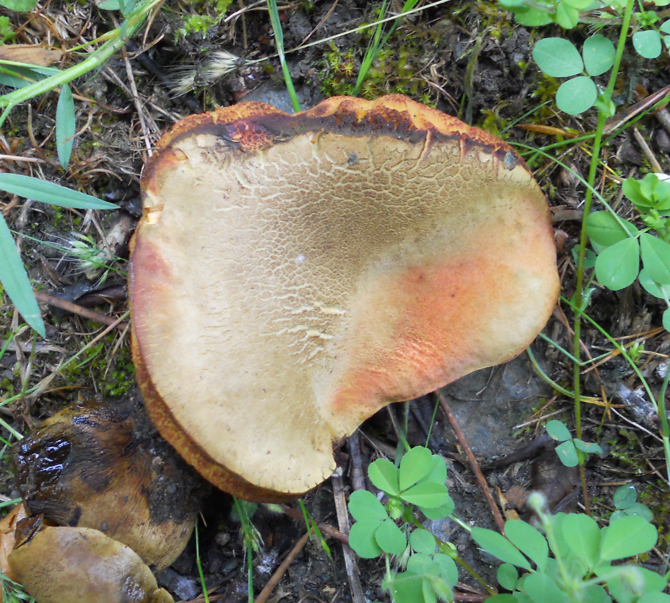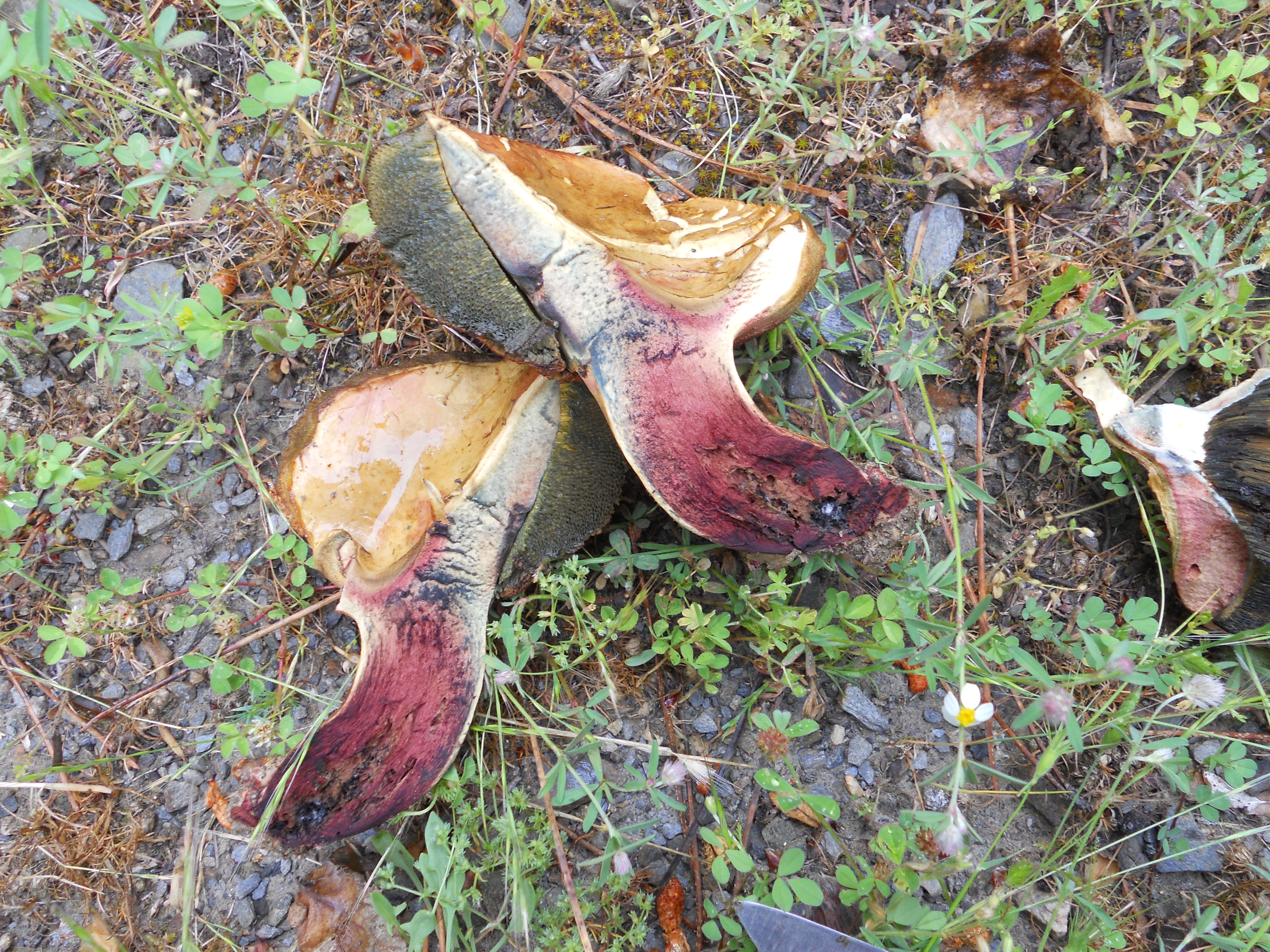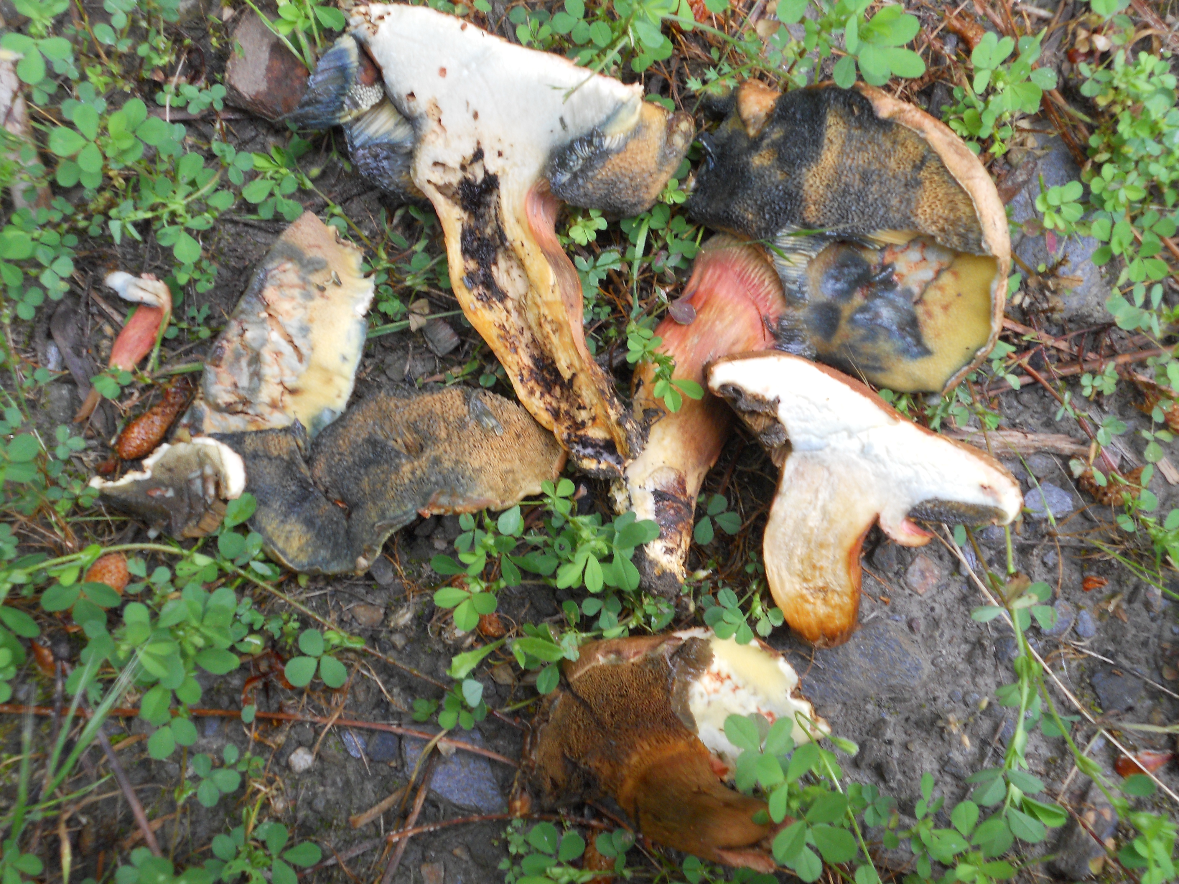 Sea lo que sea es seguro que es un ejemplar atípico, mira a ver que te parece Boletus pulchrotinctus
