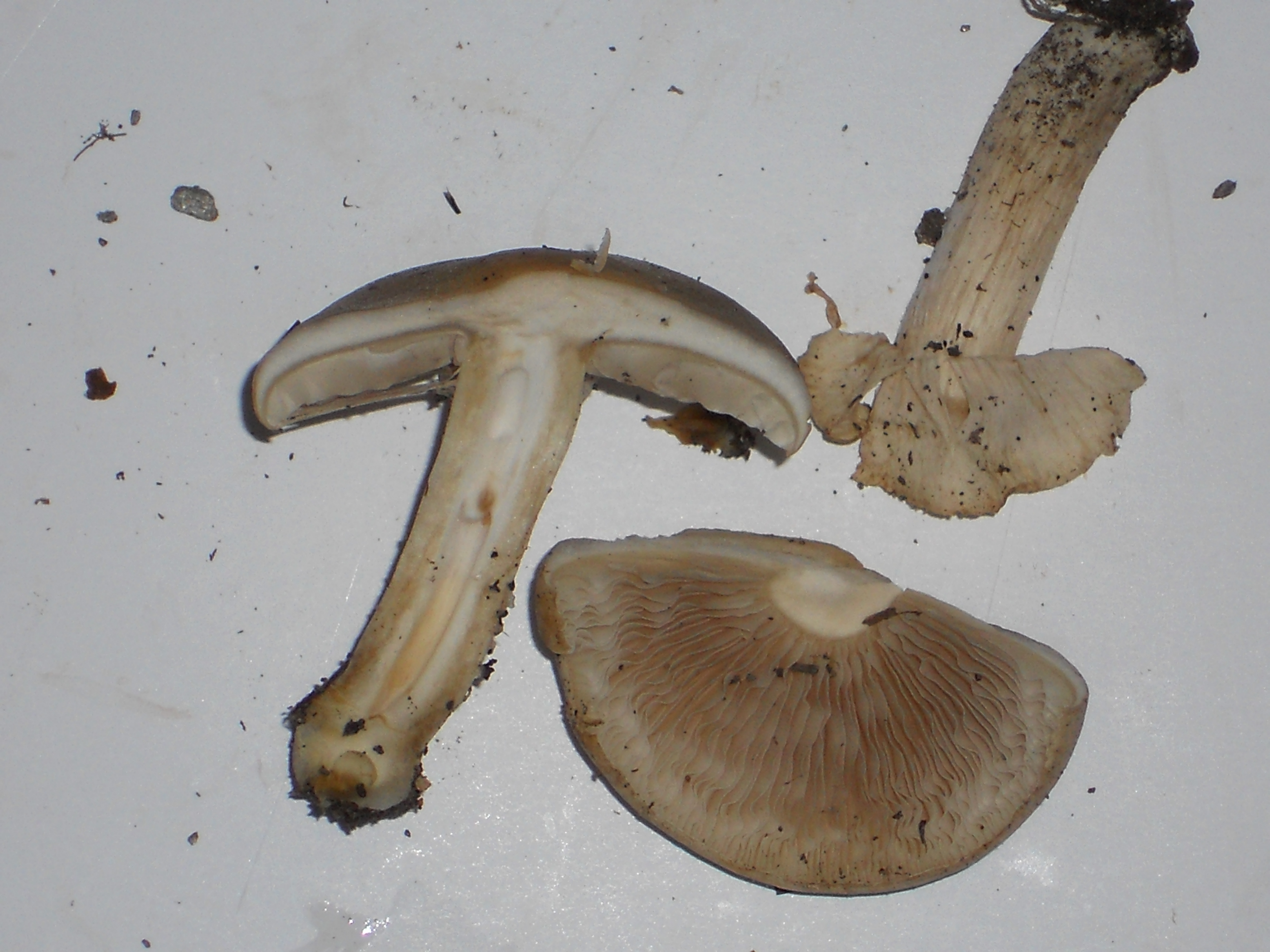 Hola chicos, en un principio yo diría que se trata de un Agrocybe, el bulbo ese tan marcado es típico del Agrocybe sphaleromorpha, pero suele ser algo más oscuro el sombrero por el centro, es una posibilidad en rango de especie, pero lo único que tengo claro de alguna manera es el género., un saludo.