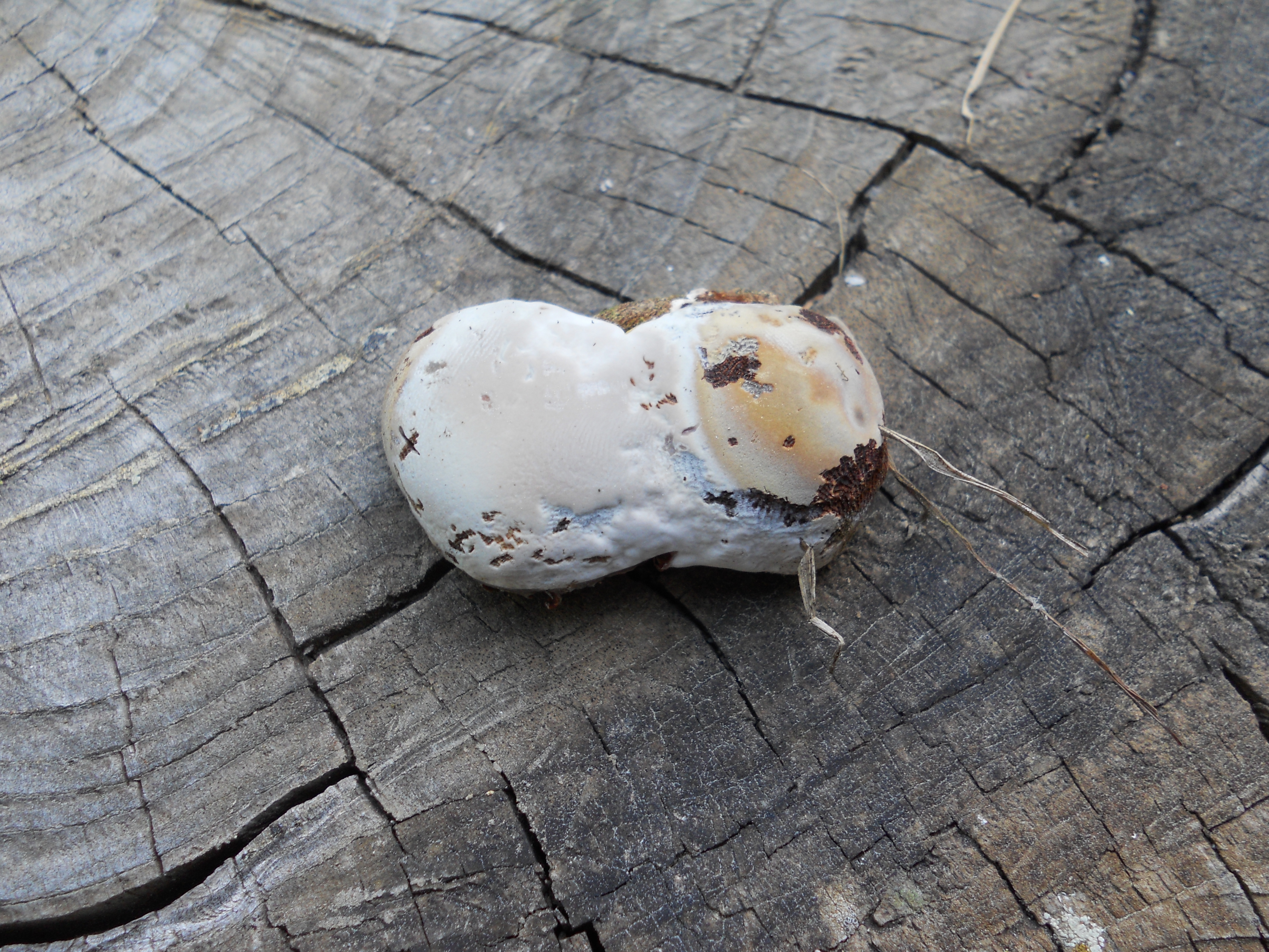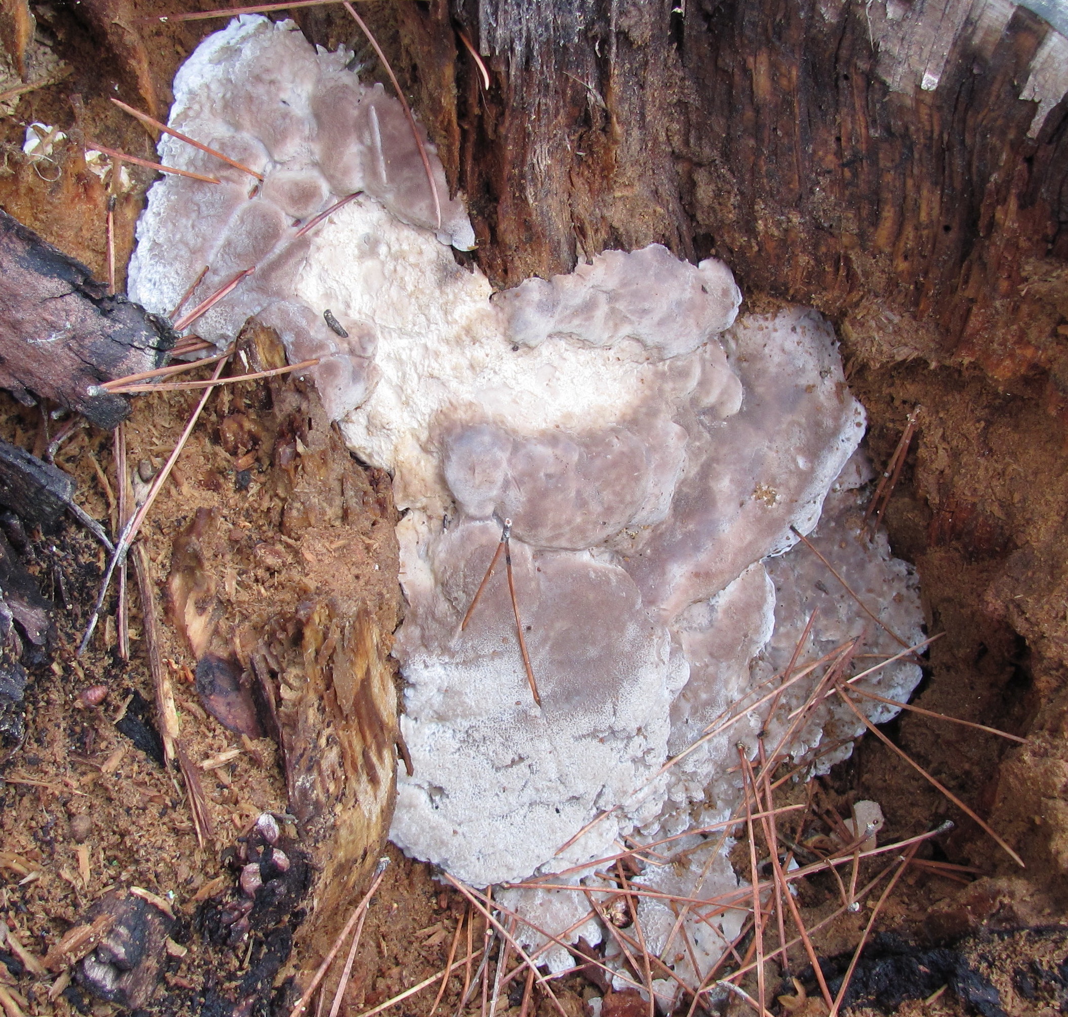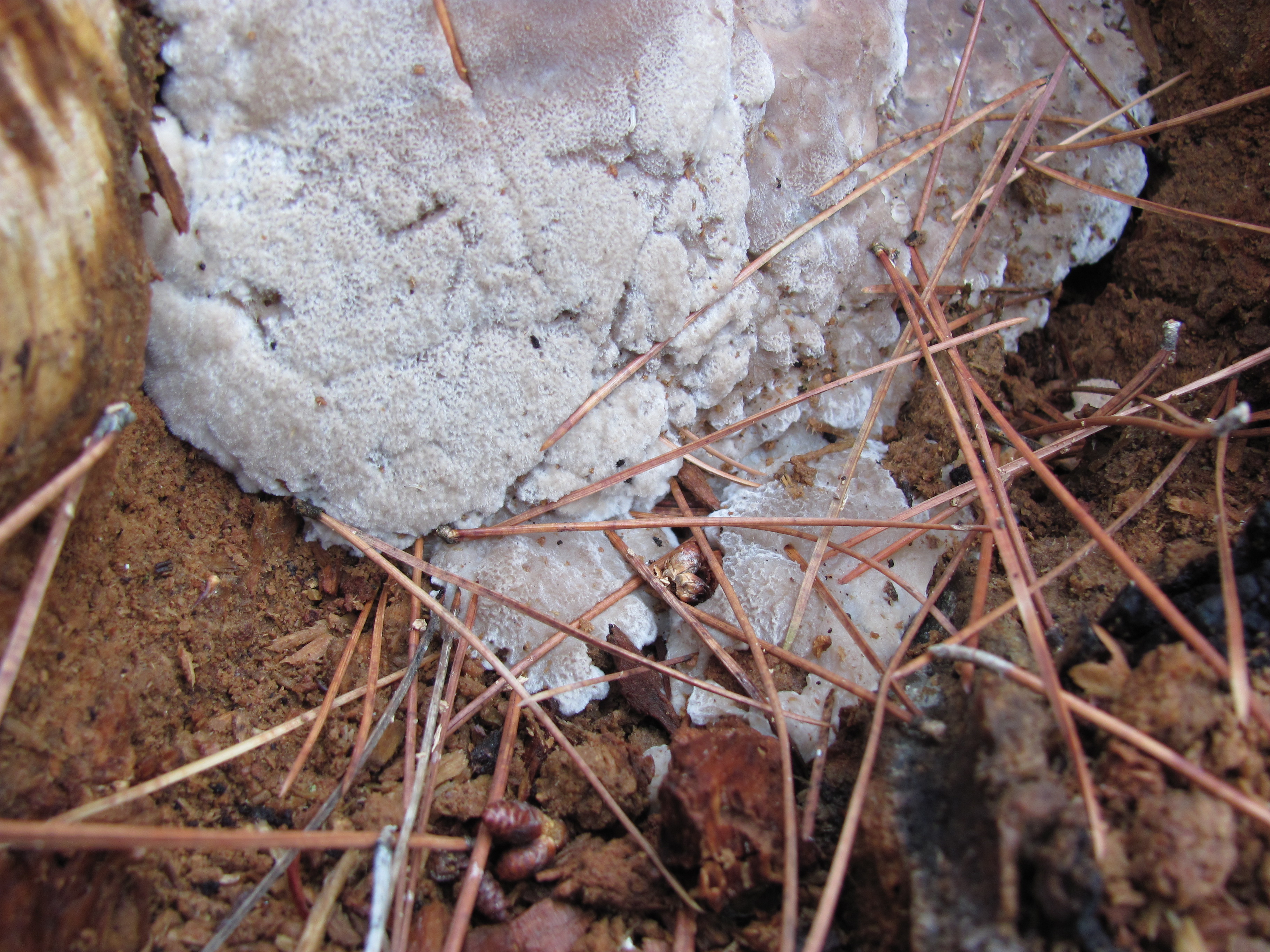 he estado rebuscando por mis fotos y he encontrado una parecida a la mia, que me dijeron que pudiera ser una Perenniporia ochroleuca, que aunque se le parece, este ultimo ejemplar es ma viejo y estaba en un chopo podrido y no en un pino como el primero. te lo pongo a ver que opinas.