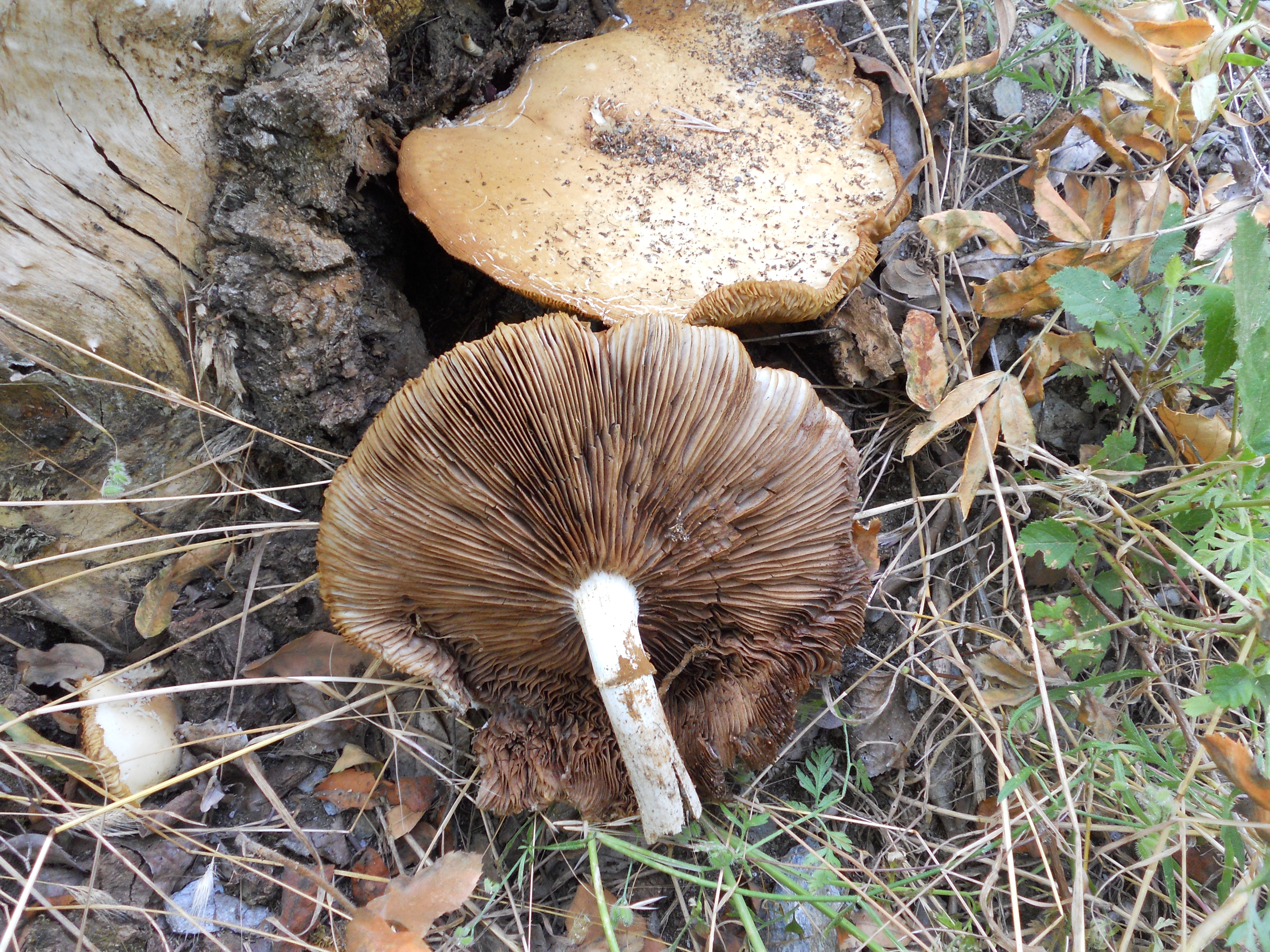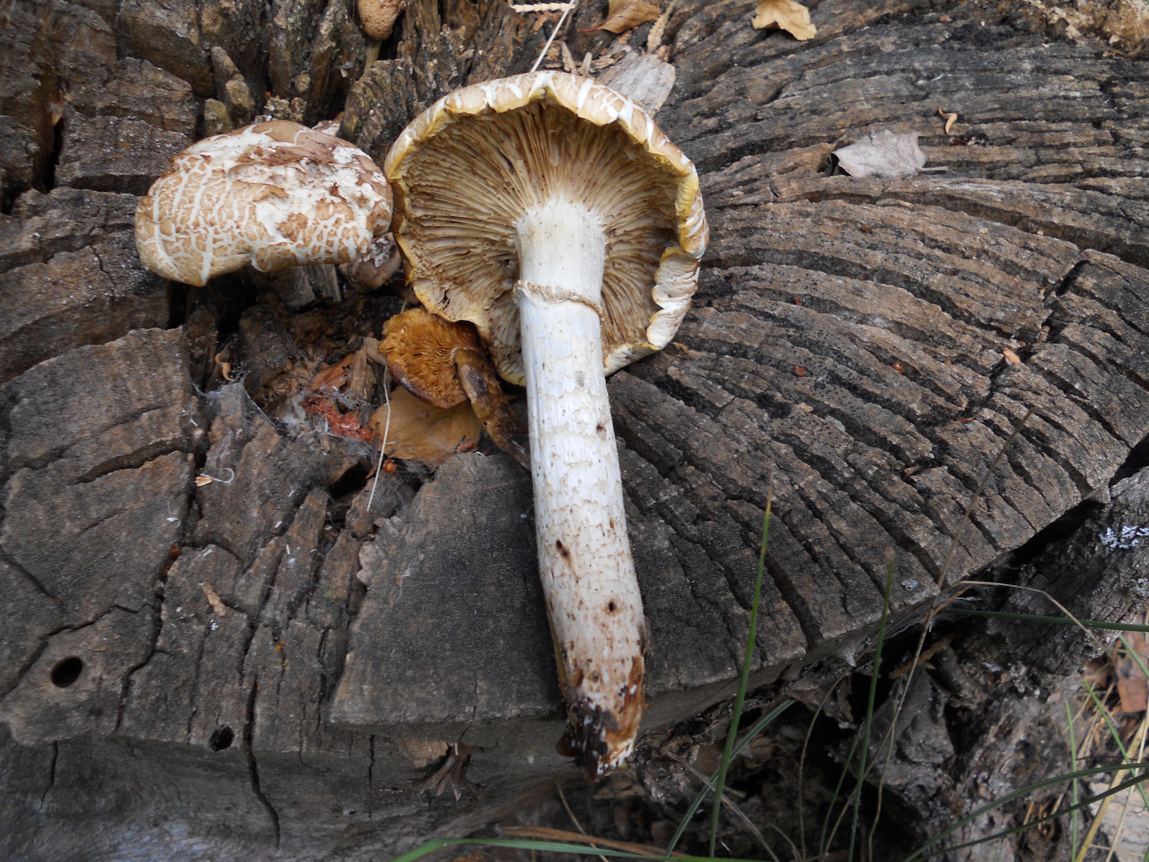 Para mi son de chopo por como se cuartea y ademas en la octava fotografia se puede ver sobre el anillo de la seta la esporada de color marron tabaco, en el genero Armillaria la esporada es blanca.