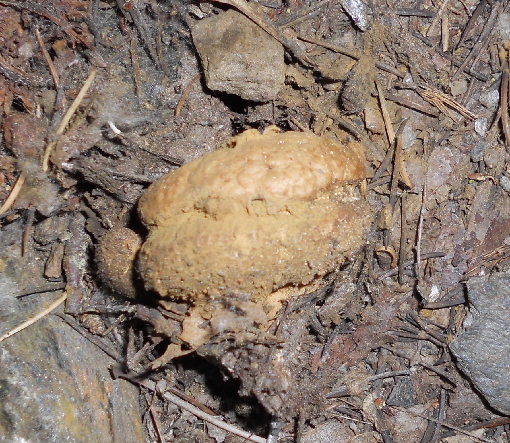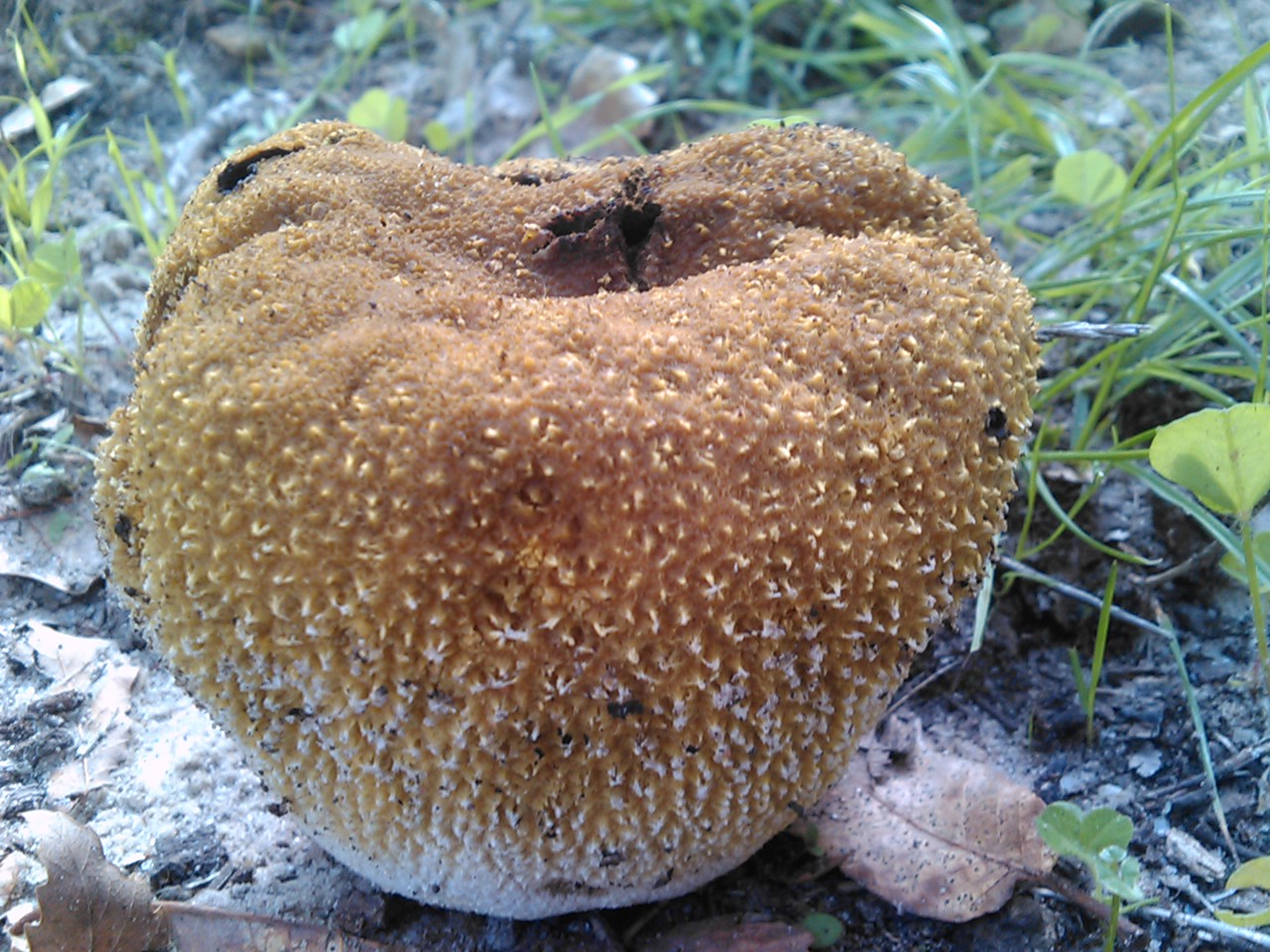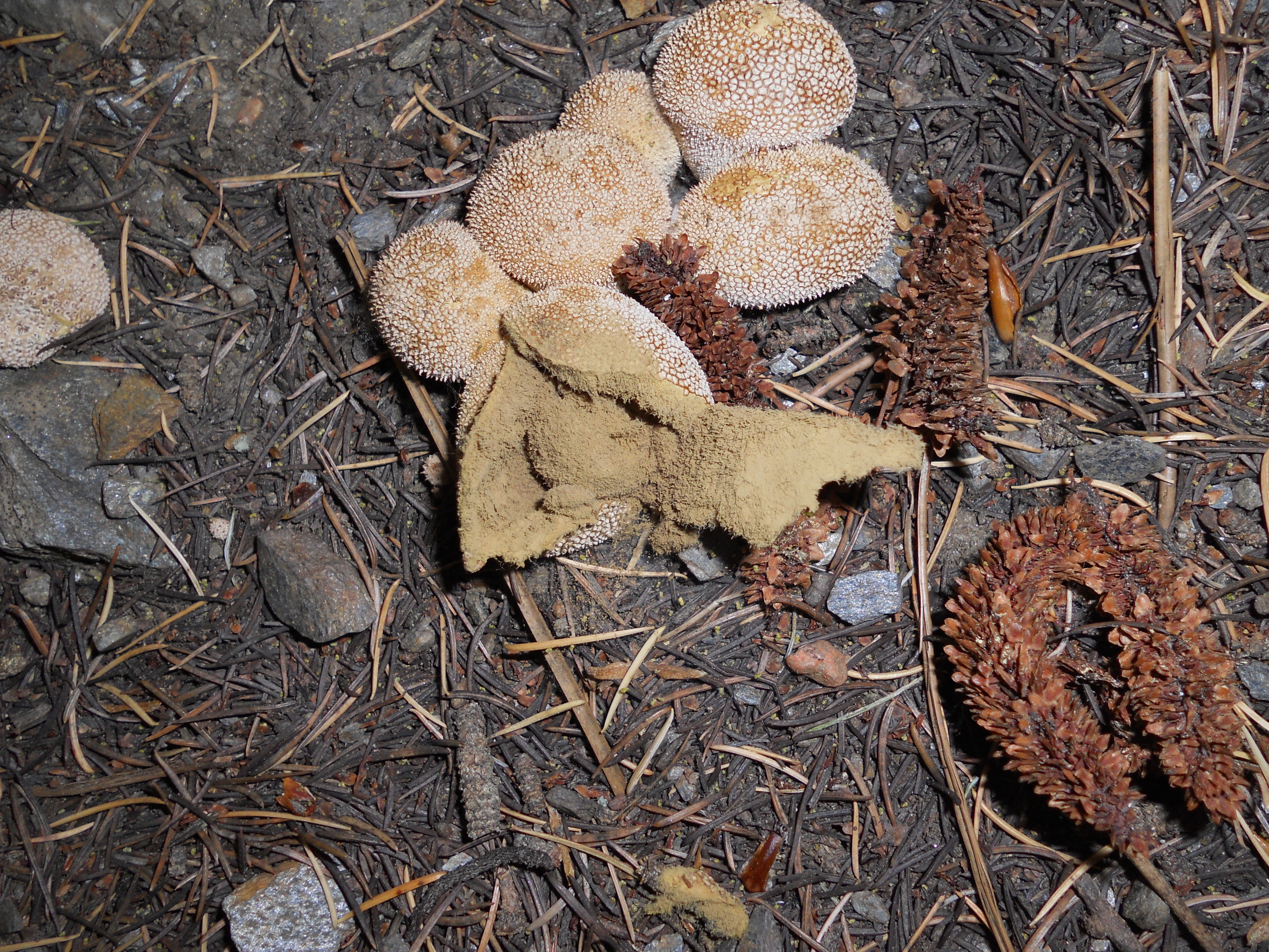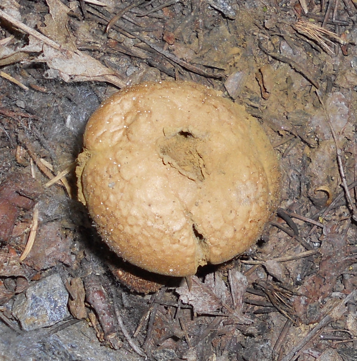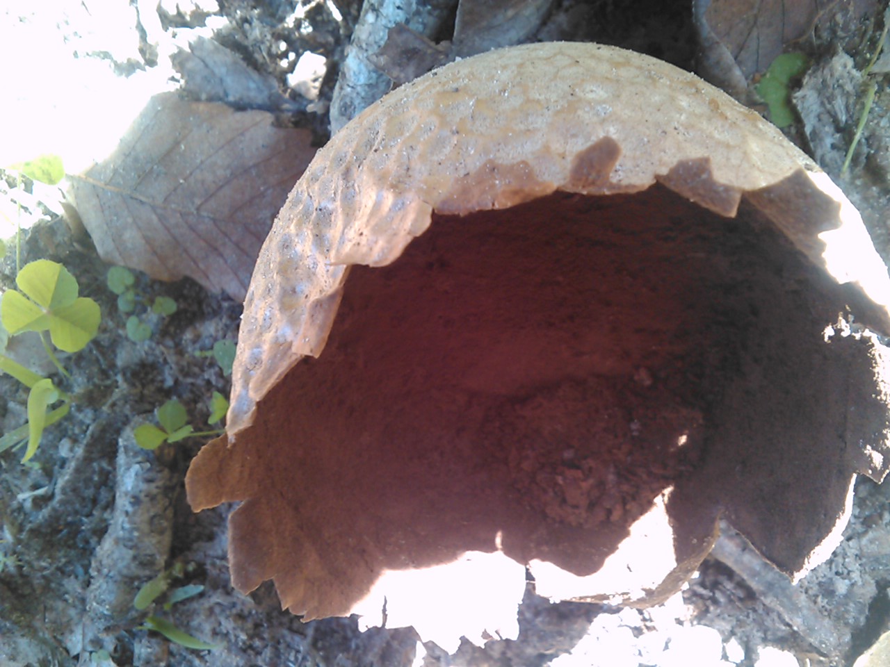 Cerca habia varios Lycoperdon nigrescens, pero no son el mismo, aquellos ya maduros eran de consistencia blanda y este dura.