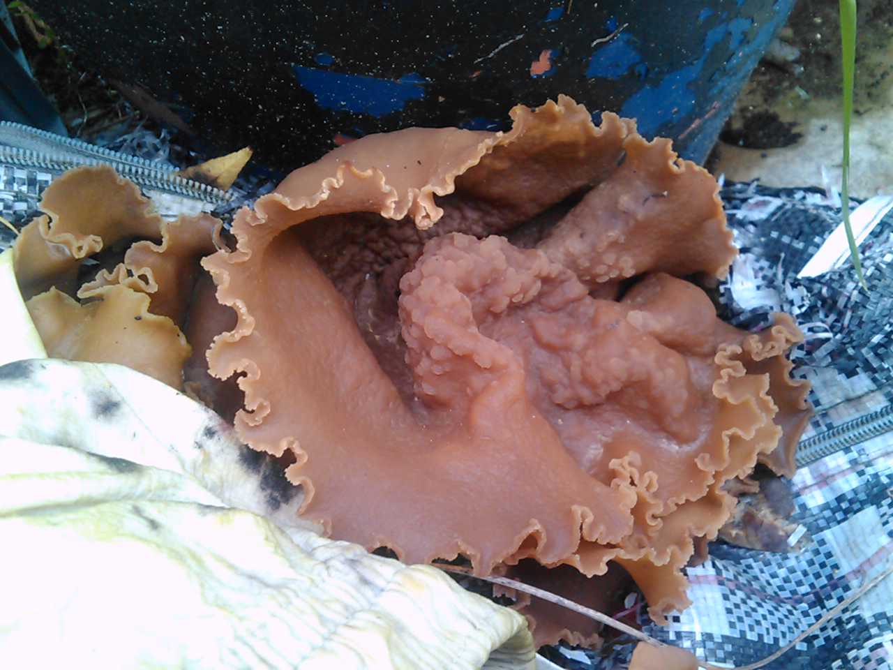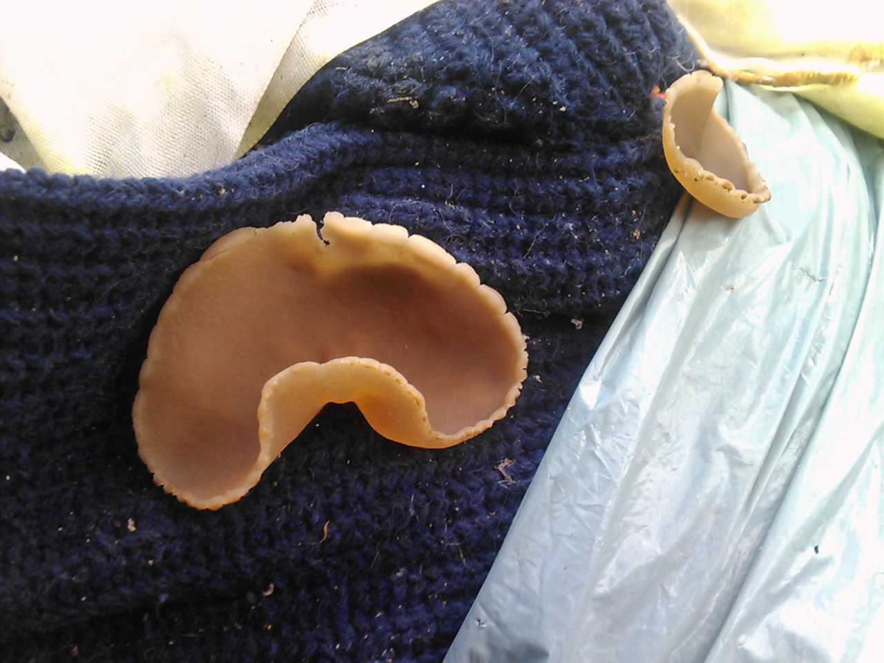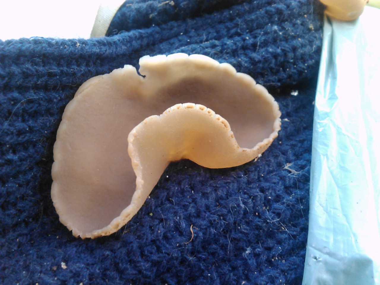 Hola foreros. Como digo en el titulo del post, no tengo ni la menor idea. Esta seta me produce especial curiosidad, por su habitad y dimensiones. El sustrato que utilizo para brotar es ropa, concretamente un chaleco de lana, como podeis ver. Es bastante grande, pues el ejemplar adulto podia medir entre los 13 y 15 cms. Las fotos son de el mes de enero de este mismo año.