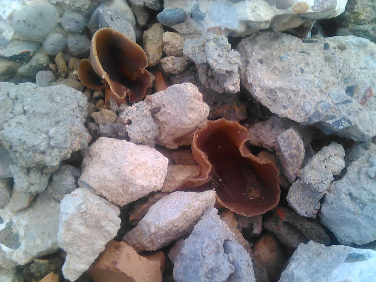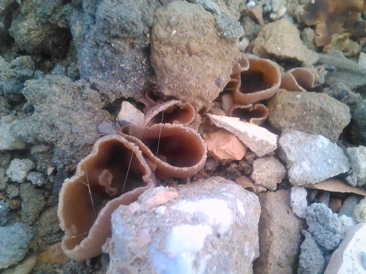 Hola chic@s, probablemente sea Peziza micropus=Peziza cerea=Peziza varia, parece ser que son la misma especie, es lo que últimamente se propone por análisis de ADN y por coincidencia microscópica, tienen querencia por los materiales de construcción.