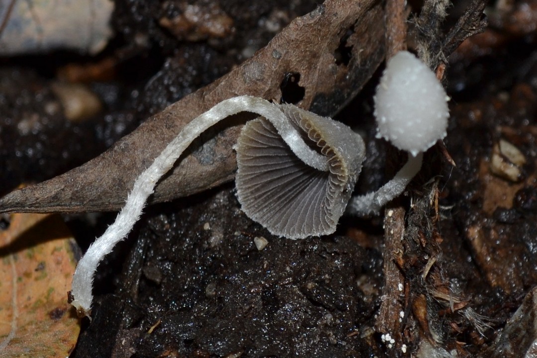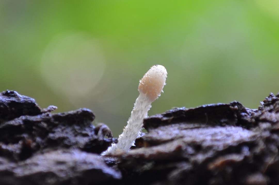 buenas ,del humedal ,en un pequeño riachuelo ,de unos tres cm. sombrero de color blanco al principio con pequeños bellos o hilones ,en su madurez tonos grises ,pie largo respecto al sombrero , delgado y velloso de color blanco un poco traslucido en ejemplares desarrollados sobre madera de fresno en descomposición