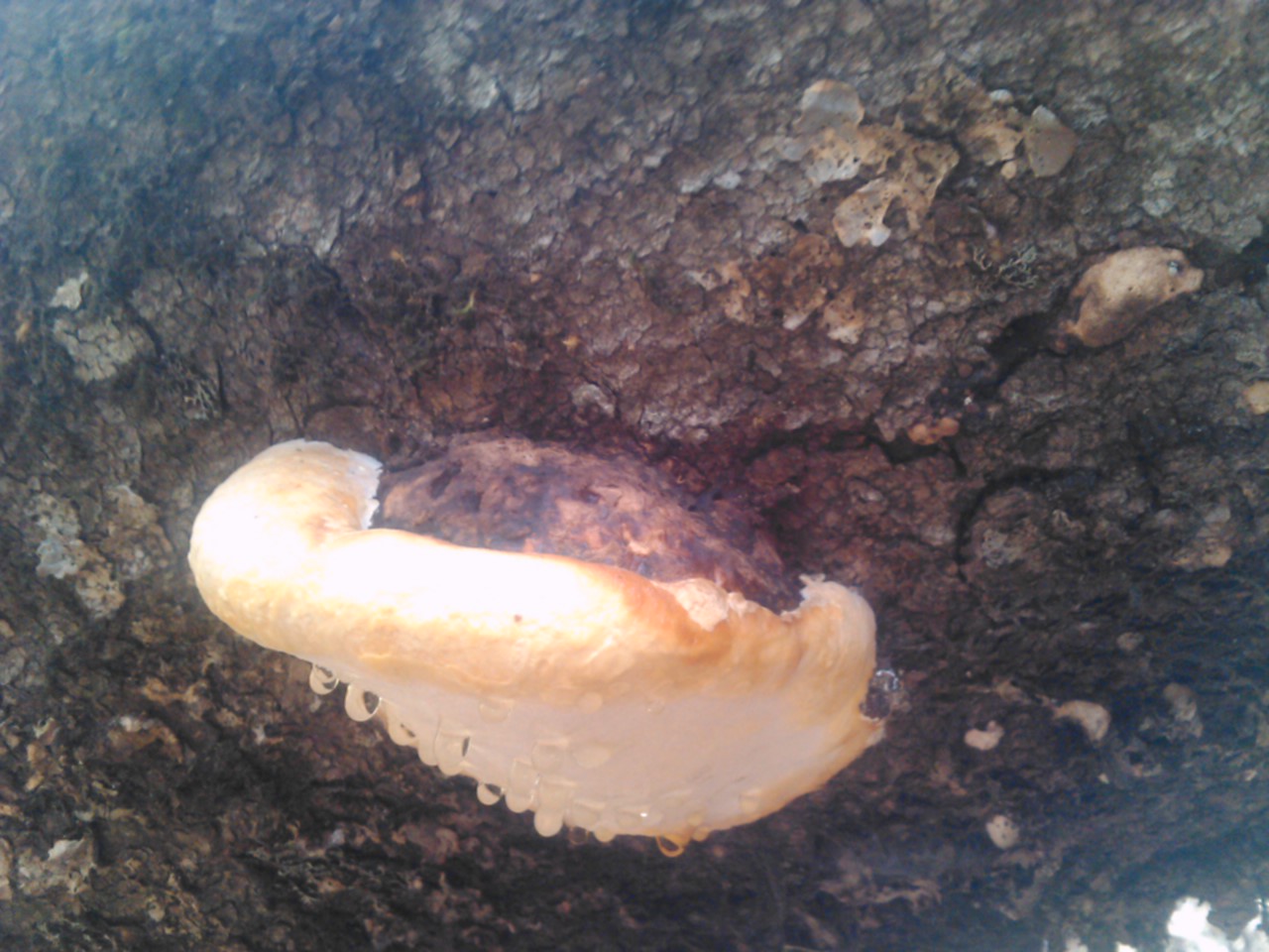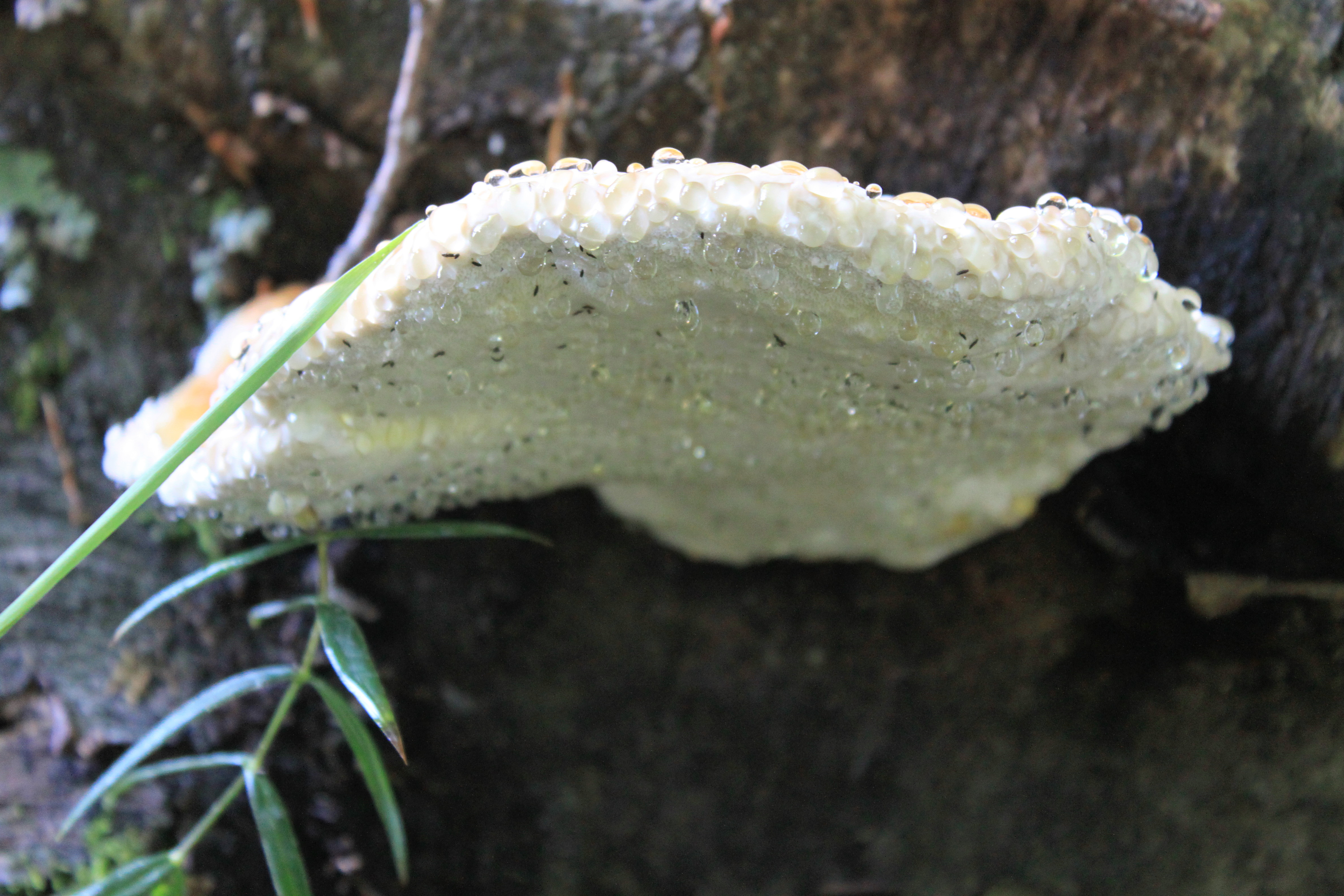 Gracias Bill. Ese día, por suerte, no llovía. Las gotas que ves en uno de los ejemplares no las tenían los otros de al lado. Efectivamente, como dice José Antonio, las gotas las produce la seta.