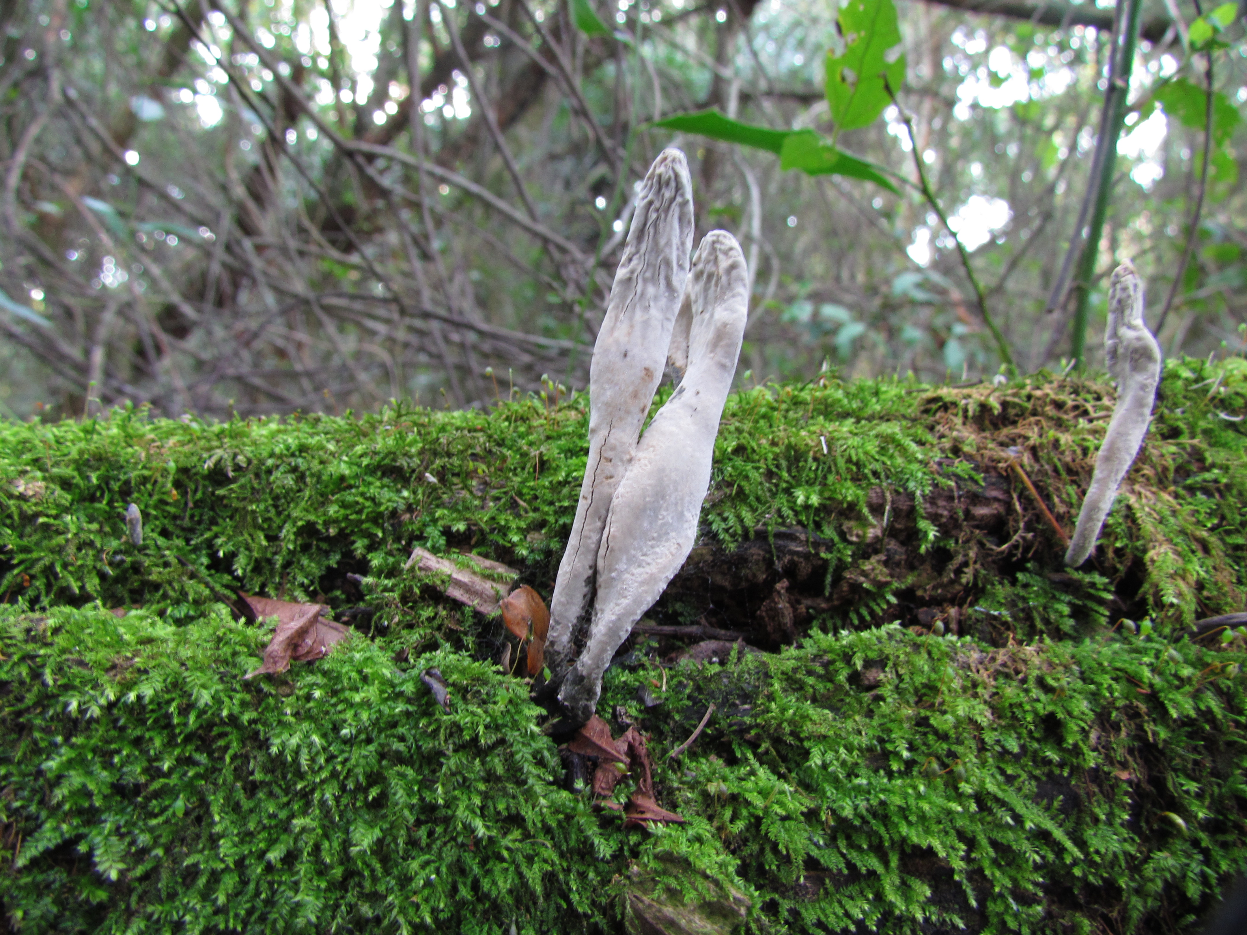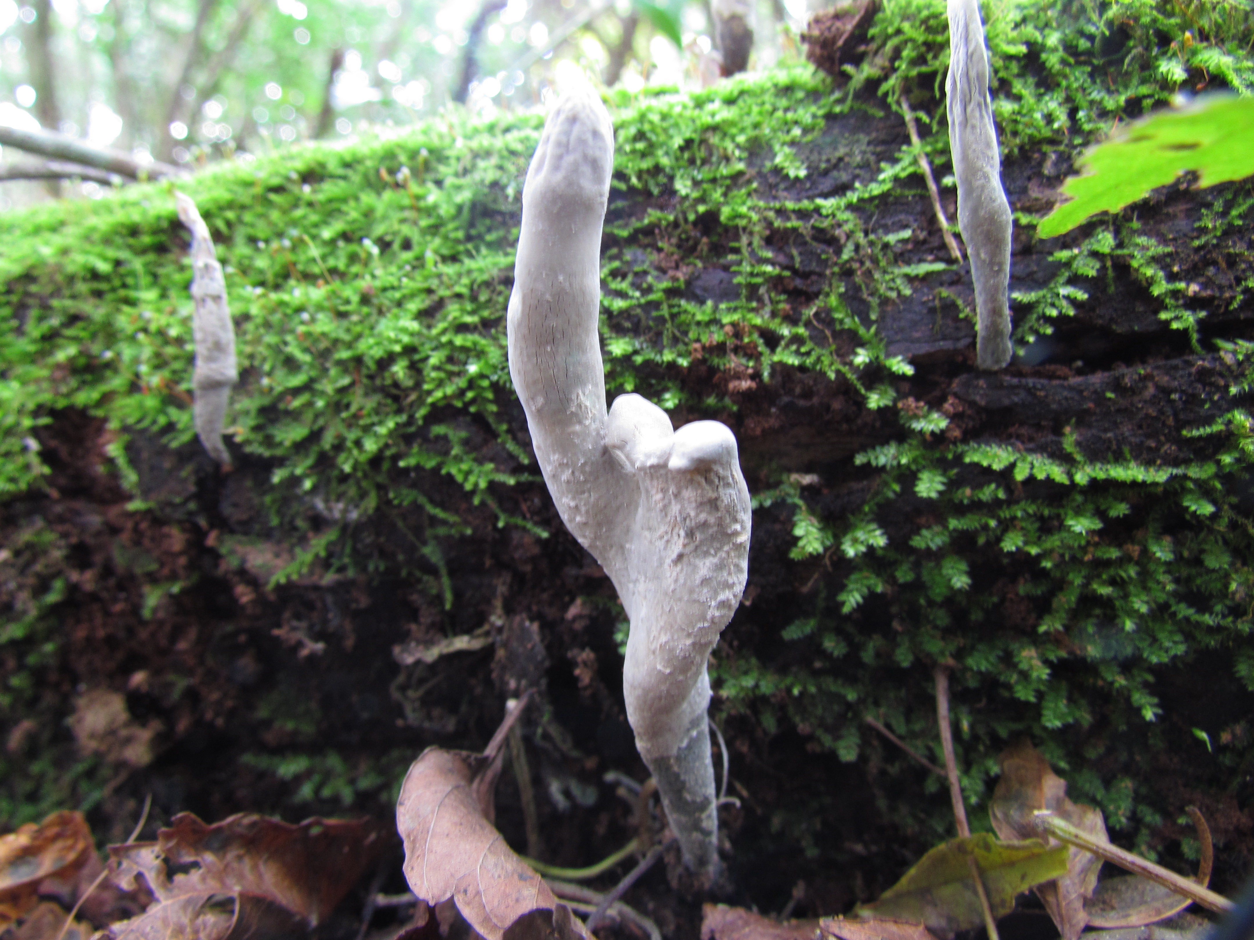 El color blanquecino que se oserva está causado por los conidios que recubren el exterior en las formas conidiales de algunos Ascomycetes, tengo claro que es una forma conidial de una Xylaria, pero no tengo claro de cual, podría ser perfectamente la forma conidial de la Xylaria longipes.