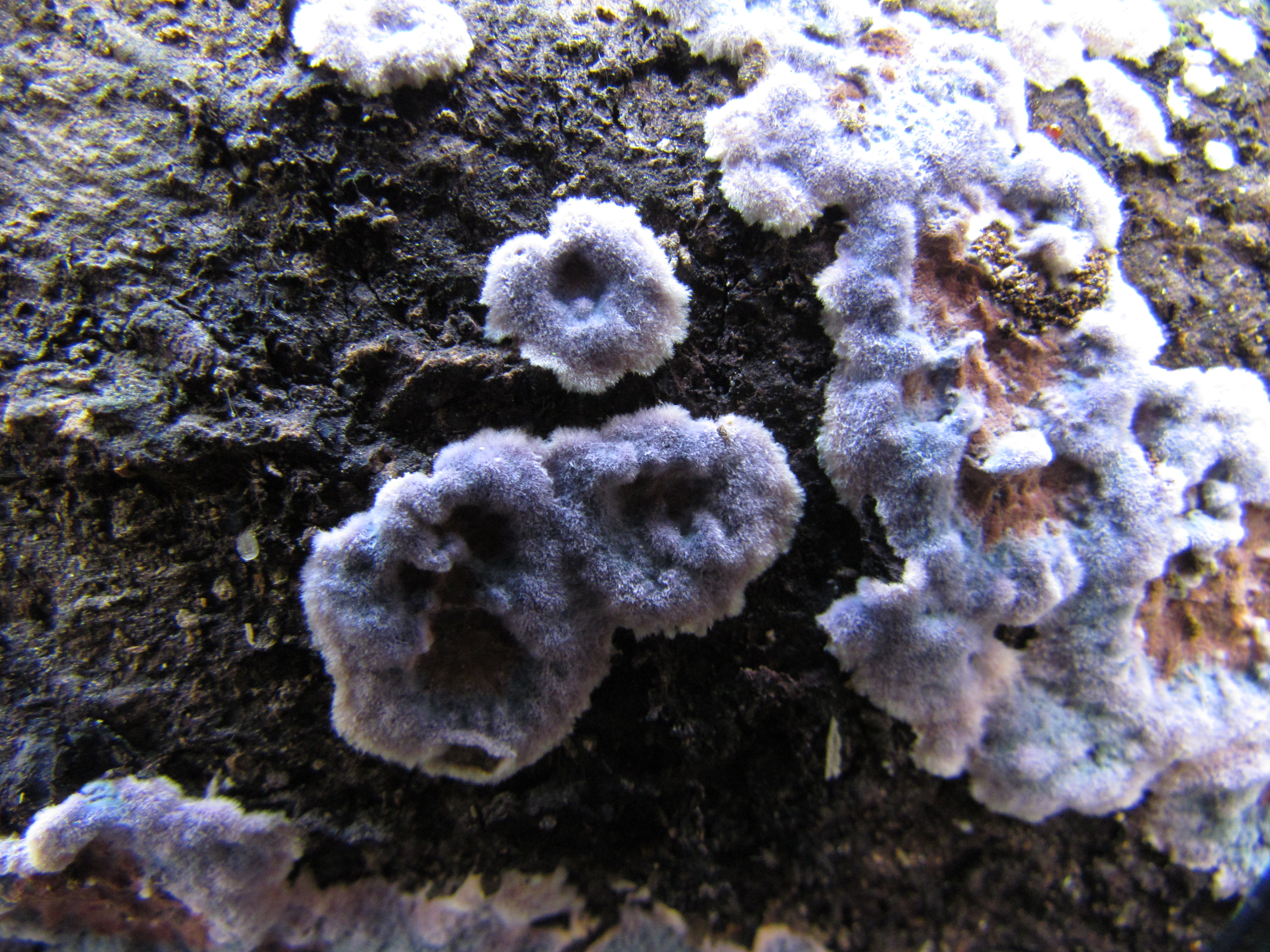 hola jose se que es complicado esto es como un moho violeta la mas parecido que encontré es Peniophora pero bueno no estoy seguro