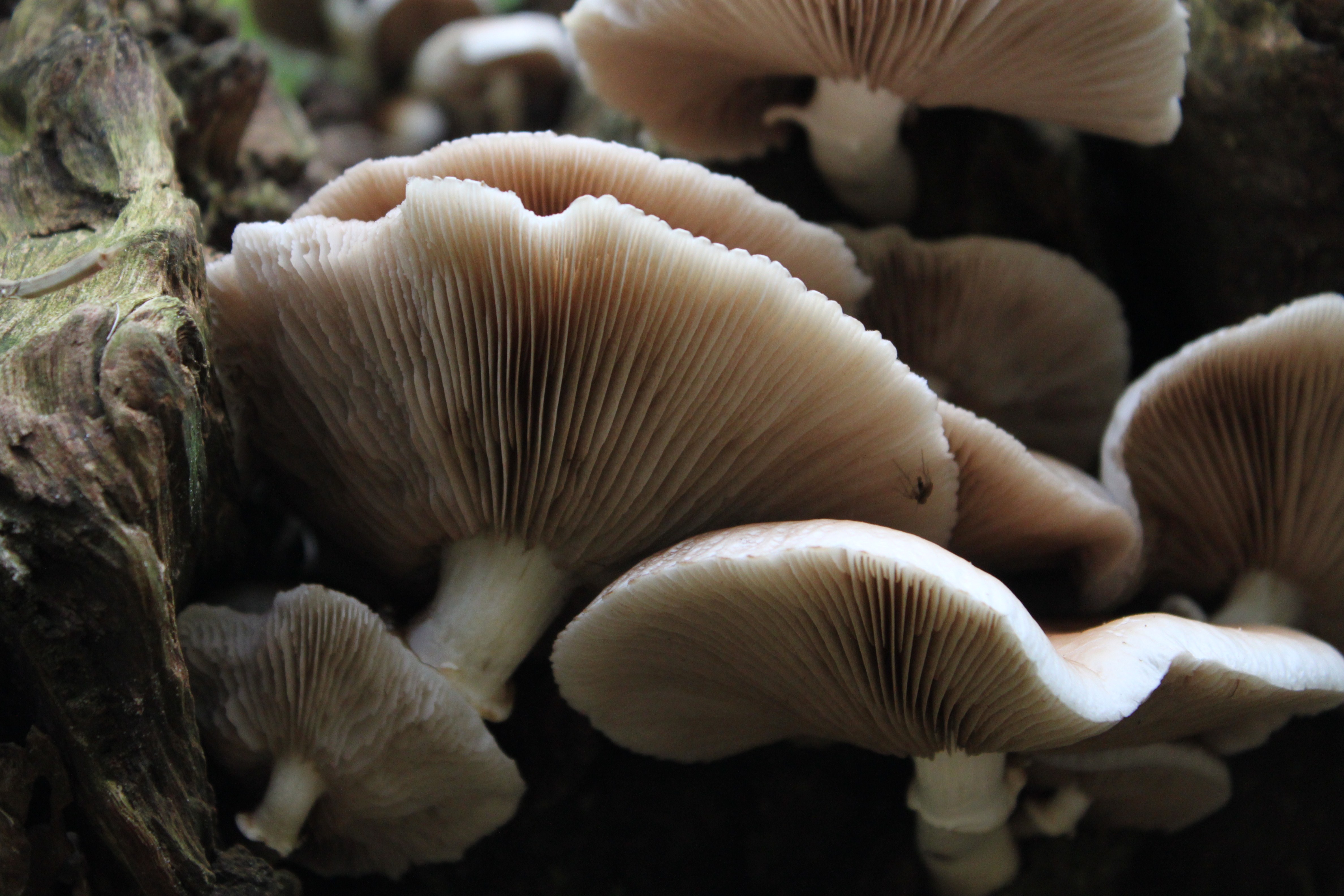Hola, hoy hemos encontrado esta especie de setas, pero no sabemos de que clase son, estaban al lado de un tronco de arbol, y habia un rio cerca, no se si sera de mucha ayuda...