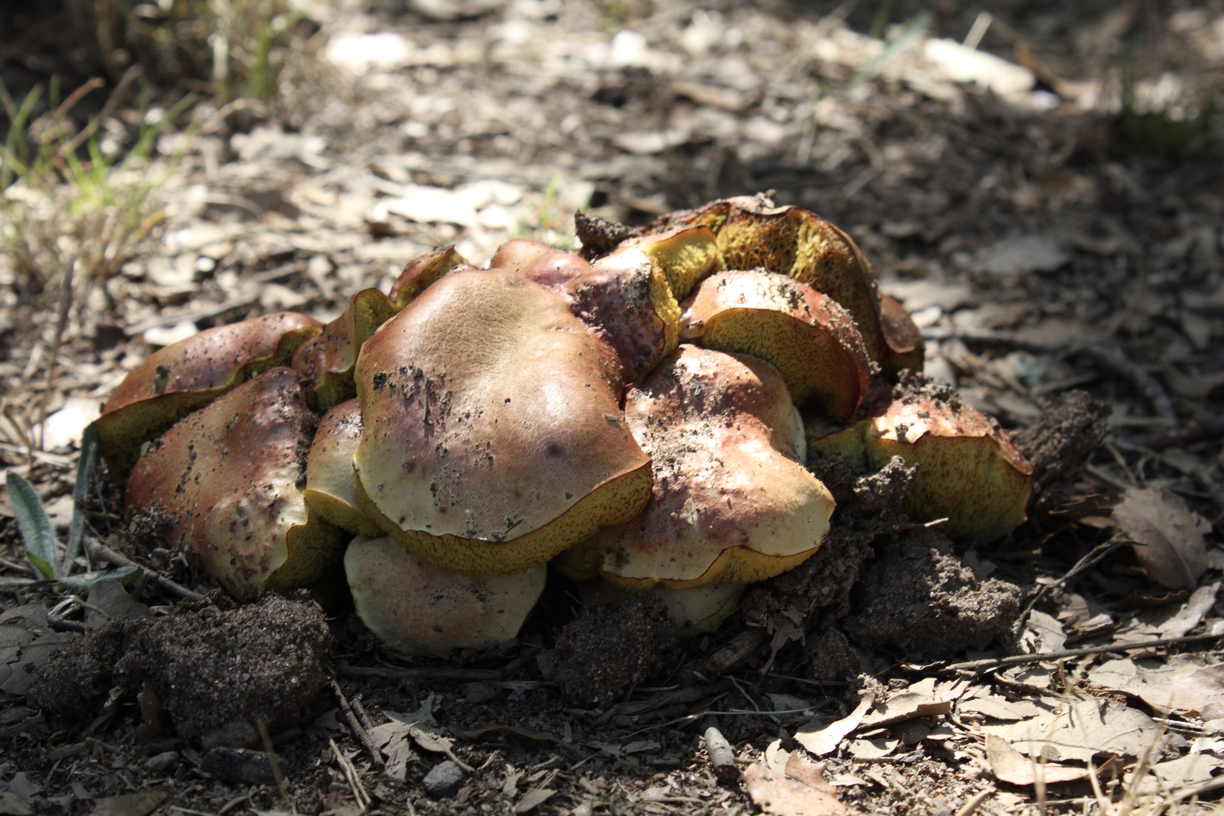 La primera si vieramos los poros sería otro cantar, si son rojos puede ser un Luridus y sino ya veriamos, la segunda anda entre luridus y erythrophus, no aprecio si tiene retículas en el pie, dato importantísimo. La tercera es misión imposible, arracimados y con ese sol todo lo que te dijera entraría en el terreno de la mera especulación.