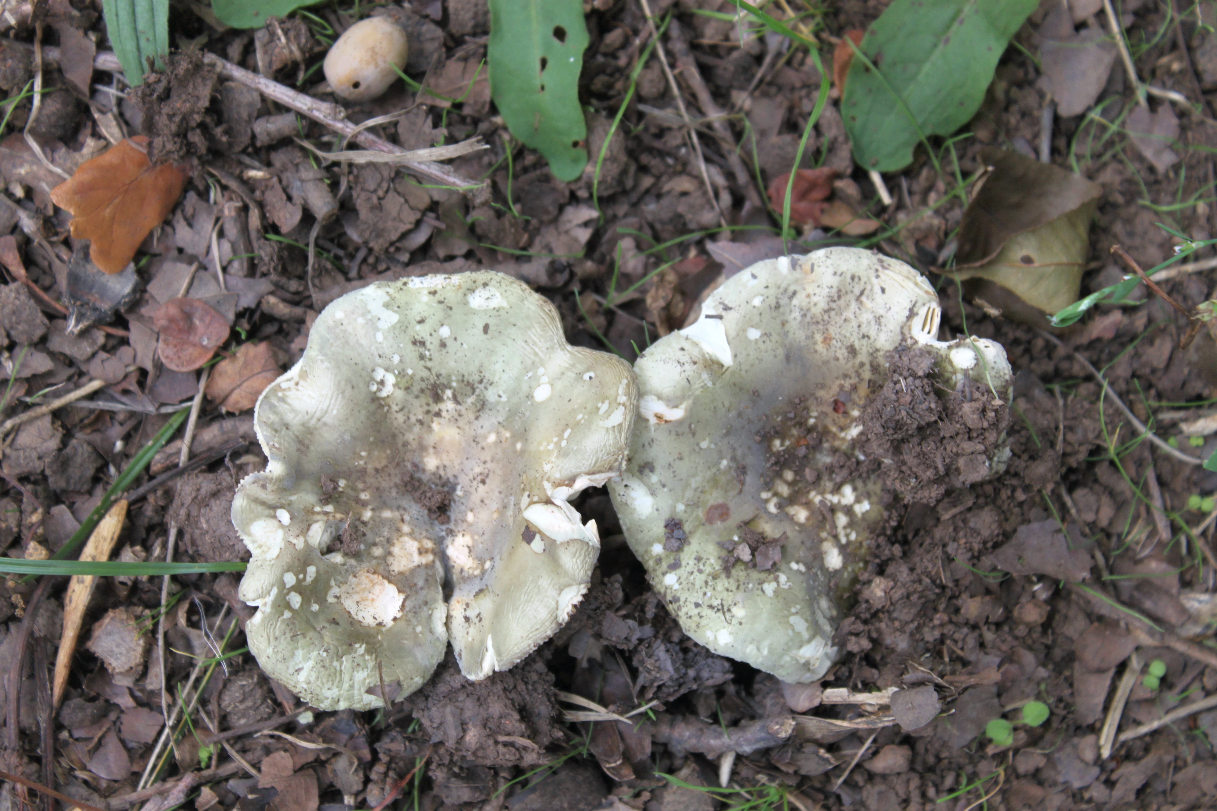 Ejemplares localizados bajo robles, un tanto resecos por las altas temperaturas de estos días. Sombrero deprimido. Predomina el color verde, alternándose el verde claro con zonas más oscuras, incluso verde botella, tonos ocráceos por algunos lugares. Láminas secas, frágiles al tacto. Sabor agradable.