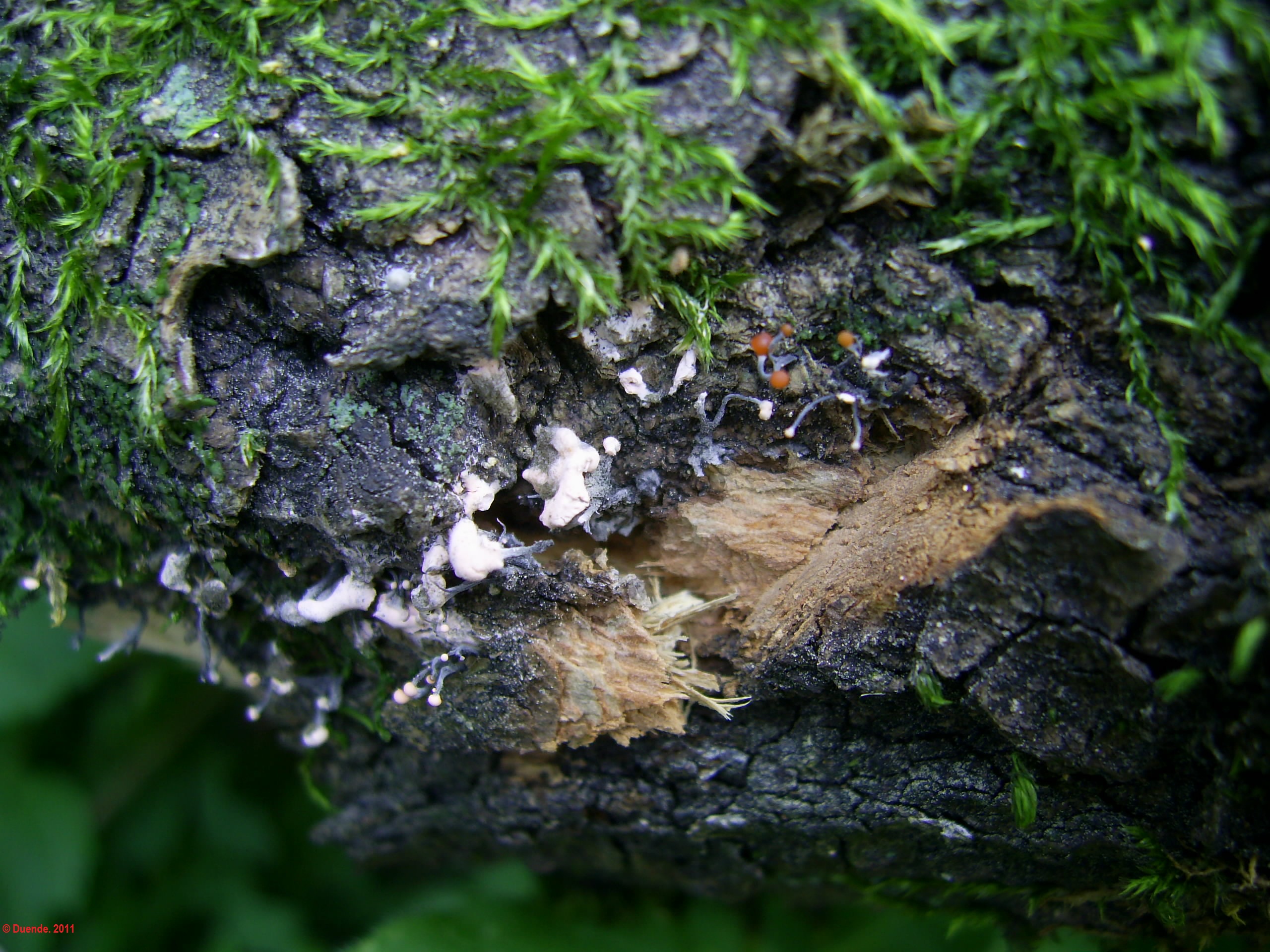 He visitado las Trichias y encontré otro tronco cerca del mismo árbol que parecía mostrarlas en su fase plasmodial. Pongo 3 fotos sacadas hace dos horas para que veáis las fases por las que pasa dicha seta.