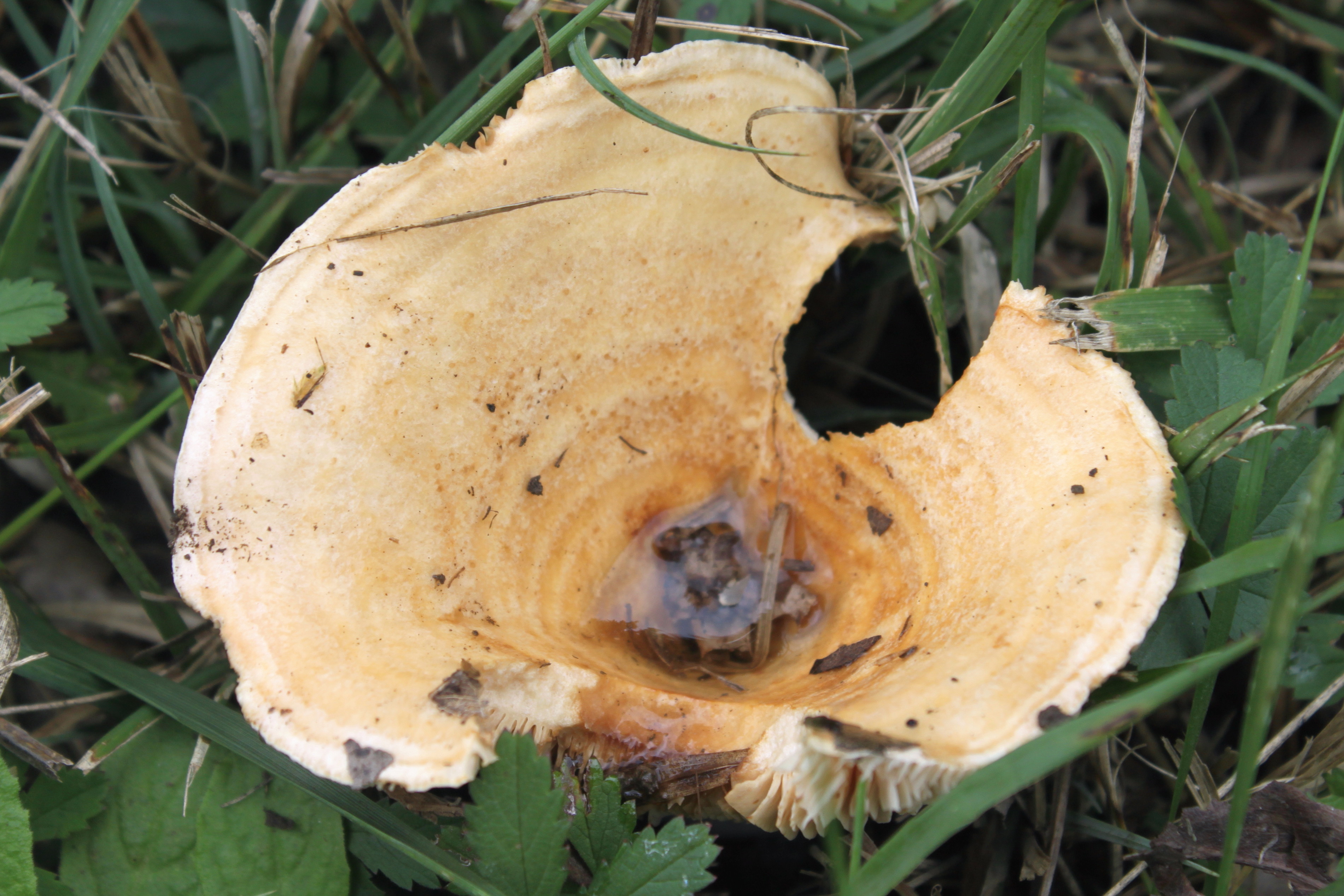 Gracias amigo Pedro por esta interesante aportacion, se parece al L. zonarius bastante, pero el detalle que comentais Javi y tu de la union de las laminas con el pie lo distinge. Tambien se parece al L. acris, pero este tiene el latex rojo.