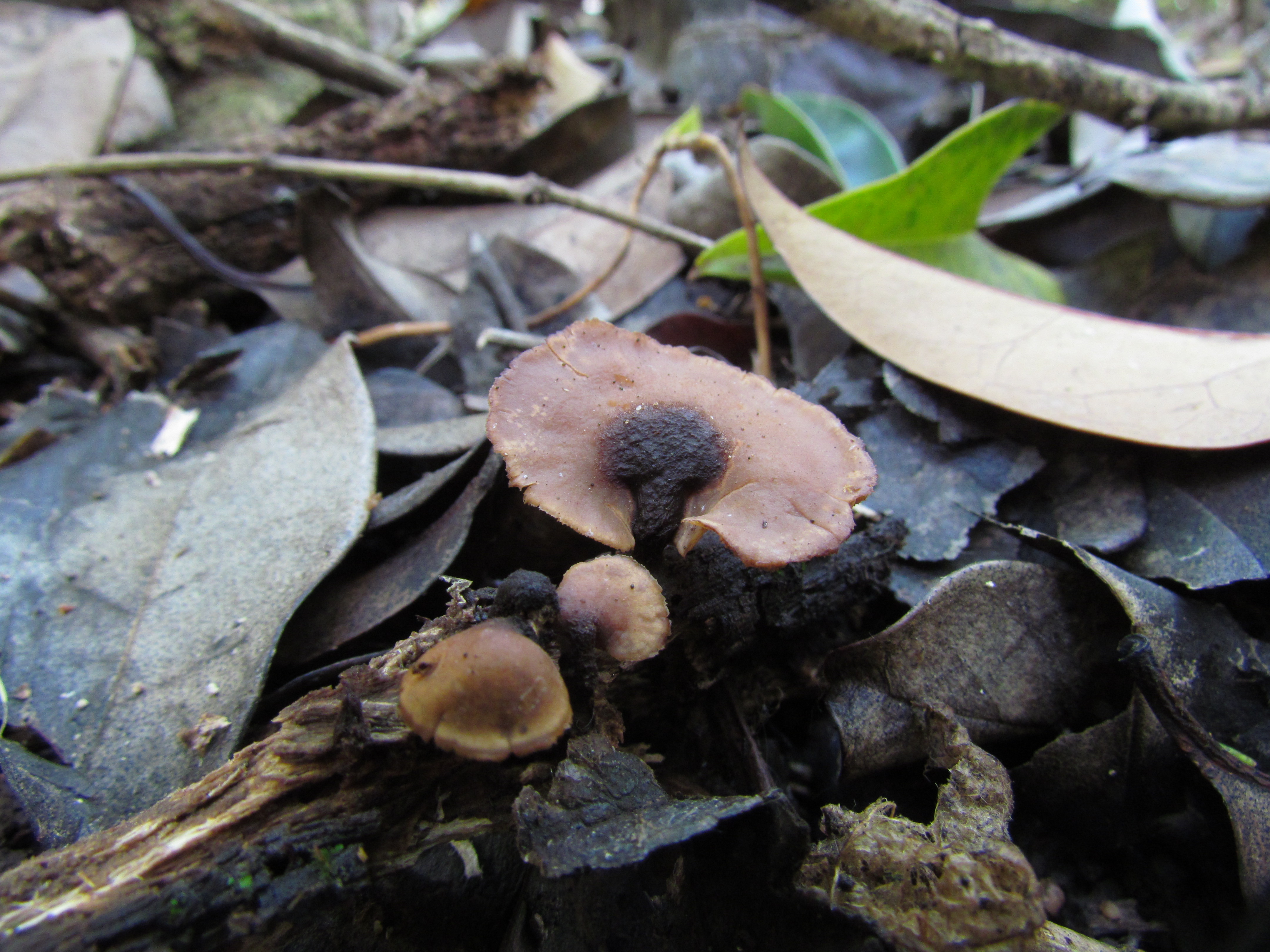 Bueno yo estuve buscando información y pienso que podría ser Tephrocybe anthracophila. Es un hongo que parece ser que crece en restos de hogueras y que en ocasiones posee un umbo de color oscuro, pero no se.