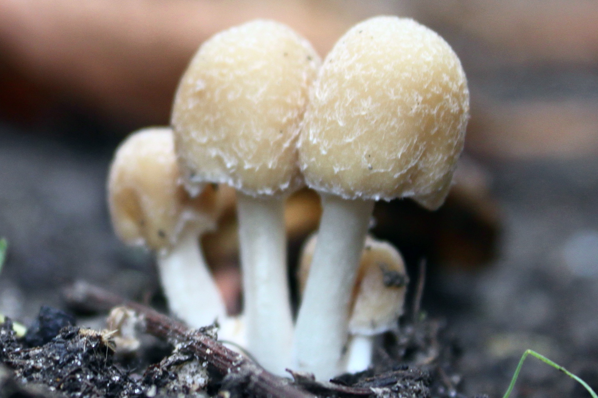 Más dudas me plantean estos otros ejemplares, con un sombrero de 1 a 2 cm, sin estrías y con la superficie ligeramente lanosa.