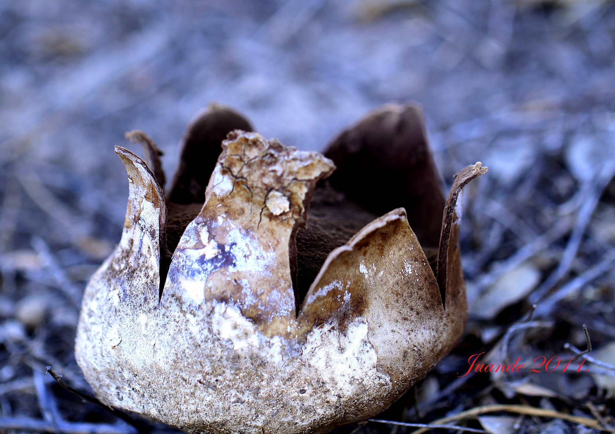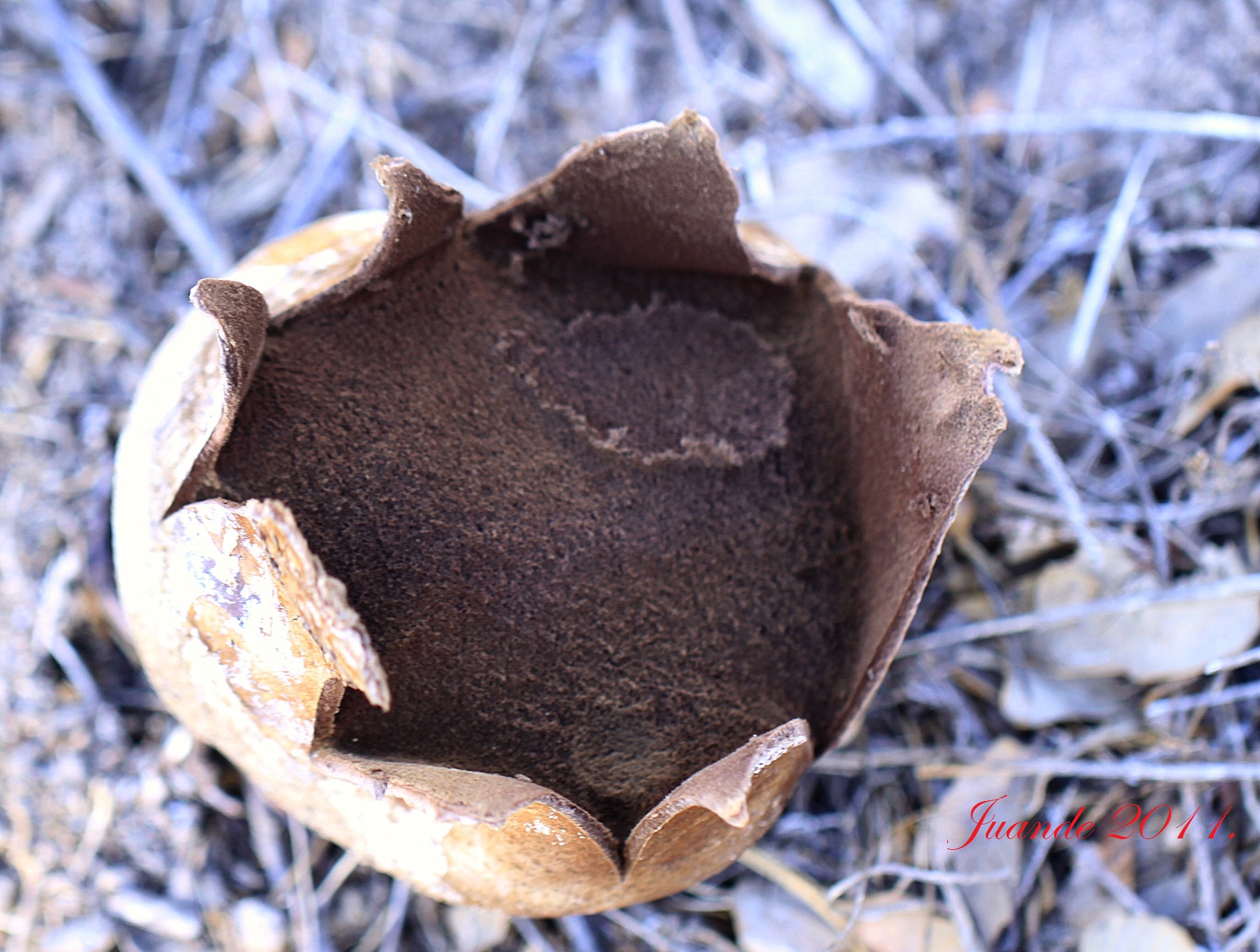 Antes de cuartearse el peridio se muestra blanquecino, esas grietas ayudan a definirlo, tienes una foto de un ejemplar joven en esta dirección: www.micologia.net/gallery2/main.php?g2_itemId=151456