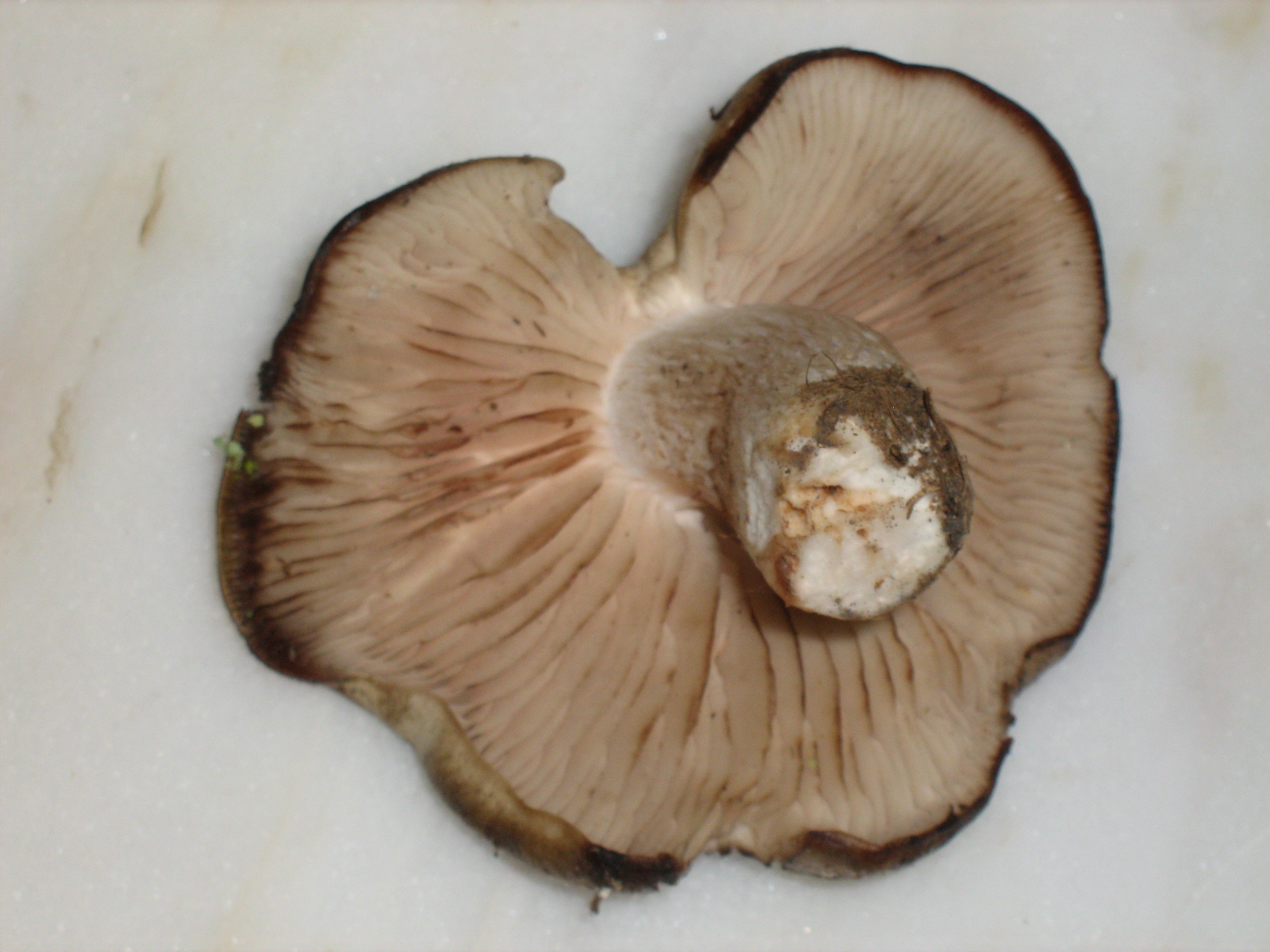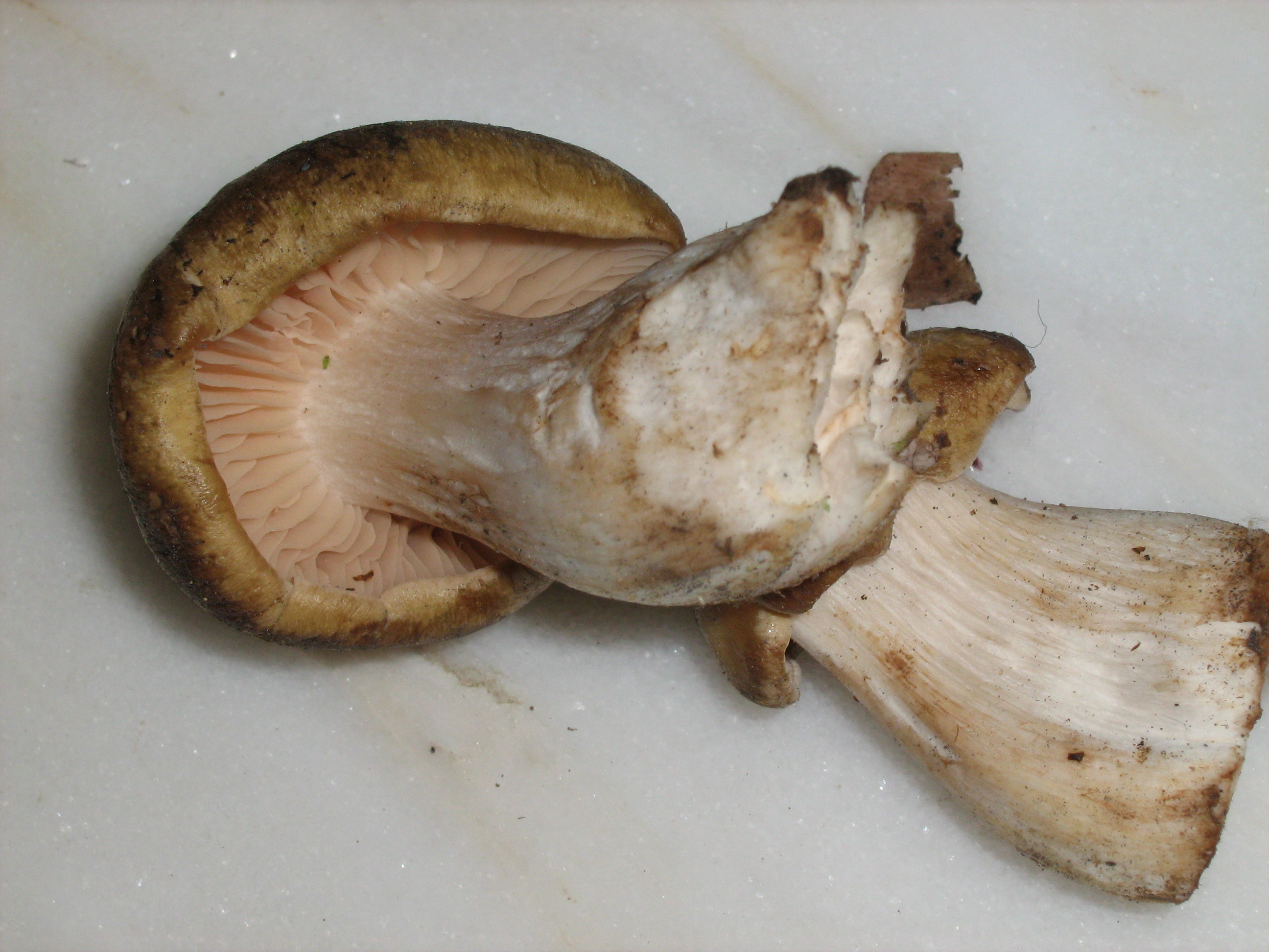 Las láminas si que tenian el color rosaceo que comentaban Joseba Castillo y Adrian y creo que se puede descartar que sea tricholoma portentosum que apuntaba Juande por ser de otra época del año según leo por ahí.