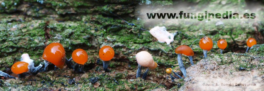 Tanto a Ricardo como a Javi y servidor nos está esta especie mareando pues no llegamos a ningún sitio....(llevamos varias semanas con ella y no queremos desistir)y no tiene que ser tan difícil con este pie de color negro y este color naranja que adopta en otro estado, en la fotografía que adjunto aunque ya la subí en un anterior post se ve este otro estado diferente al de las fotos de Ricardo......A ver si hay suerte y alguien la ve por algún libro,internet u otro sitio que se nos haya escapado. Un saludo.