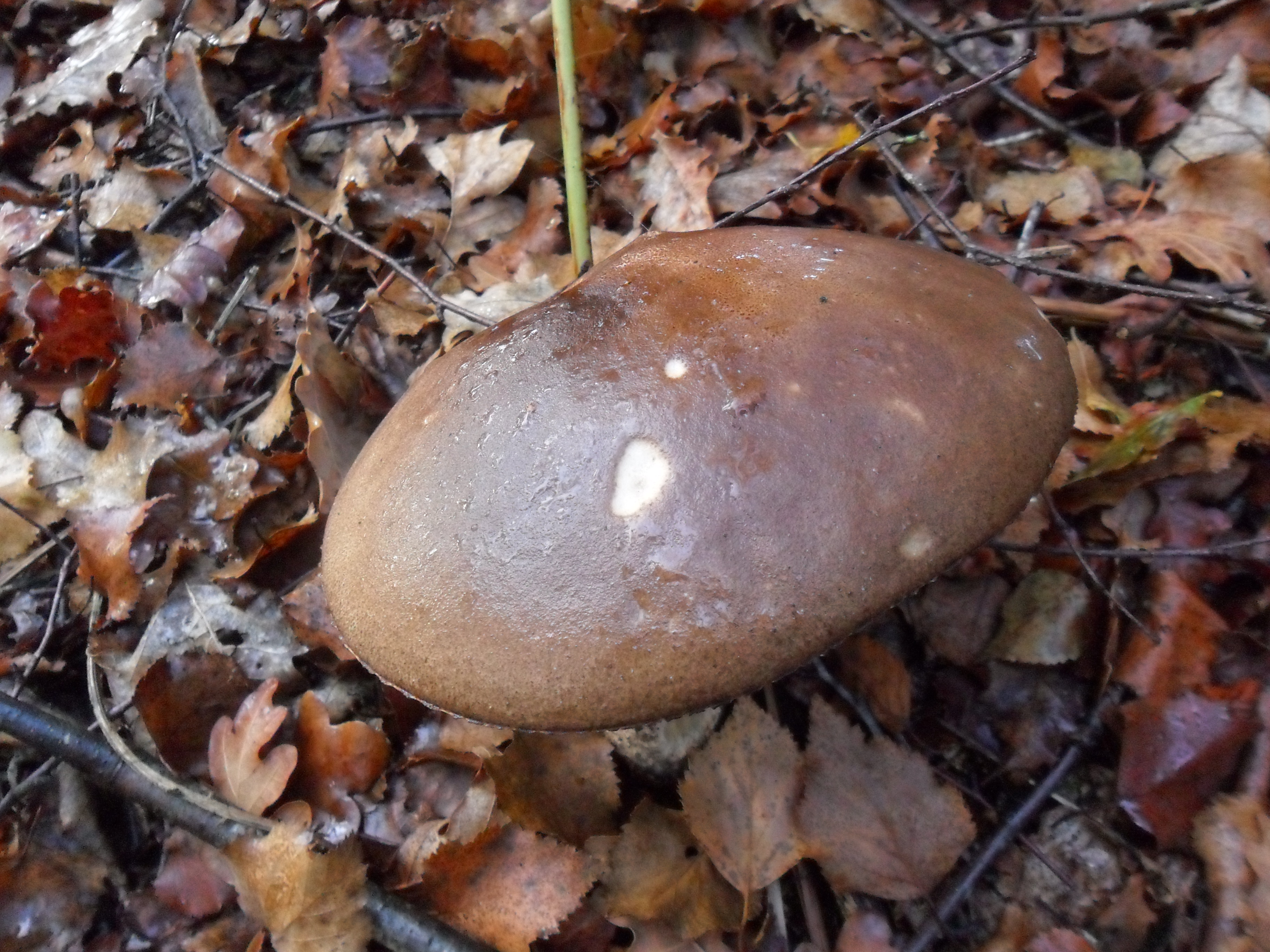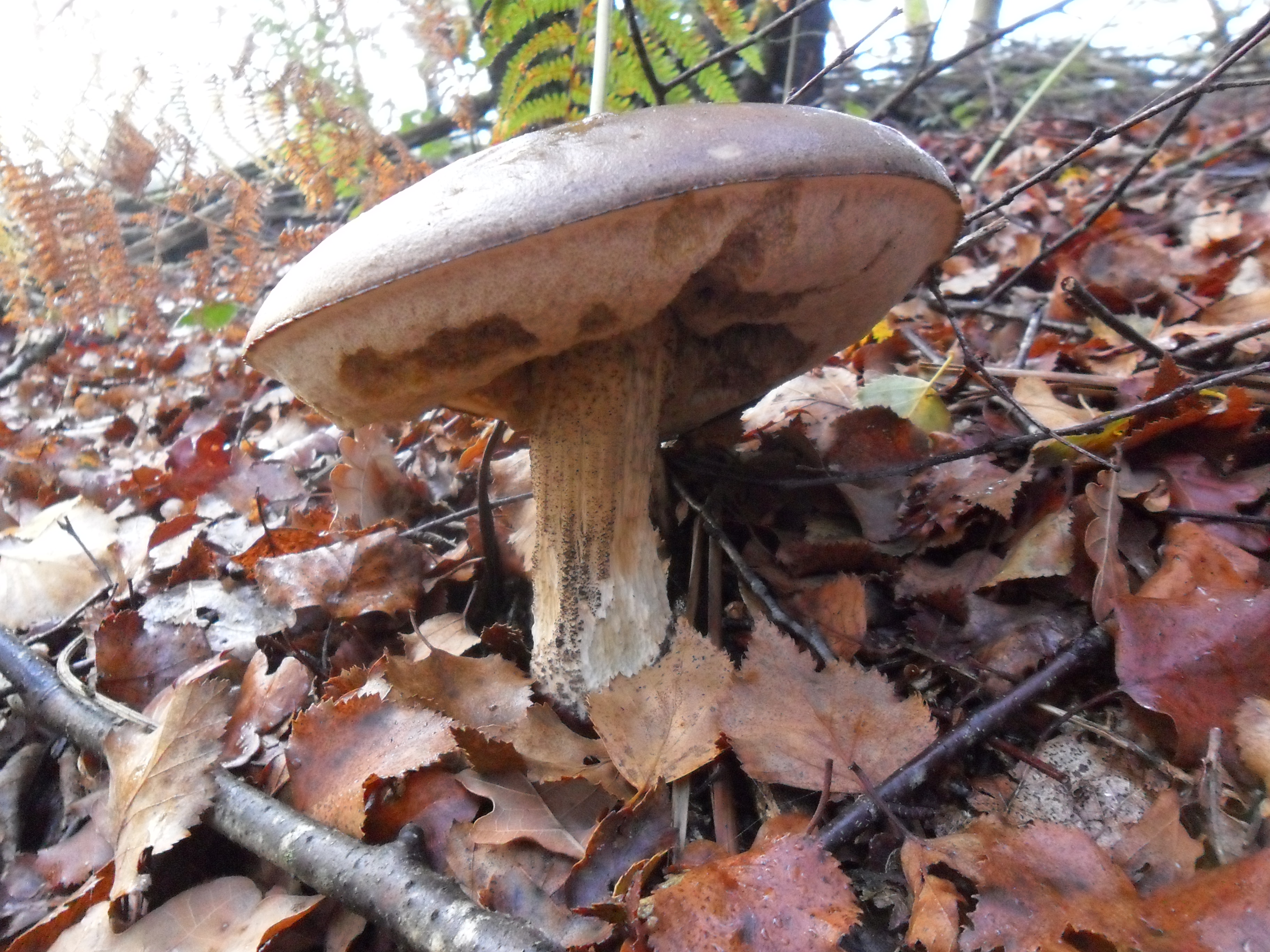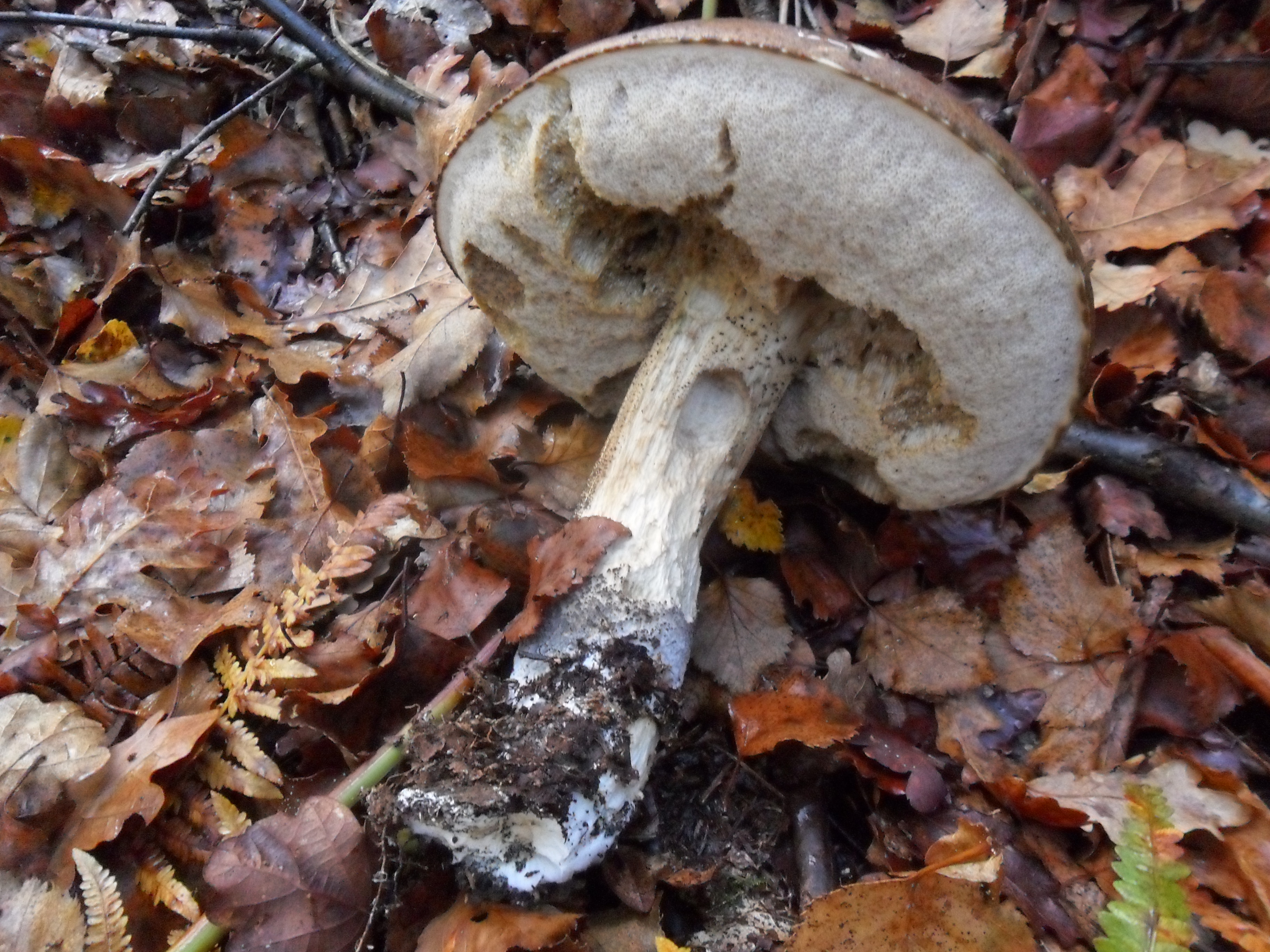 Aunque el pobre esta fatal, pienso que es Leccinum Scabrum. Saludos y paciencia, que todo llega tarde o temprano. Ultimamente tenemos estaciones atipicas, veranos muy largos como este, o muy cortos com el del año pasado, en fin que el planeta esta cambiando, y no para bien.
