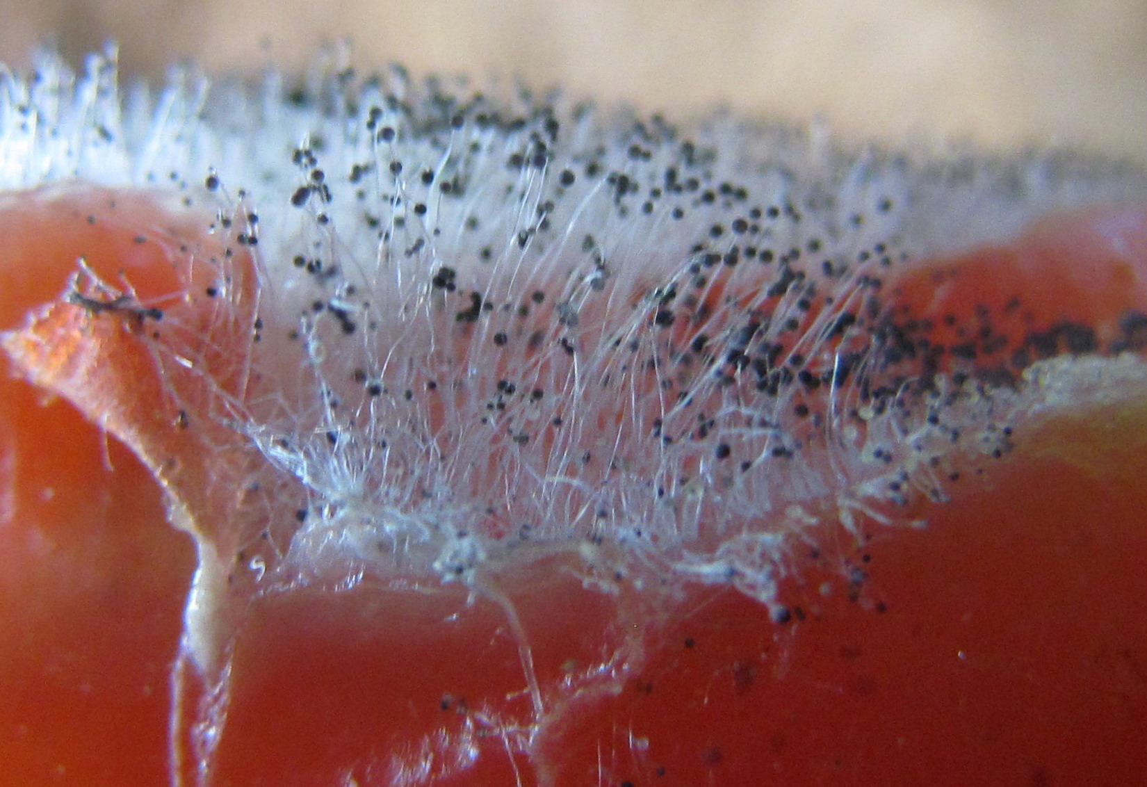 Rhizopus stolonifer probablemente Sergio, es el más habitual sobre restos de comida o hortalizas.