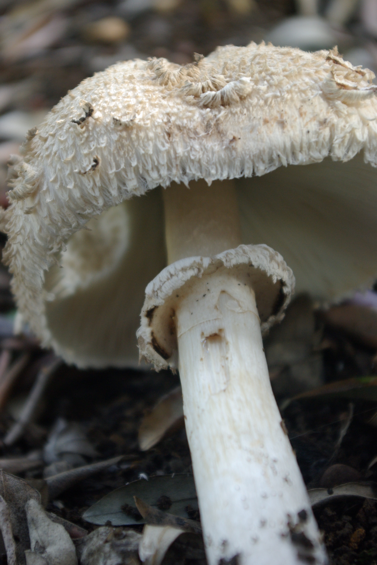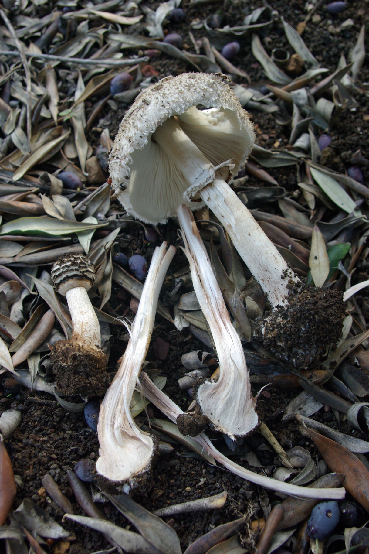 3.- Esta me acerque pensando que iba a degustar la primera macrolepiota de la temporada, pero cuando llegue la vi bastante extraña y diferente a la M. procera. No se. No tenia anillo doble y estaba en un cultivo de olivos, era muy escamosa.