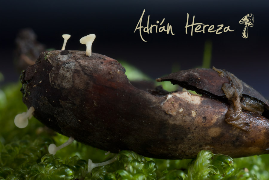 Hola Adrian, excelentes fotos. Se trata de Hymenoscyphus fructigenus, crece sobre frutos de haya, robre y avellano, para más información.....