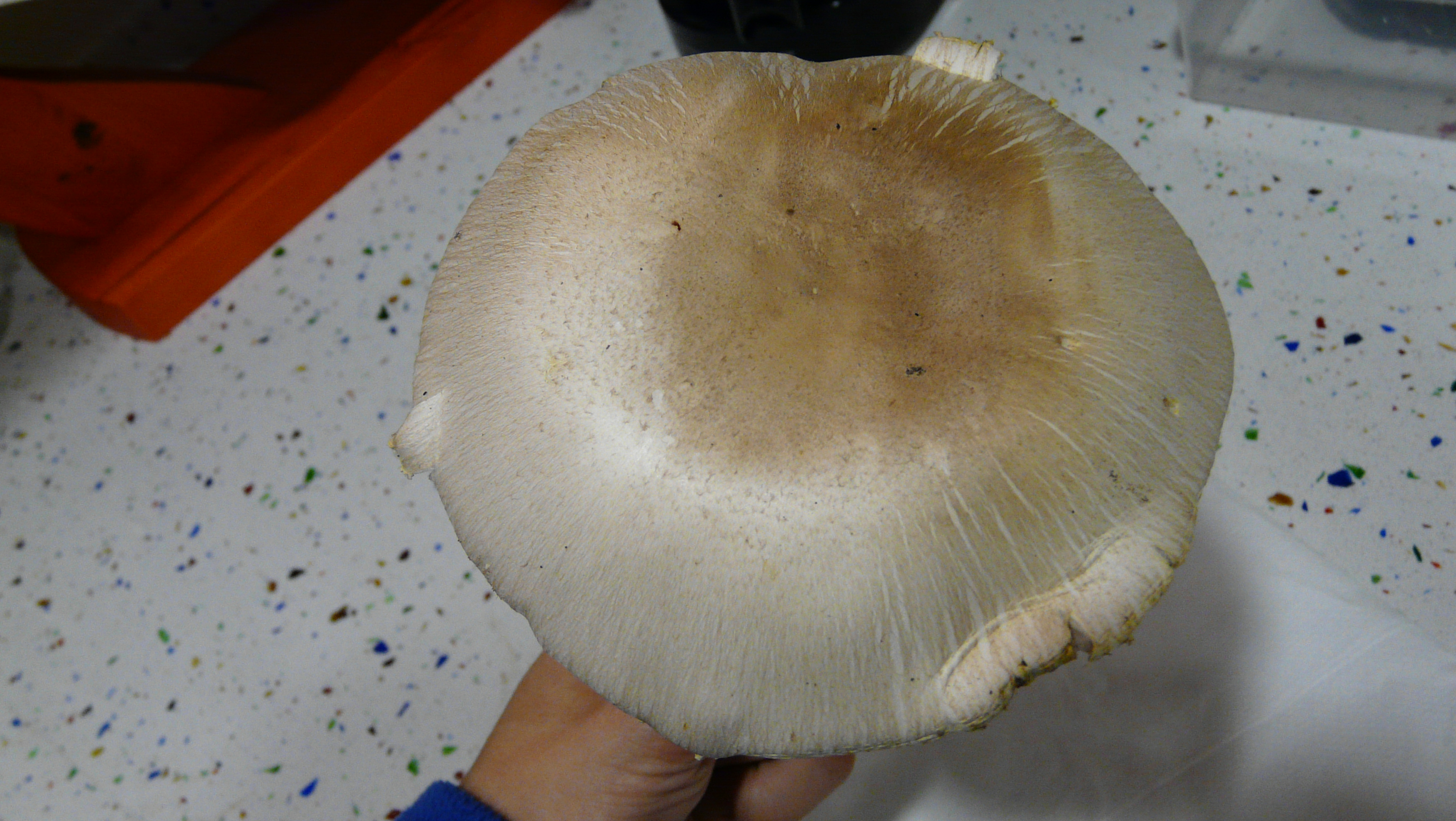 ¿Alguien me puede decir que seta es la que muestro en la imagen? Parece un champiñon y tiene olor a champiñon pero no se el tipo del mismo.