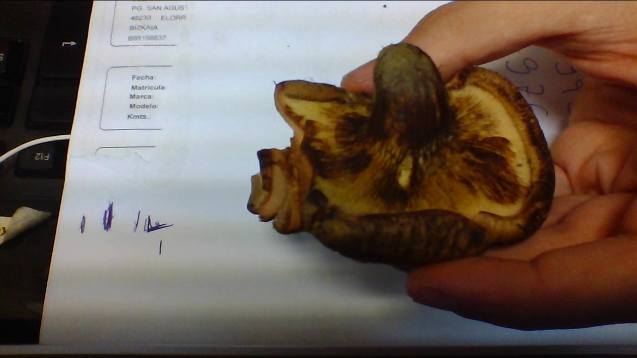 Hola Mikel, parece un Paxilos Involutus. De ser ese, es toxico mortal, creo no equivocarme con el.El problema radica, en que huele bien y sabe bien, como sabras, el olor no siempre es sinonimo de comestibilidad o toxicidad.!! PRECAUCION!! Un Saludo.