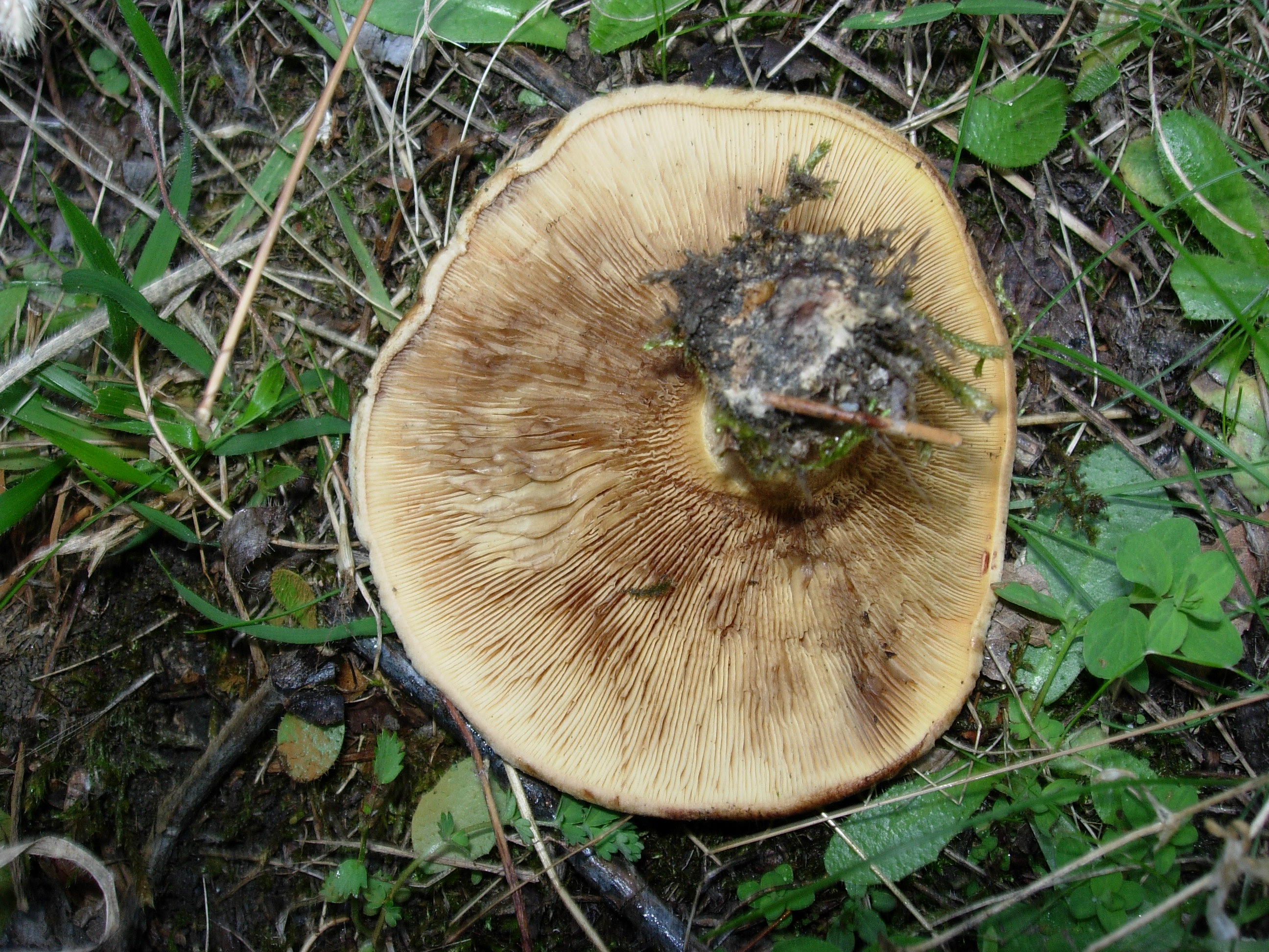 Estaba entre las dos posibilidades, pero me decante por la primera, pero mire con detenimiento las dos. Ese detalle que me comentas se me fué. El error no tendría consecuencias graves, pues las dos son toxicas.Al estar las fotografias hechas en casa, tampoco se aprecian restos de hojas que nos pueda llevar a alguna conclusion mas clara .Gracias. Esperemos nos aclare el habitat donde las recolectó. Un Saludo Javi.