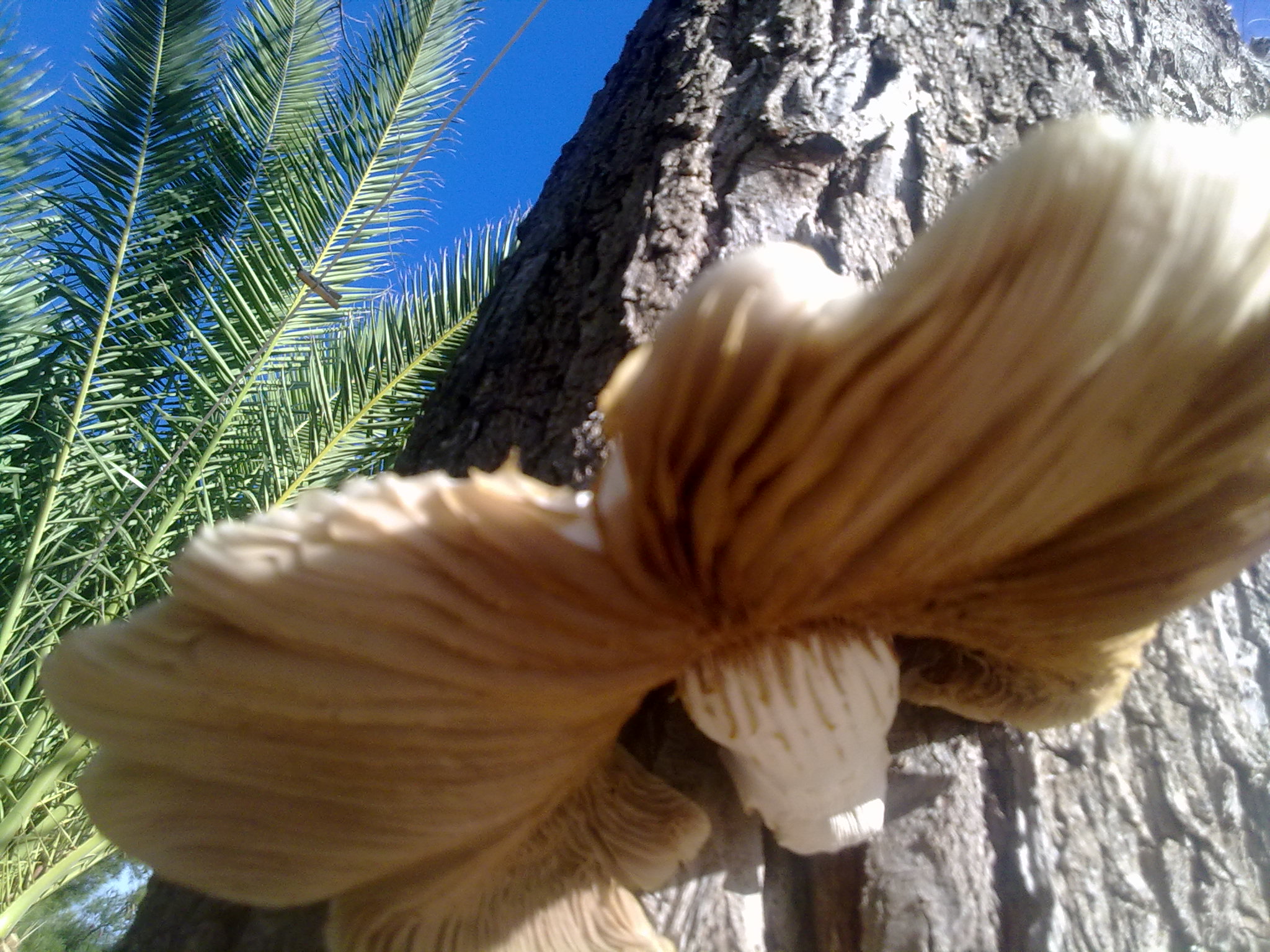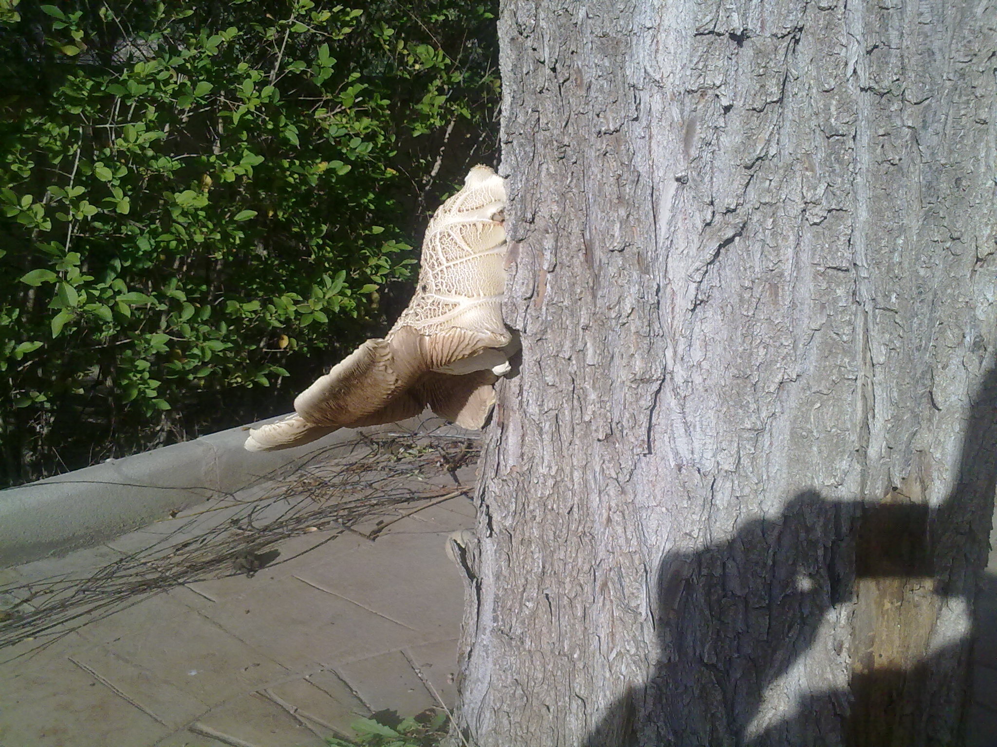Subscribo lo dicho por Pedro, me parece muy sensato, podría ser una Agrocybe aegerita vieja, pero es imposible saberlo con certeza por una sola foto.