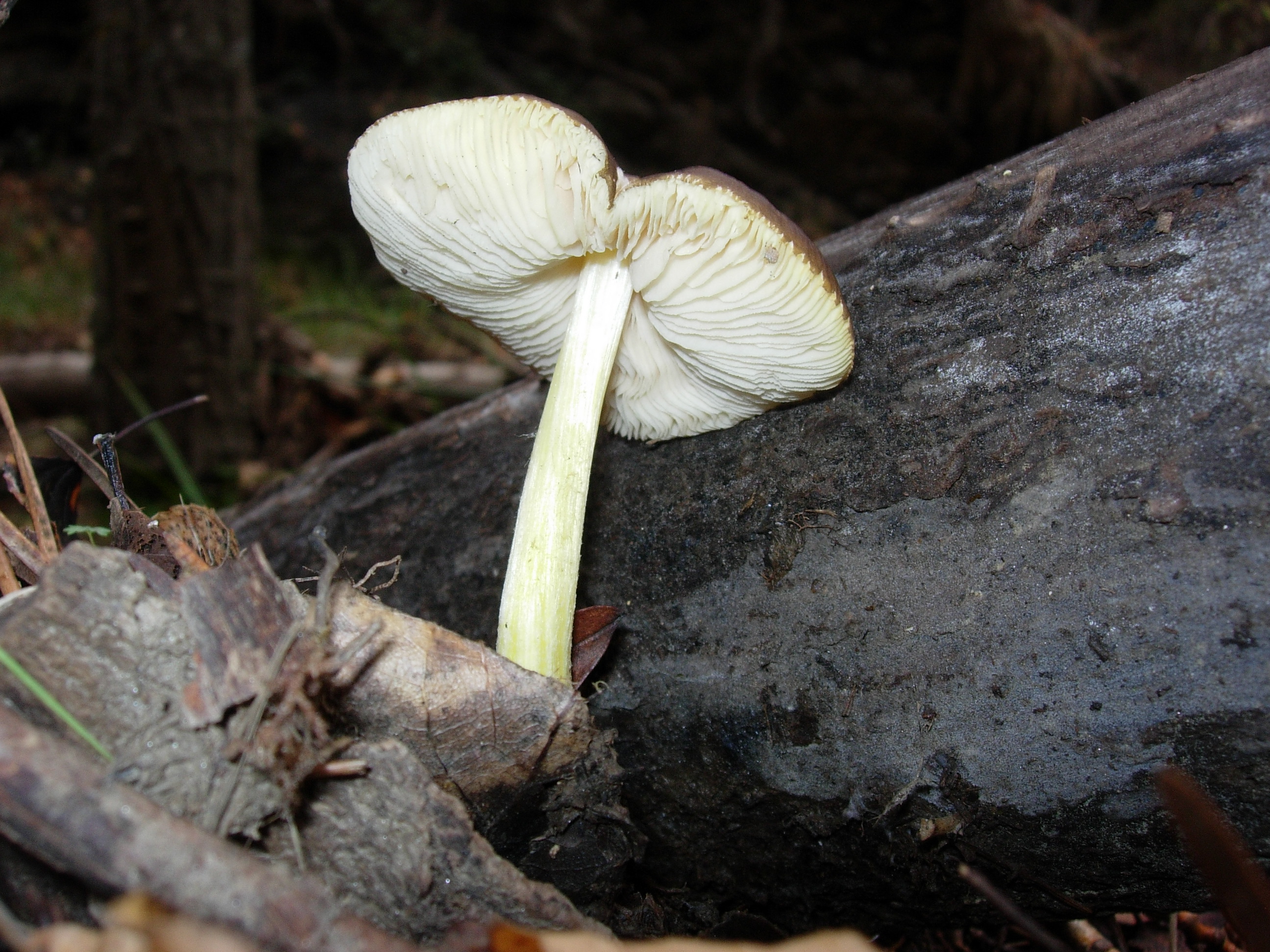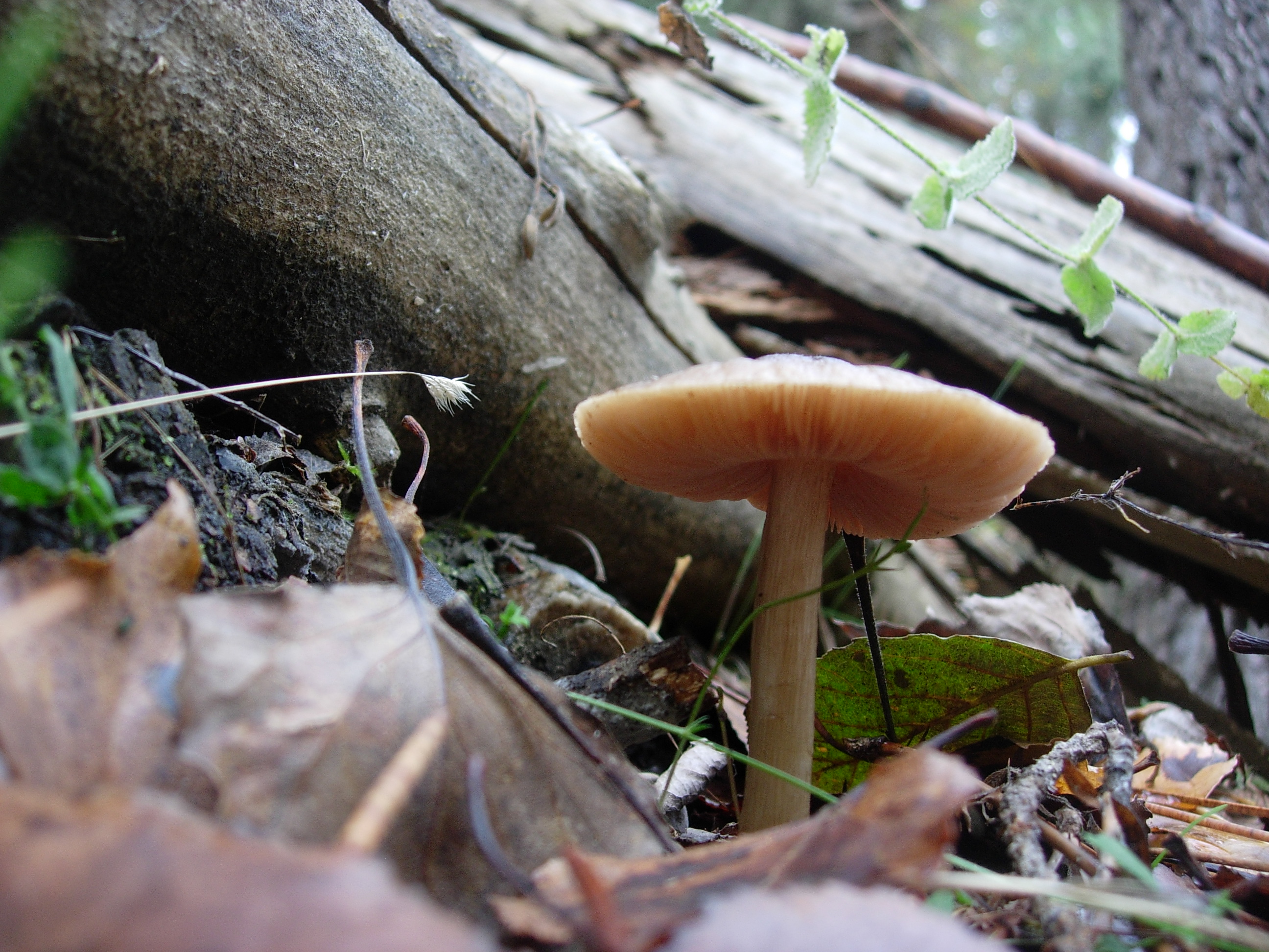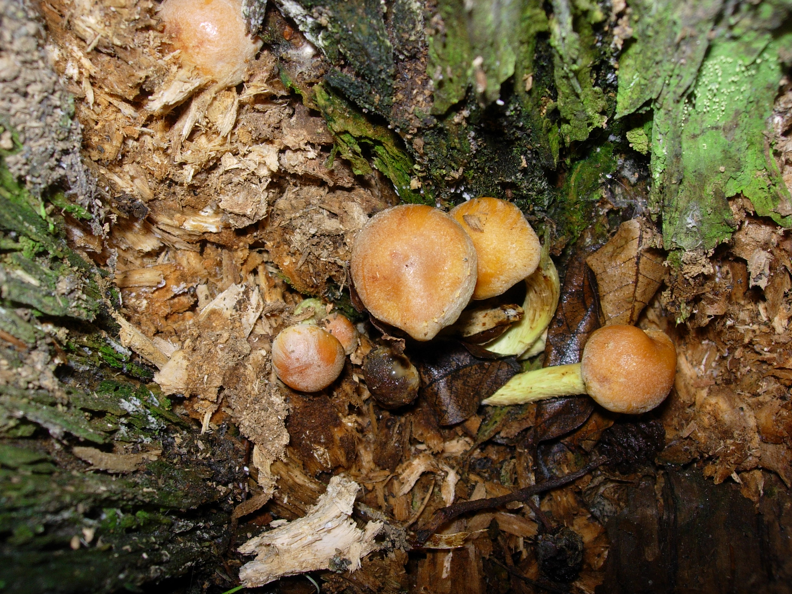 Entre la hojarasca y sobre madera muerta, no se lo que es.