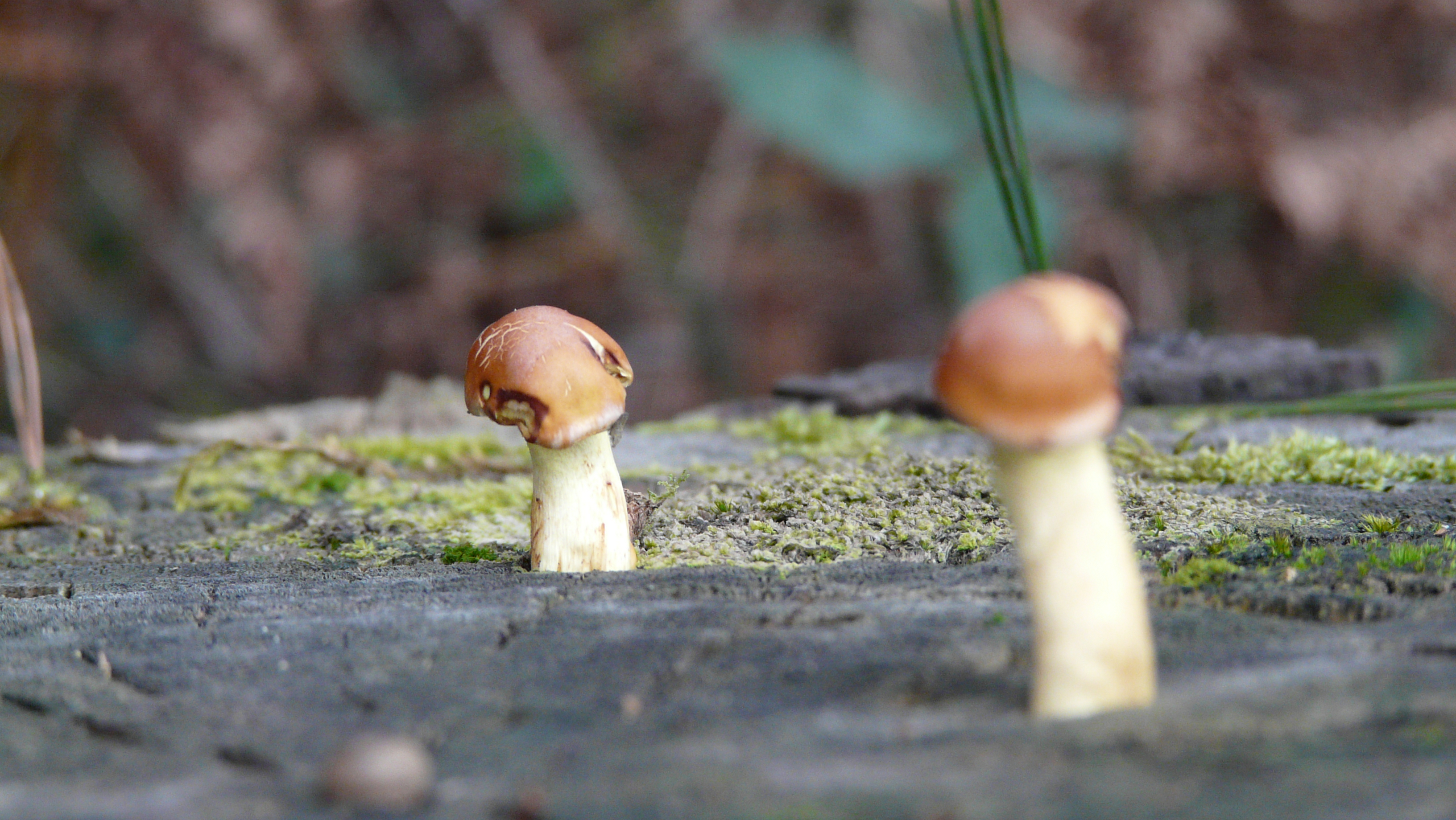¿Qué es esa mini setita azul al pie del níscalo? ¿Y las que están encima del tronco del árbol?