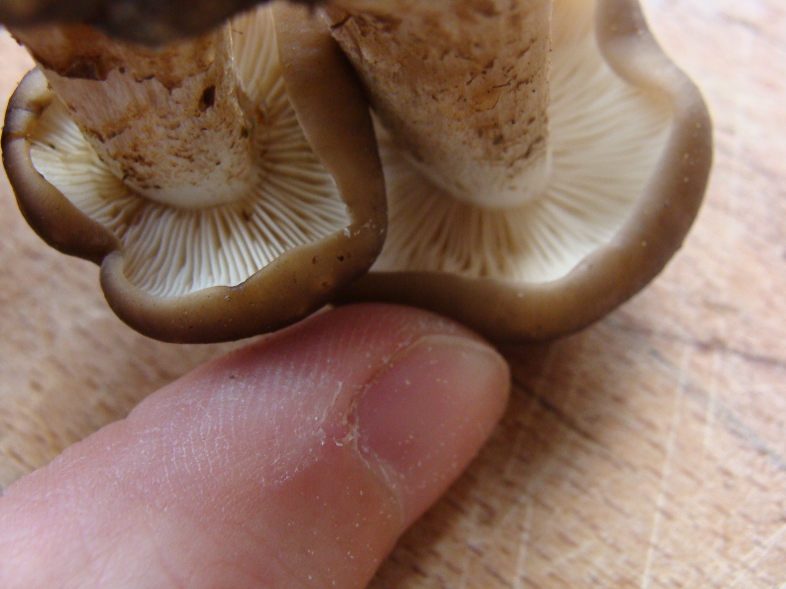 De todas formas según la descripción de esta especie en la fungipedia, dice que el color del sombrero es más claro cuando el especimen es más viejo. por lo que se contradice con la foto y con lo que he visto (justo al reves)