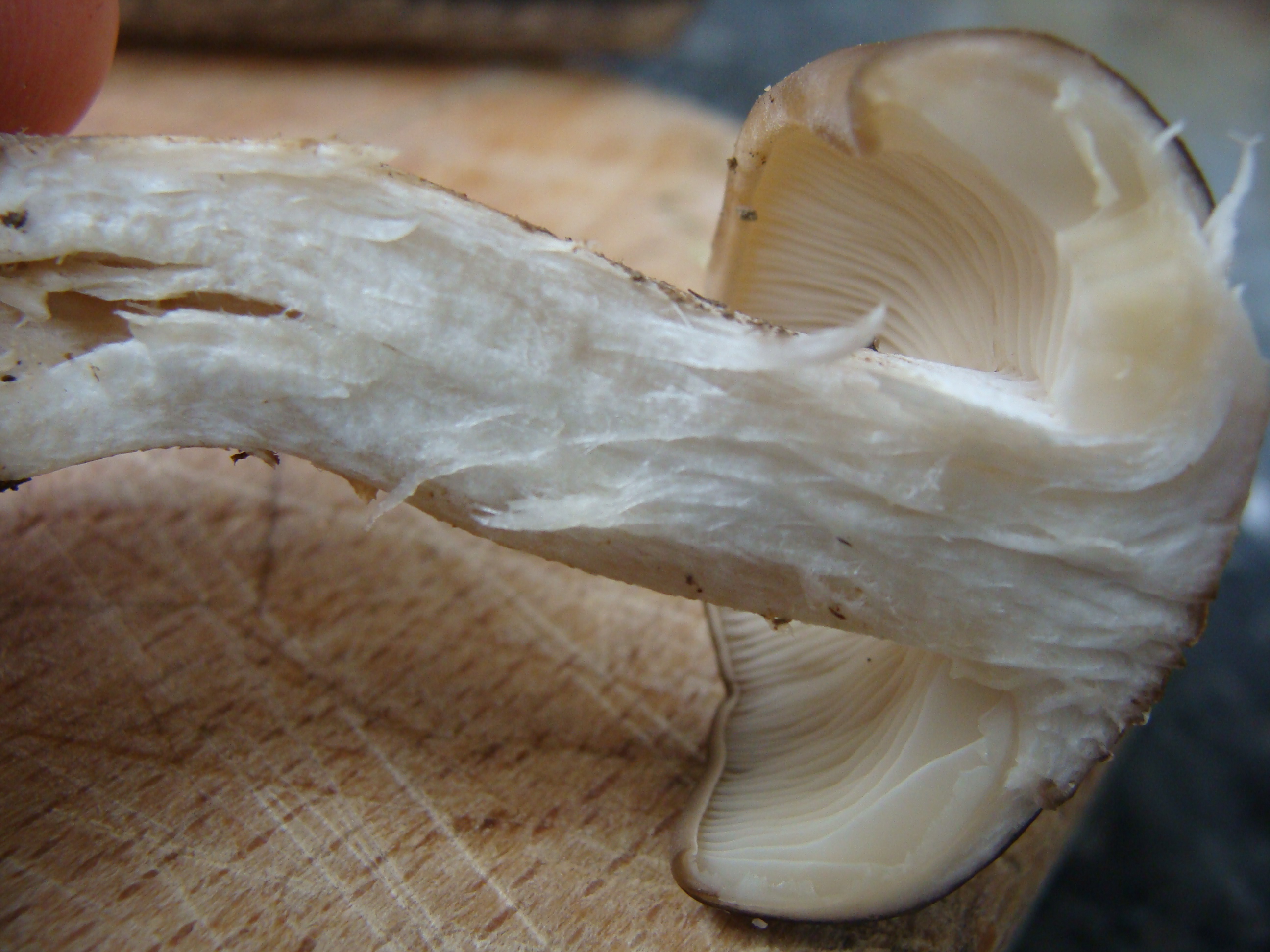 -Lyophyllum decastes. Este hongo tiene una gran resistencia a la torsión, y cuando cede a ésta emite un chasquido característico.