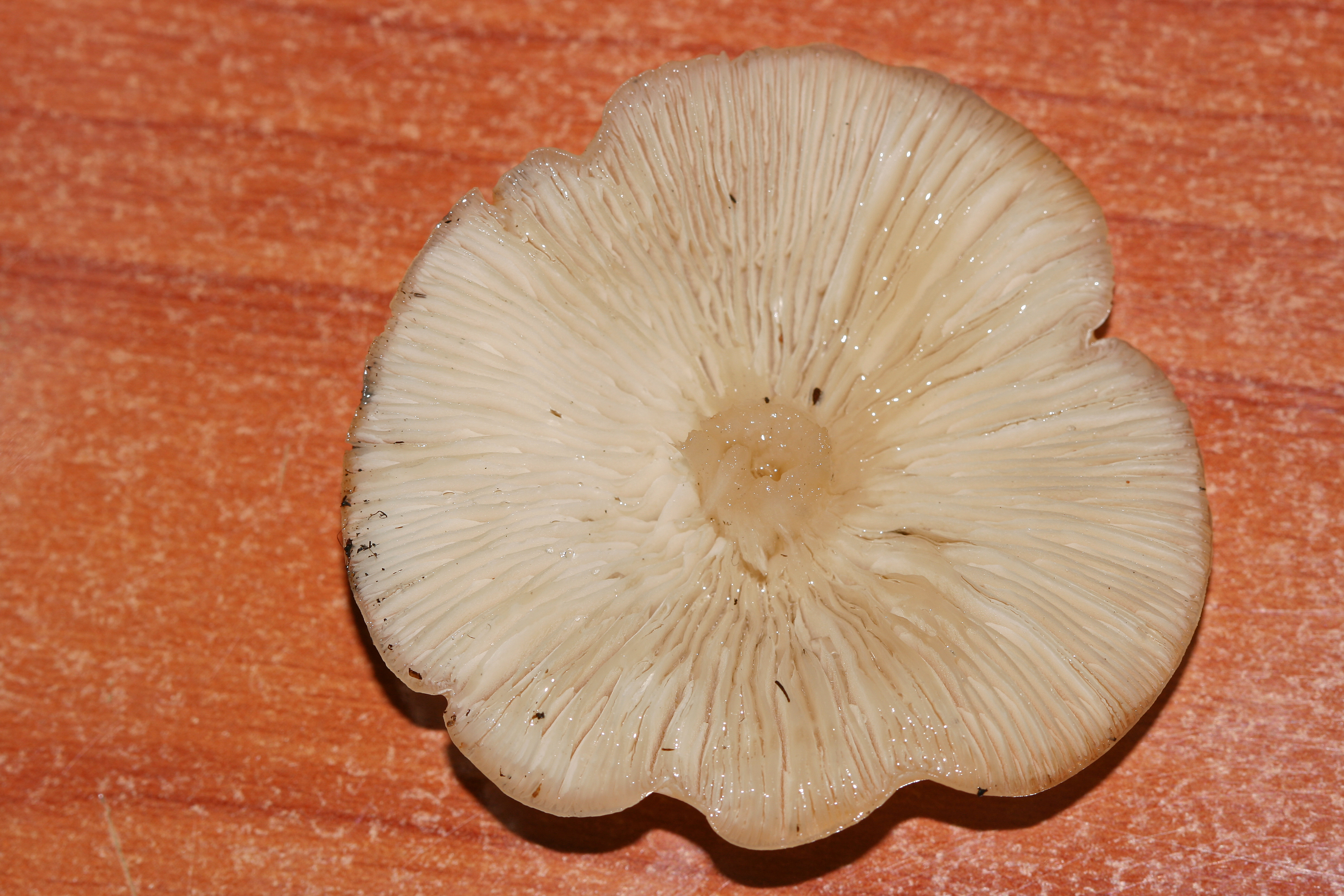 Por la pinta tambien podria ser un Clitocybe, setas que generalmente tienen las laminas decurrentes...y entrando en esta famili... el olor podria ser una pista.... aunque hay unas cuantas que podrian ser candidatas.