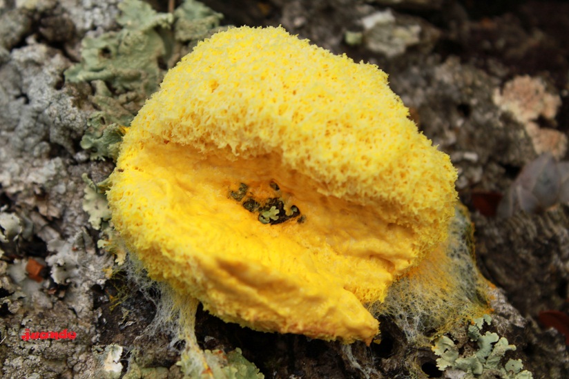Referente a la foto, al decirlo me he dado cuenta, que el Mucilago crustacea, suele ser de color blanco, pero podría tratarse de Mucilago crustacea-var.crustacea, que es amarillo y la textura también podría cuadrar.