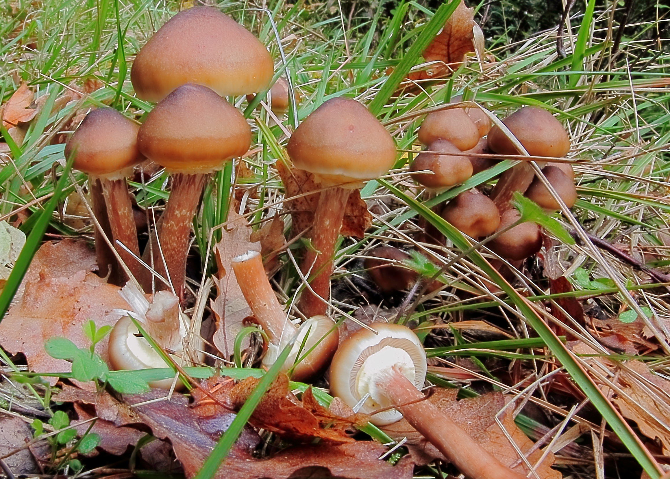 Si que tengo una cosa clara, que no son Cystodermas, a partir de ahí barajemos otras opciones plausibles, por aquí hace mucho que no llueve(desde la expo), la Armillaria mellea de joven es escamosa y esta la tiene lisa y glabra, otra opción que se me ocurre para estudiar, Hypholoma capnoides