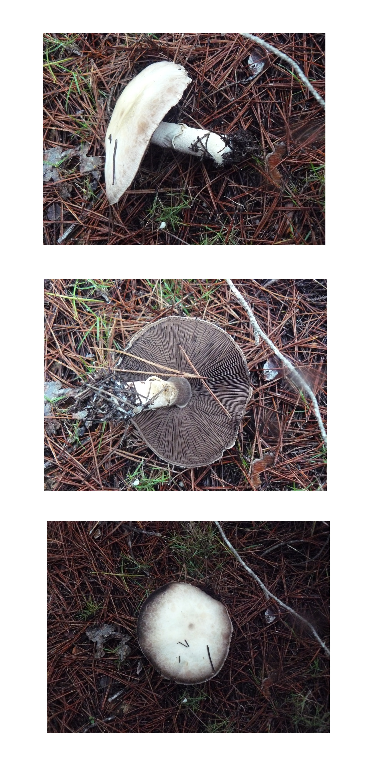 La primera un Clitocybe, creo que gibba, la segunda un Agaricus y la trecera un Hebeloma, sin más datos es hasta donde se puede llegar.