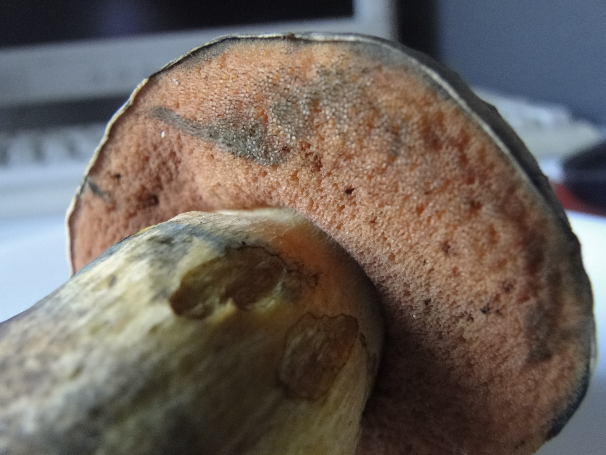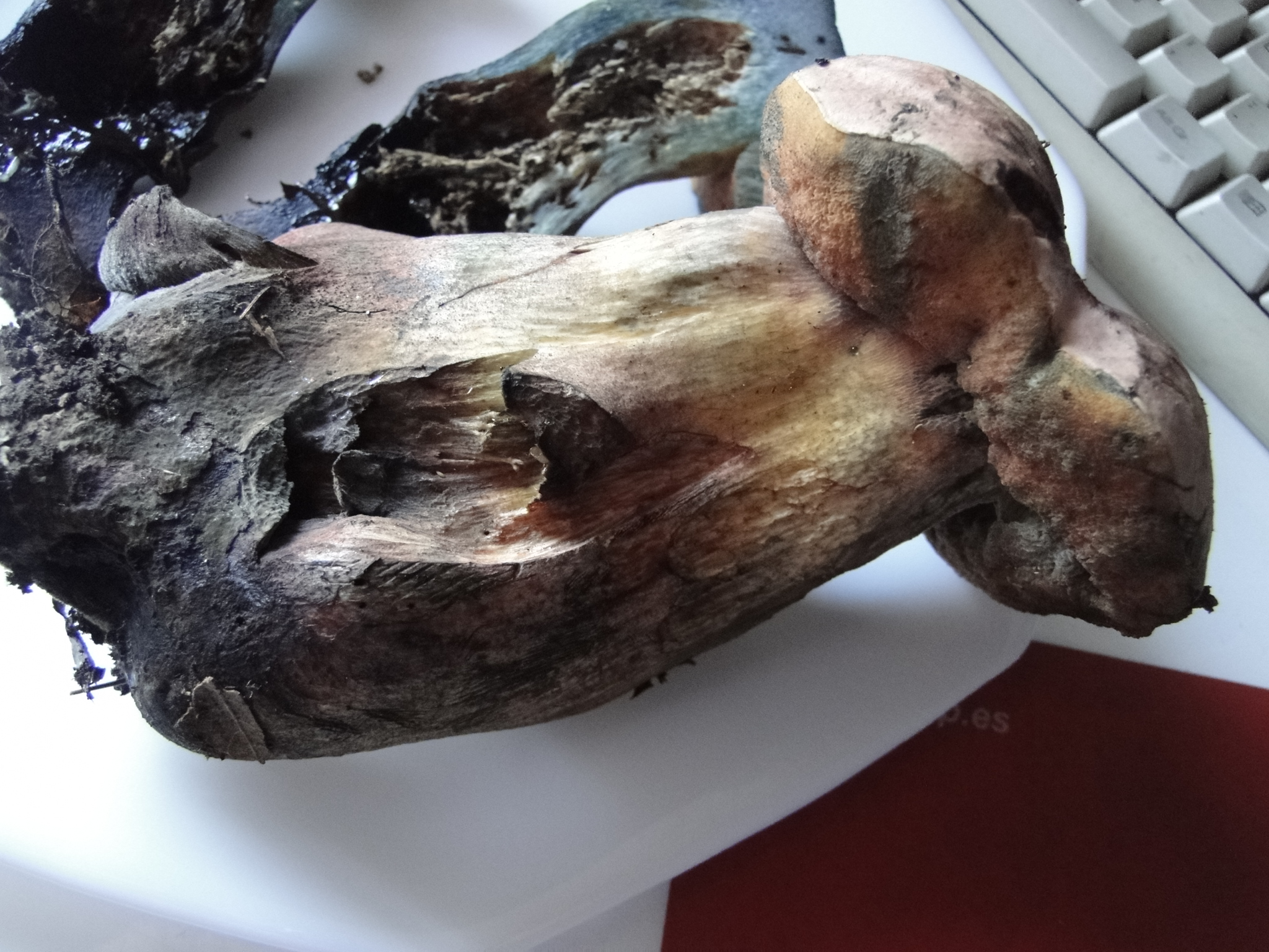 Hola Ana; es verdad que la seta es vieja y por lo tanto difícil. Yo me aventuraría hasta satanoide, sombrero blanquecino y la forma de azulear lo delatan. Sin embargo, para un Rhodoxanthus, pienso que a pesar de ser viejo los tubos porales deberían ser más rojos, pero te lo digo con duda, pues no se si realmente los viejos pierden el color.