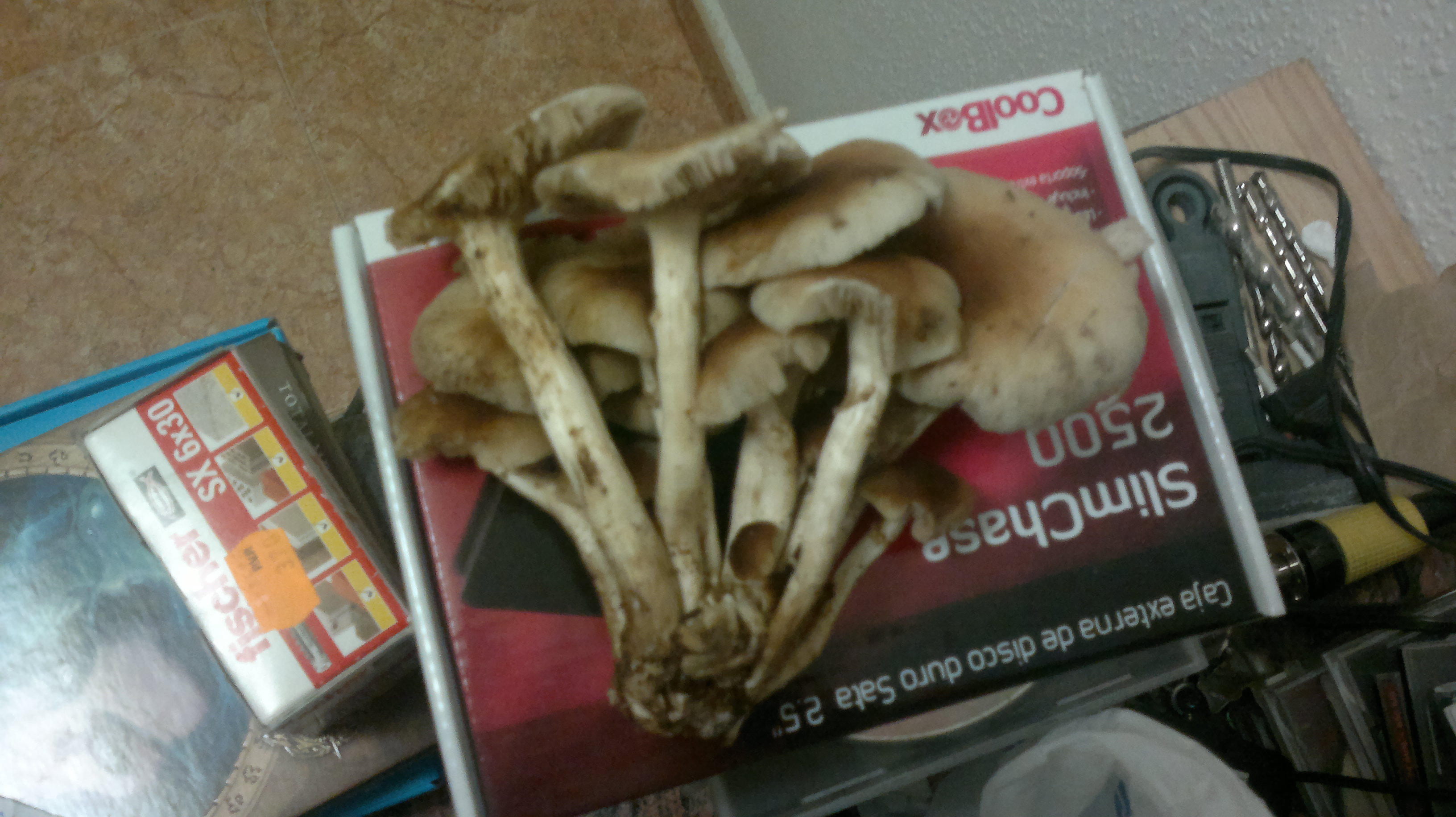 hola aqui les subo unas fotos de unas setas que cogi esta tarde del domingo en un tronco viejo