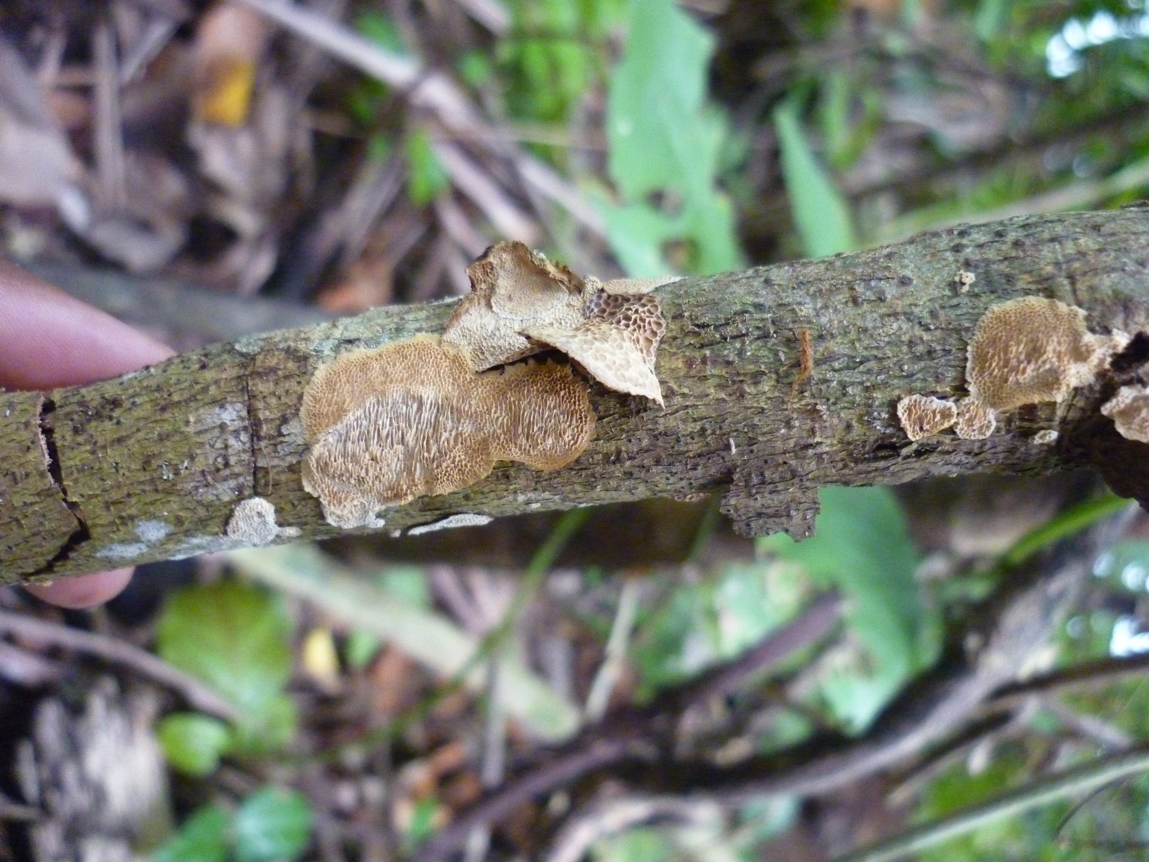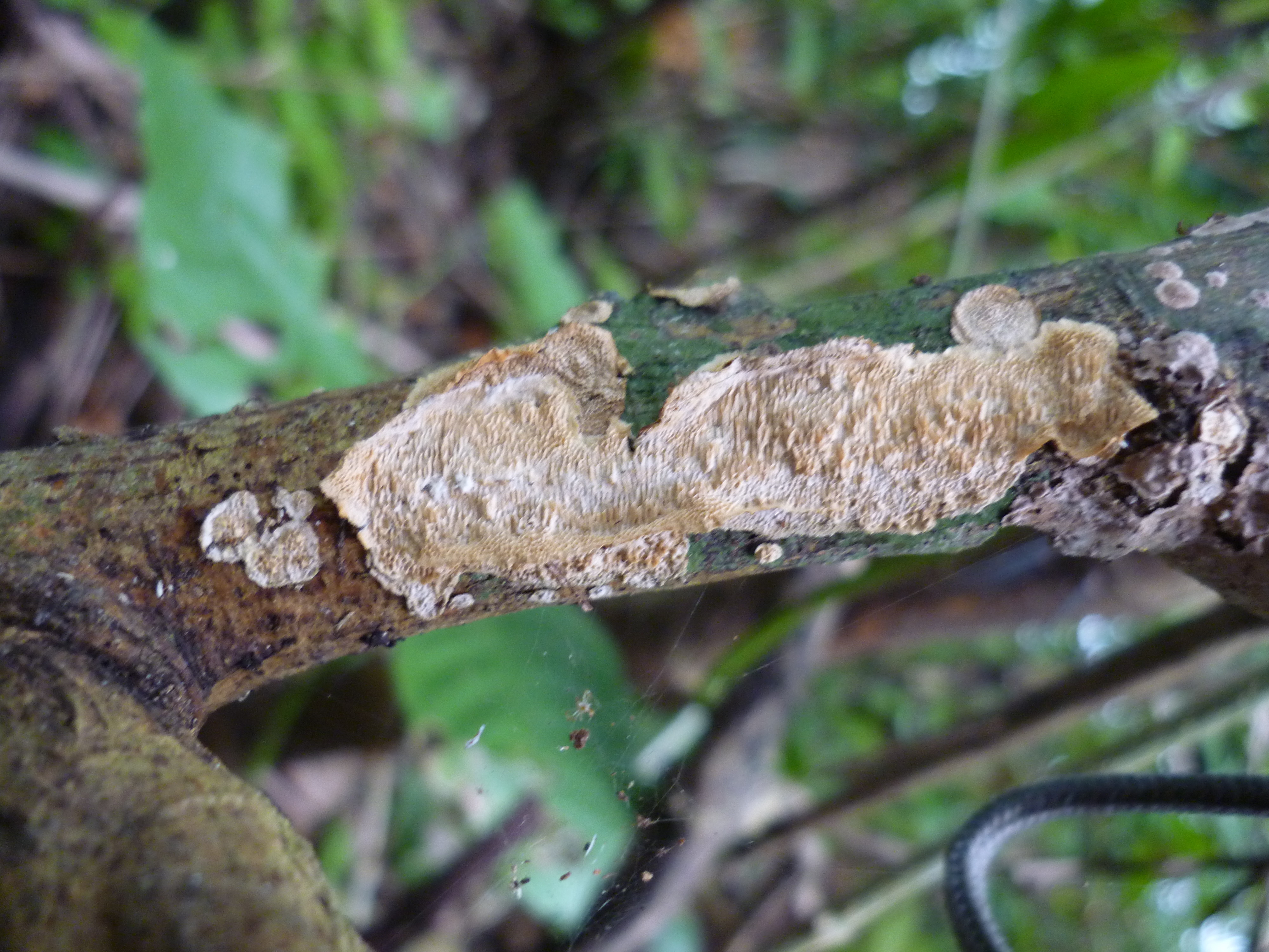 No se Joseba, la foto no la veo muy clara, pero yo me iria más hacia una Cerocorticium o tal vez una Phlebia, en fin es mi opinión.