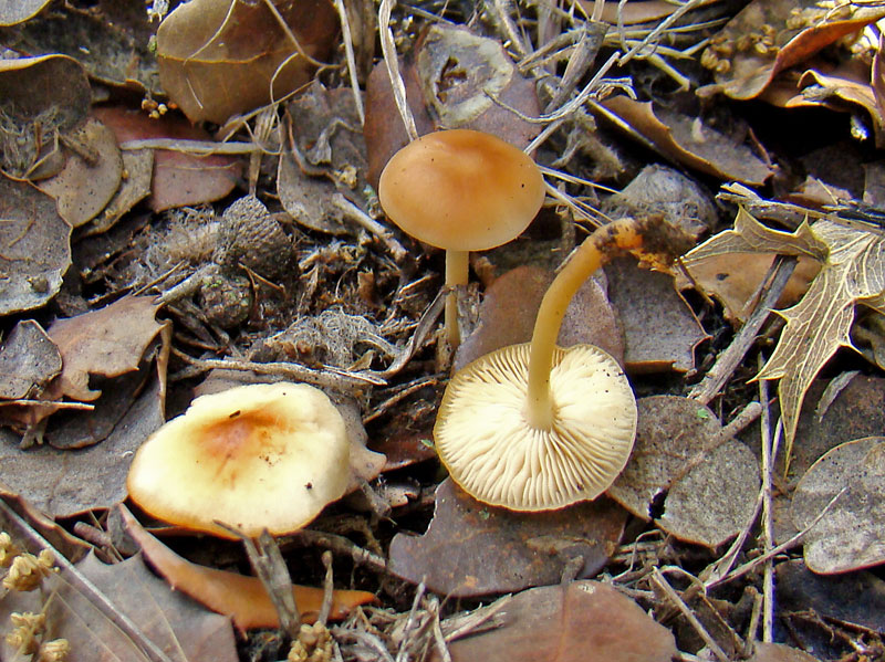 Esta me parece Clitocybe... estaba bajo carrascas, de unos 2-4 cm.