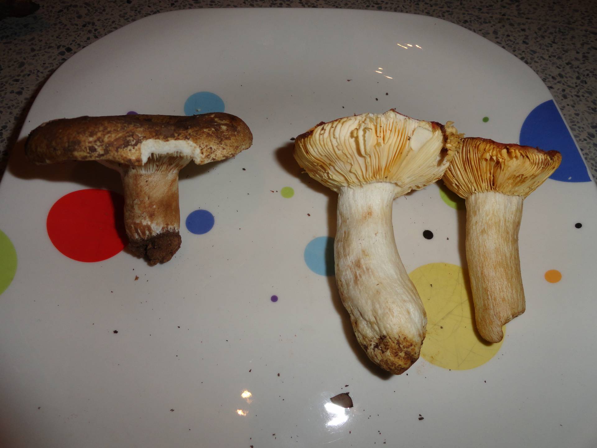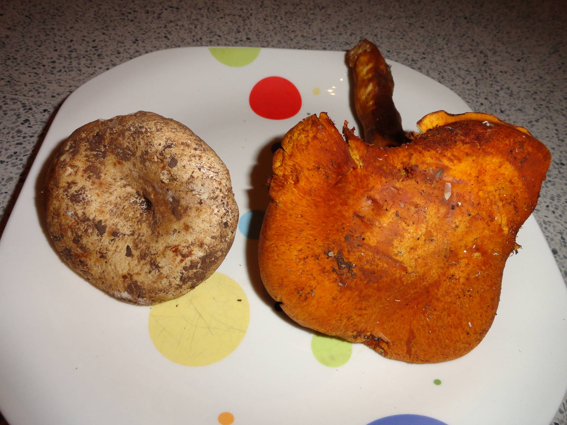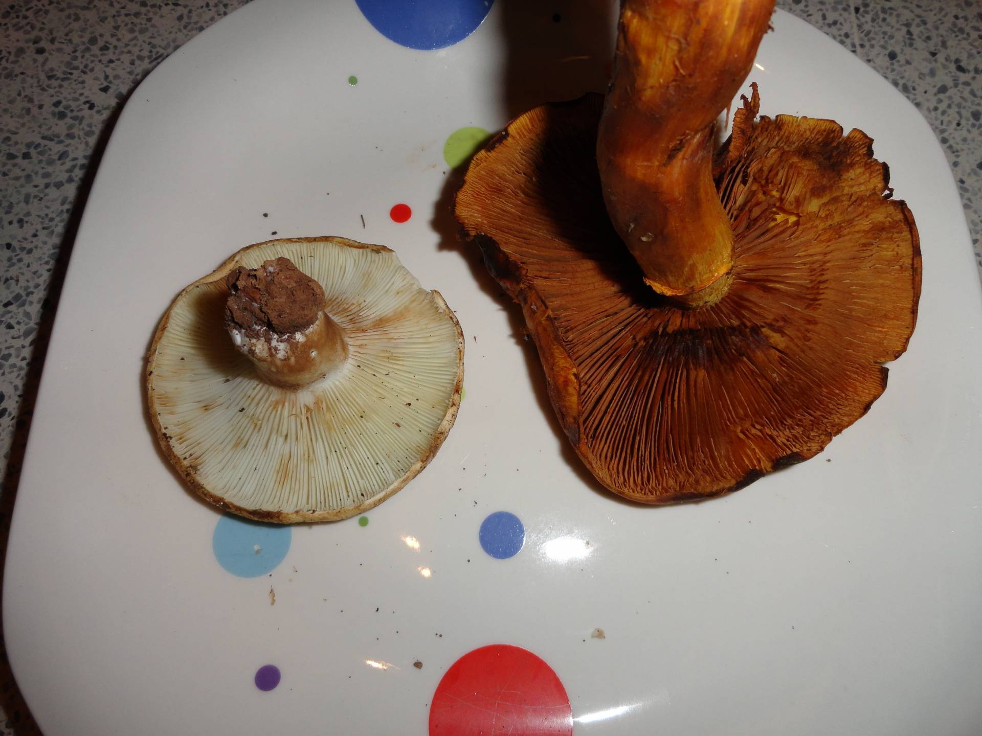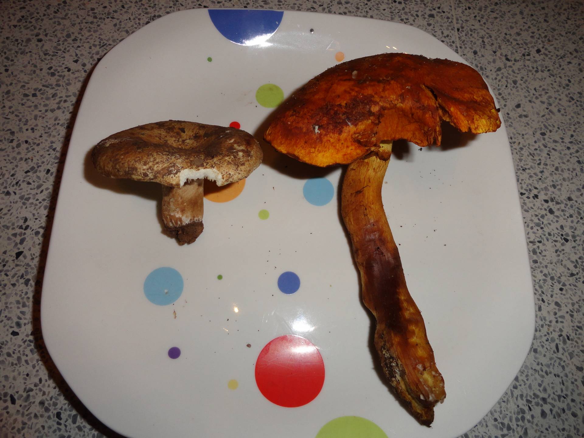 Hola Pablo, el pequeño parece una Russula y el grande un cortinarius, pero sin más datos poco se puede decir.