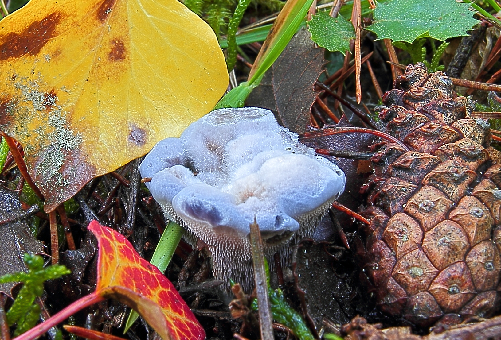 Hola Makoki, mira a ver si te cuadra Hydnellum caeruleum.